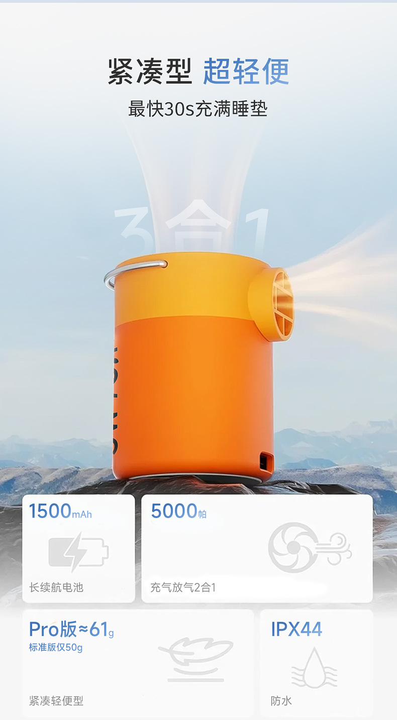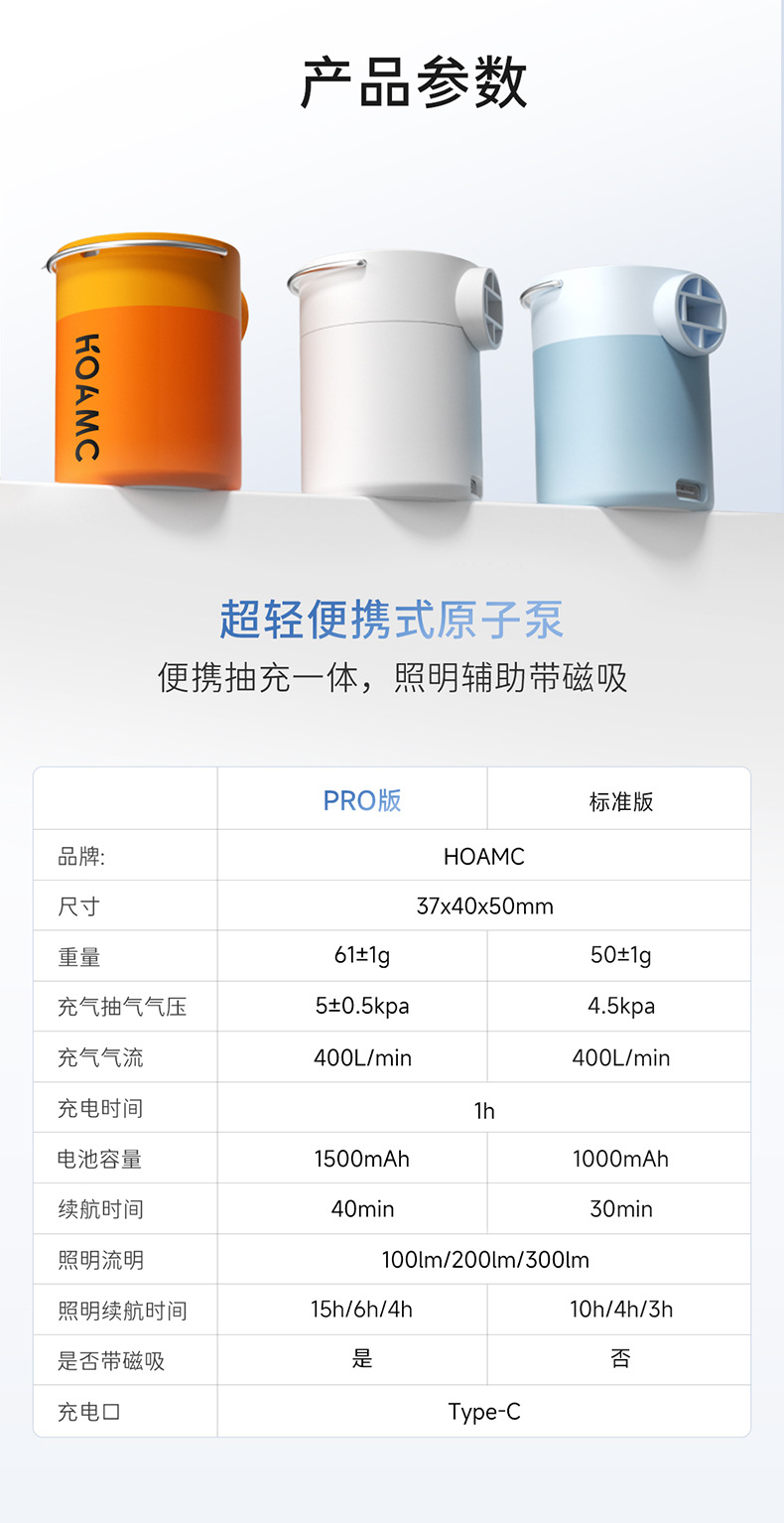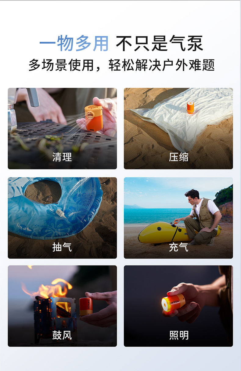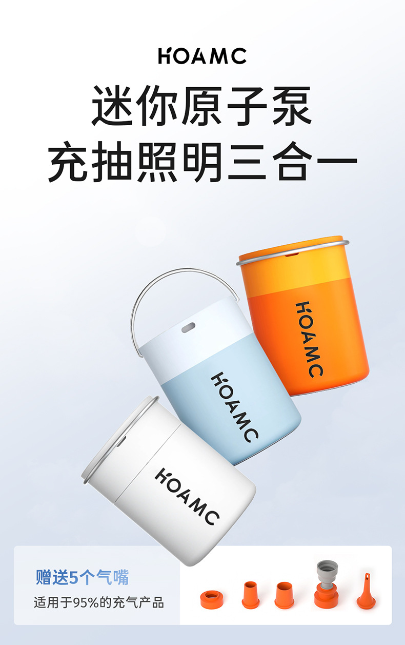 HOAMC 휴대용 다기능 전기 공기 펌프 야외 캠핑 에어 매트리스 풍선 충전 조명 3-in-one스토어 가기