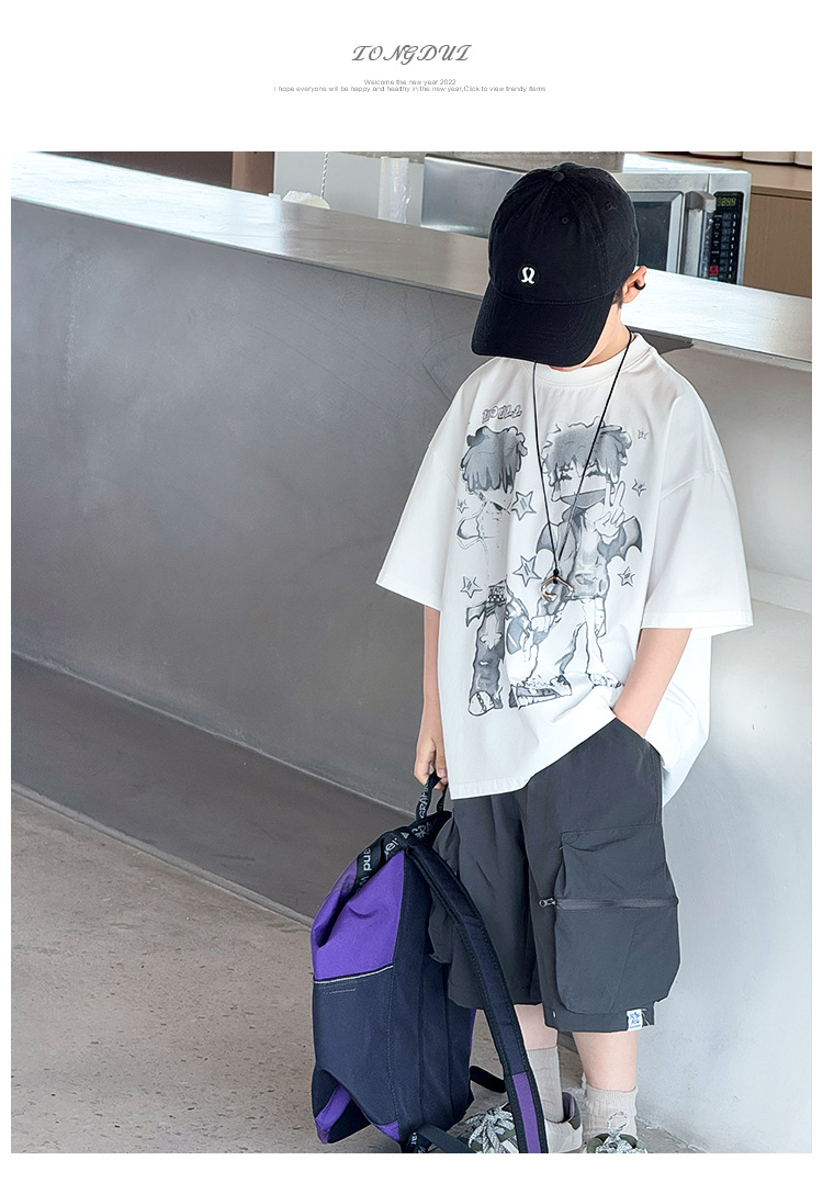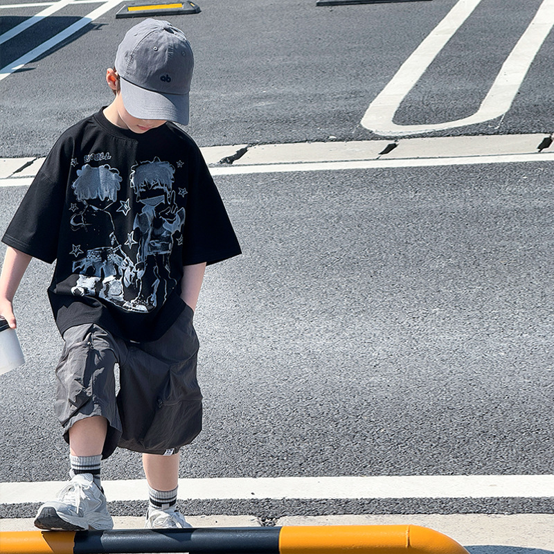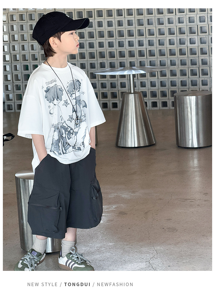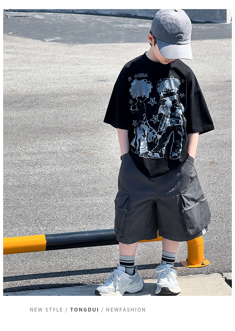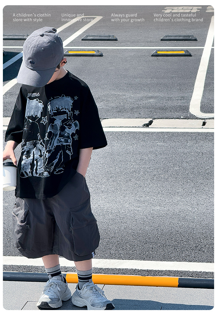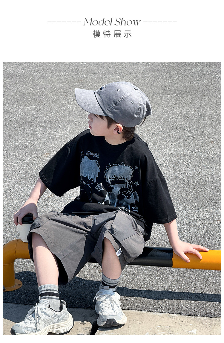 아동 의류 소년 여름 정장 2025 새로운 스타일 중대형 어린이 여름 시원하고 멋진 반팔 어린이 캐주얼 여름 스타일 소년 유행스토어 가기