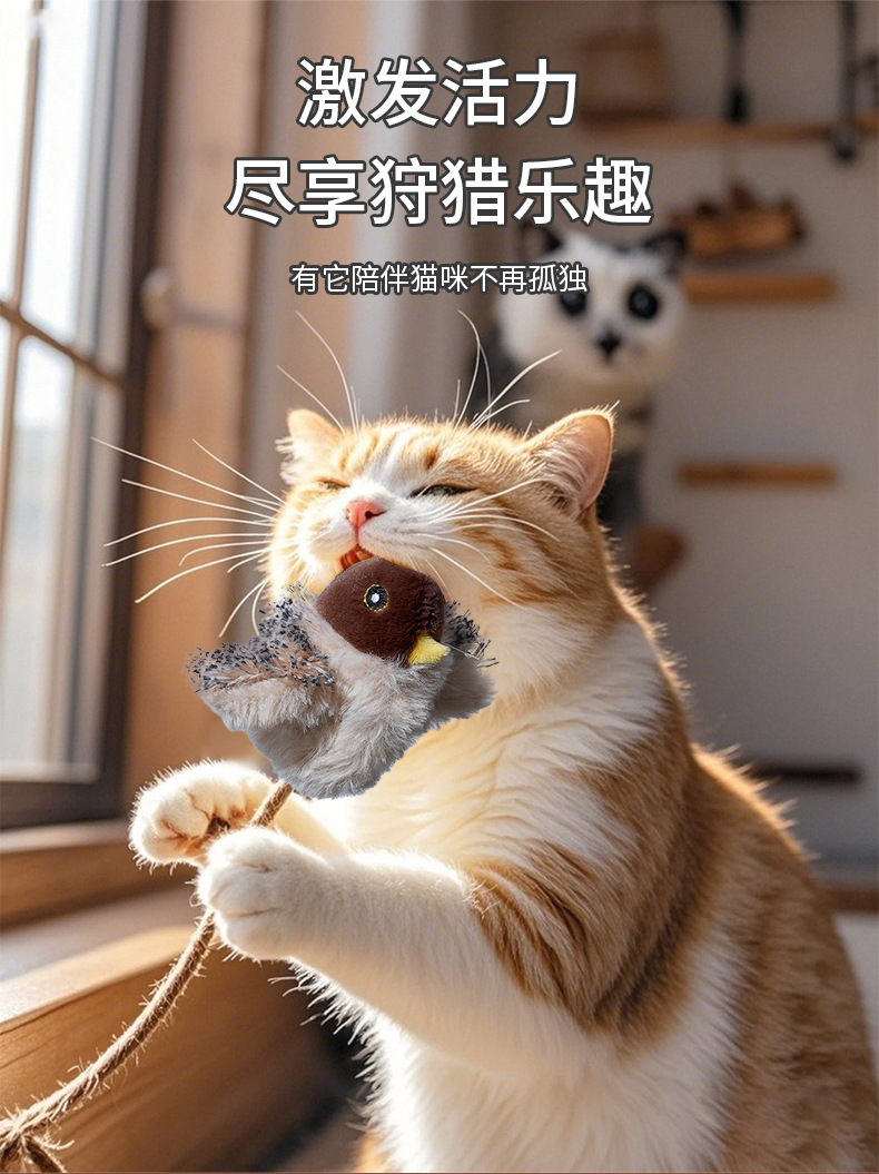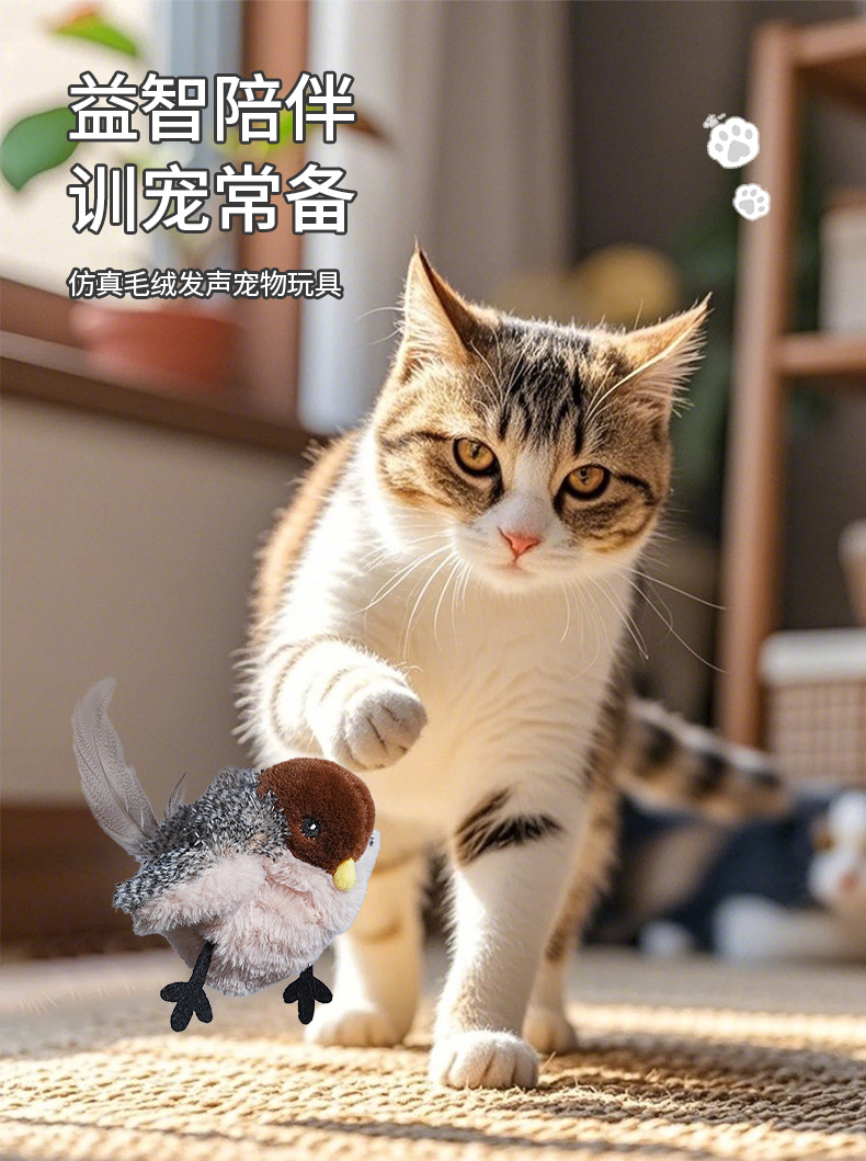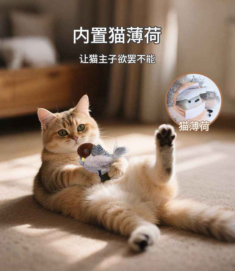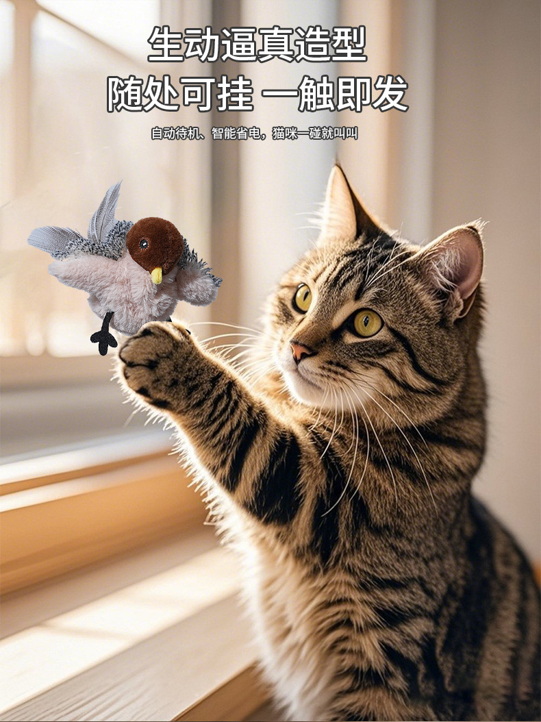 국경을 넘나드는 인터넷 연예인 애완 고양이, 소리나는 참새, 앵무새, 전기 시뮬레이션 날개를 펴는 새와 고양이가 지루함을 해소하는 대화형 장난감