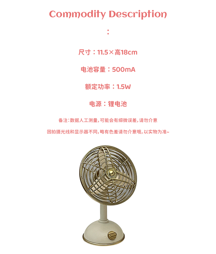 레트로 데스크탑 팬 소형 초저소음 사무실 충전식 휴대용 학생 휴대용 팬 강풍 블랙스토어 가기