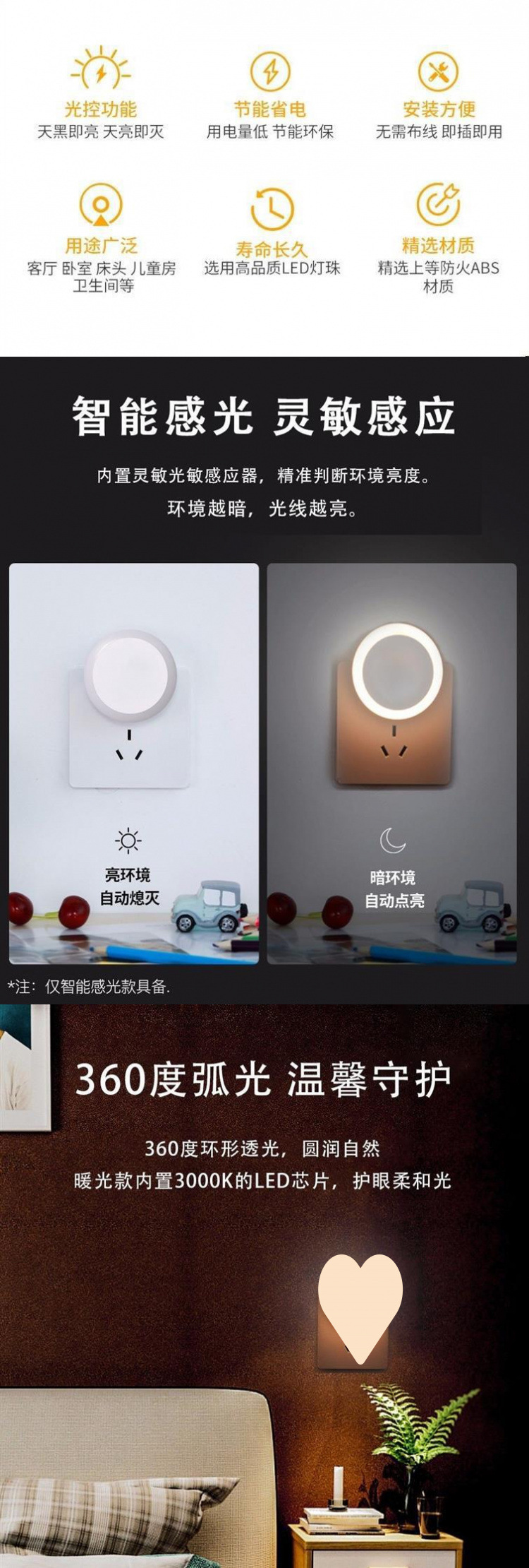 야간 조명은 야간에 자동으로 켜집니다. 조명 제어 조명은 어두워지면 켜집니다. 플러그인 인체 센서 조명 야간 조명 침실 수면