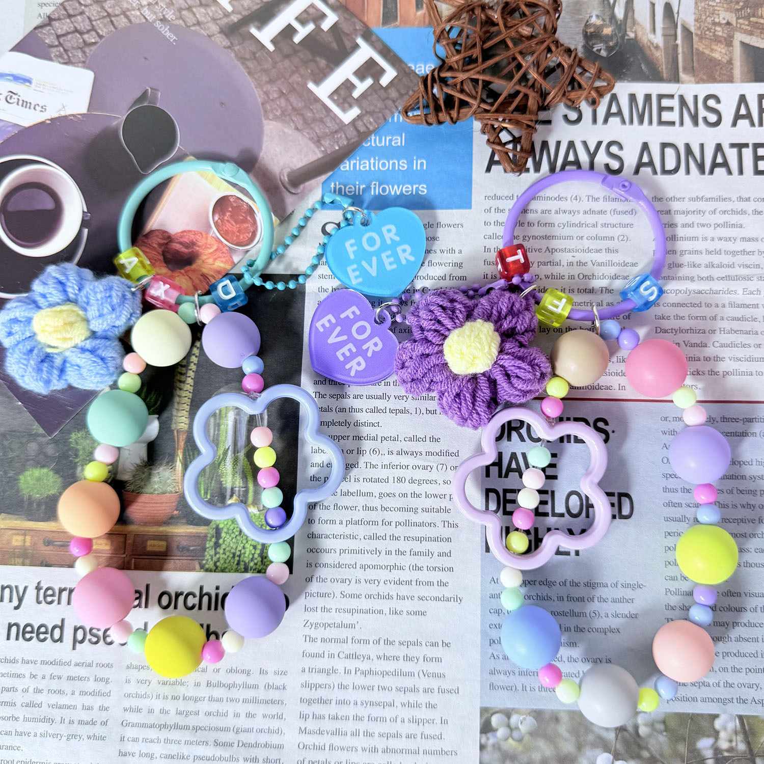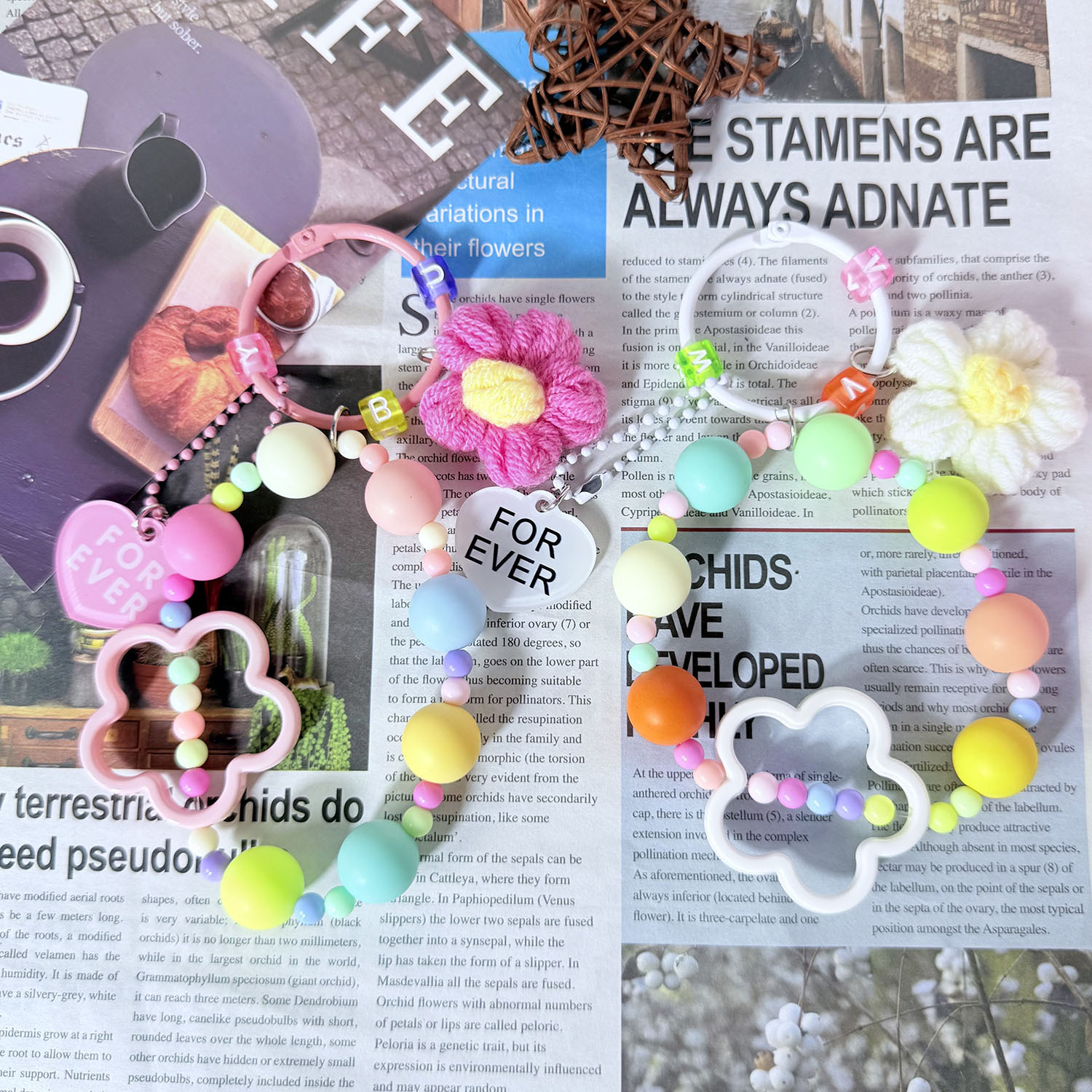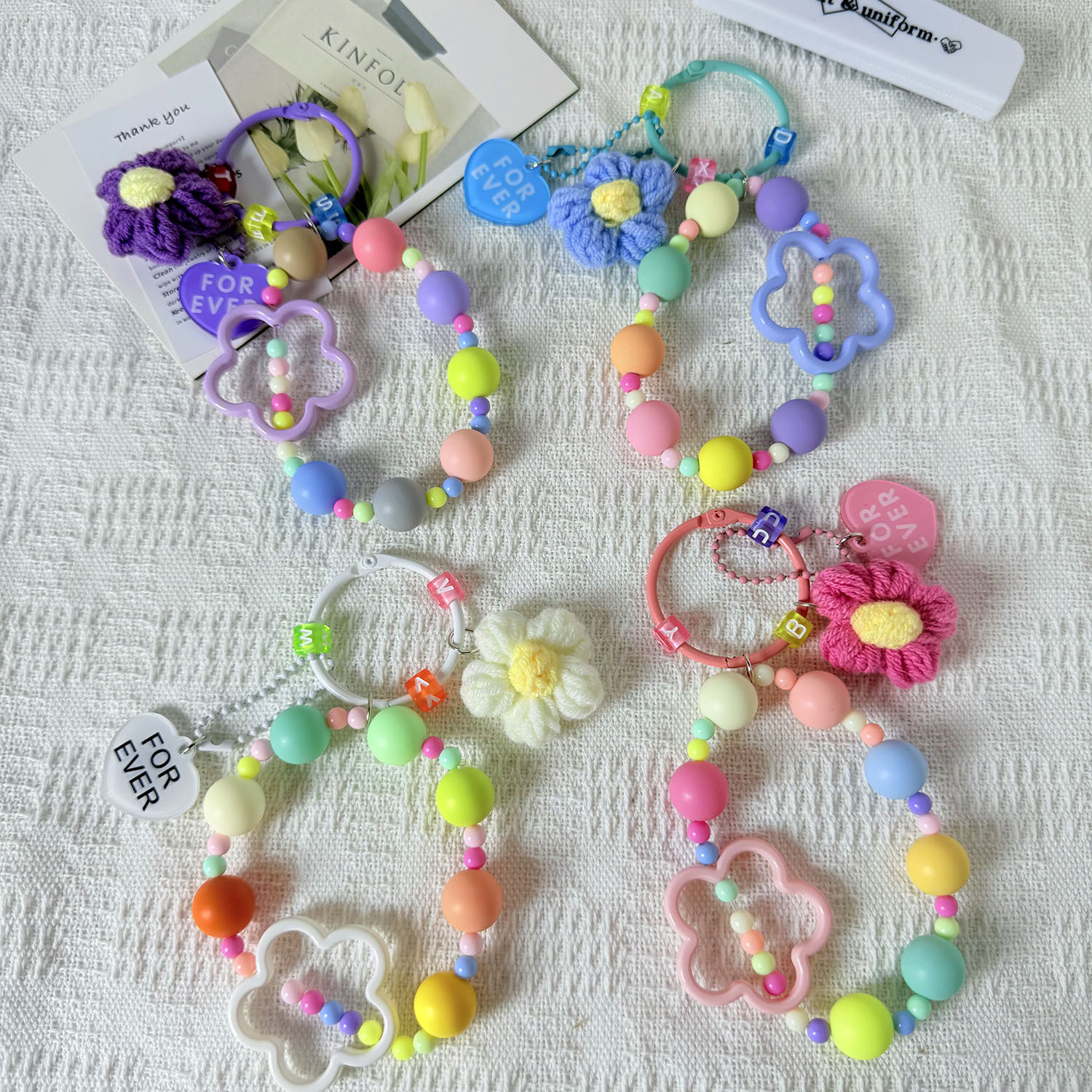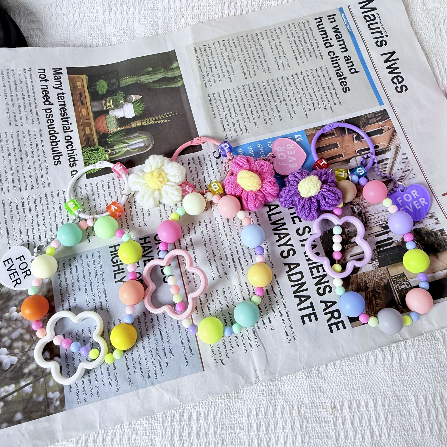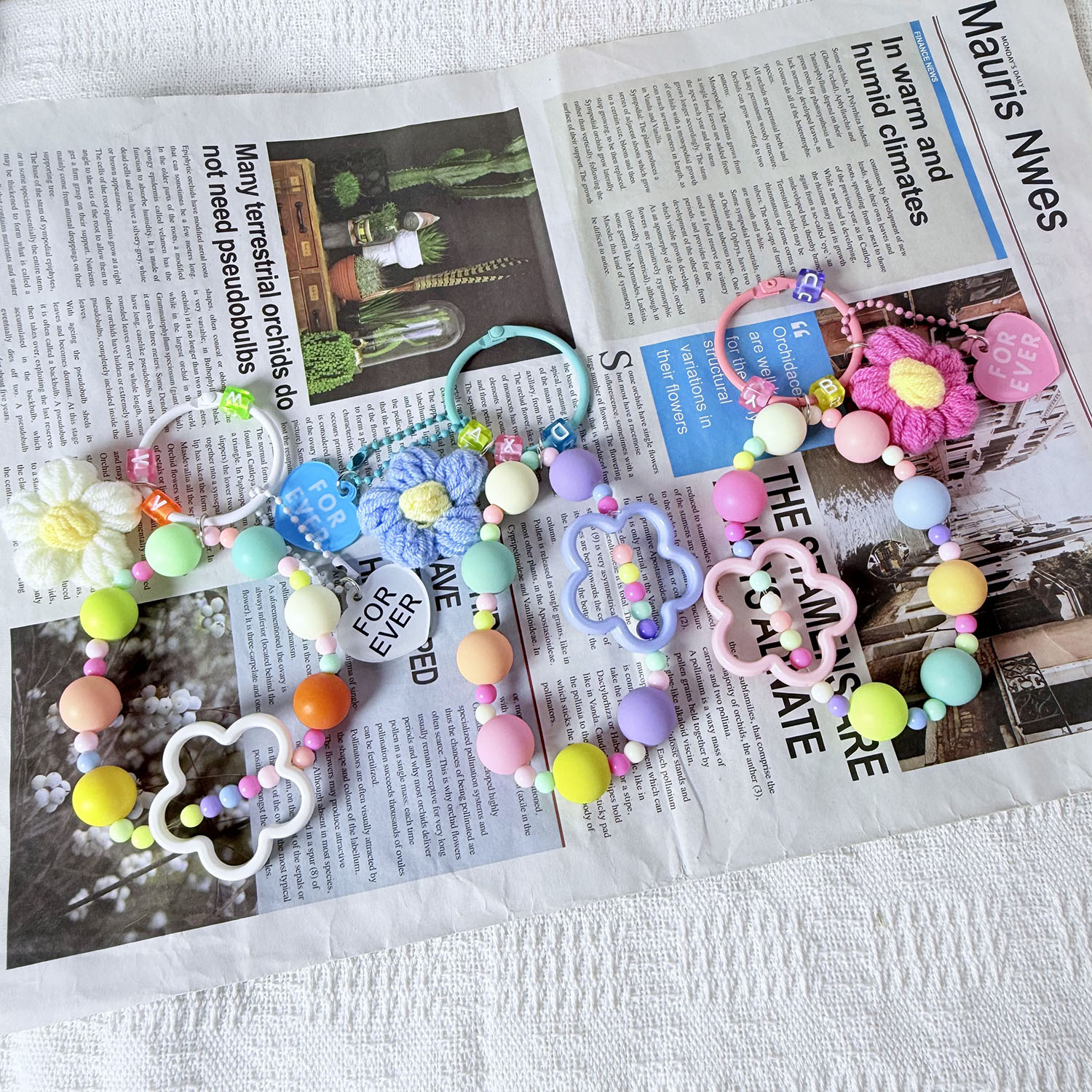 Ins 새로운 양모 다섯 꽃잎 꽃 키 체인 펜던트 구슬 귀여운 컬러 액세서리 가방 장식 어린이 도파민스토어 가기
