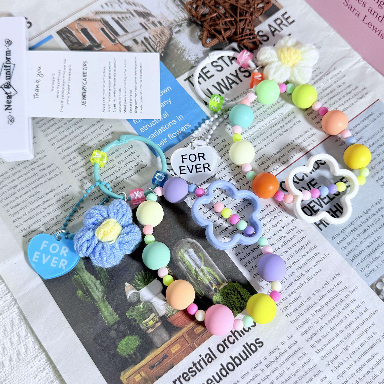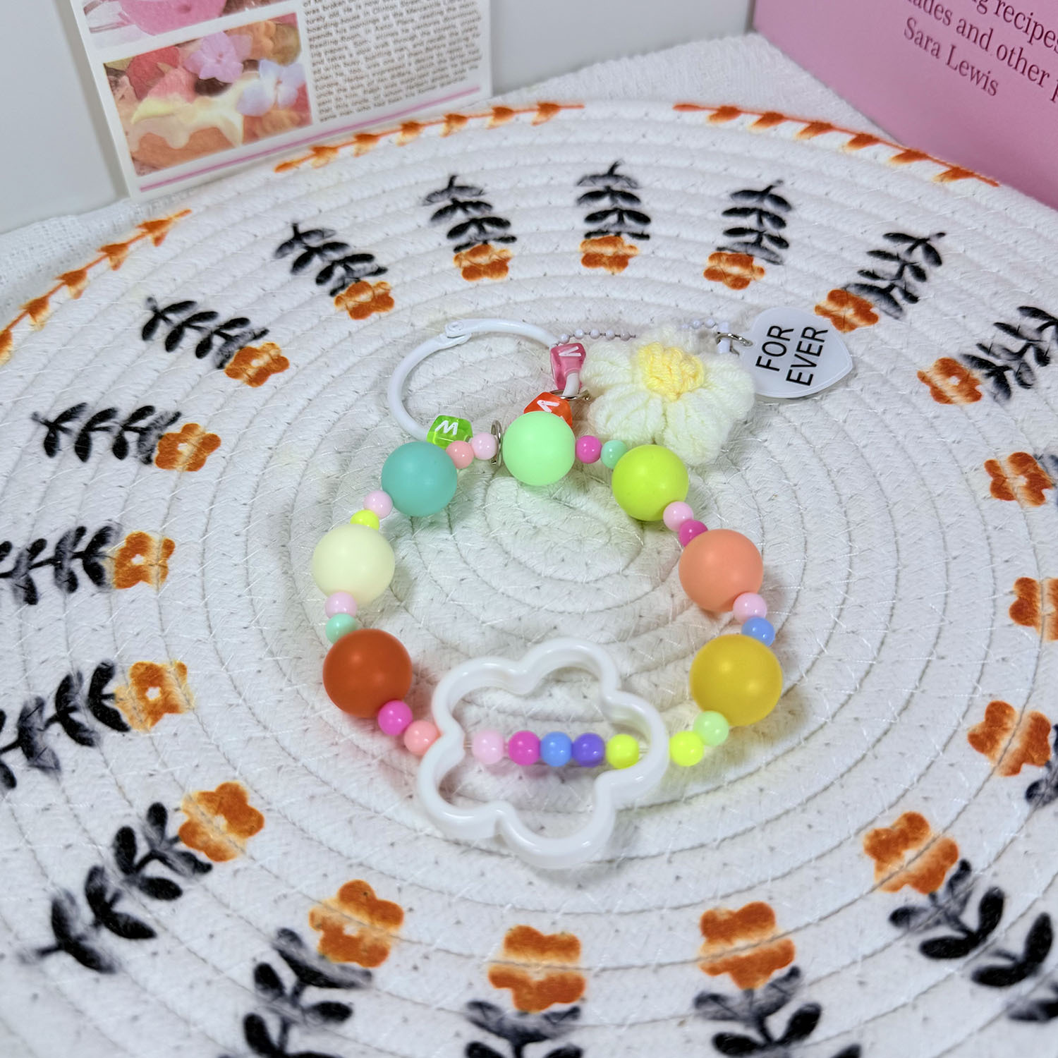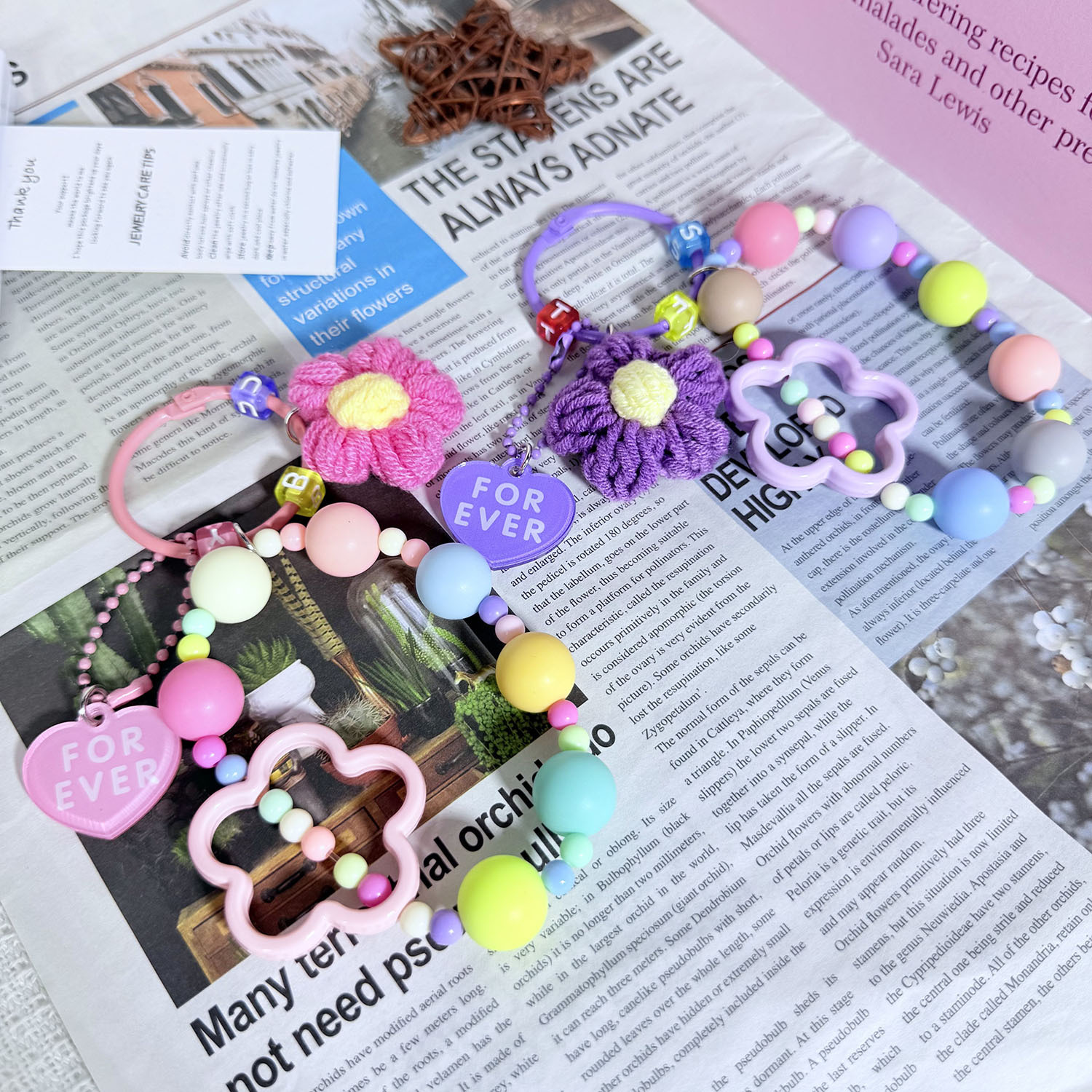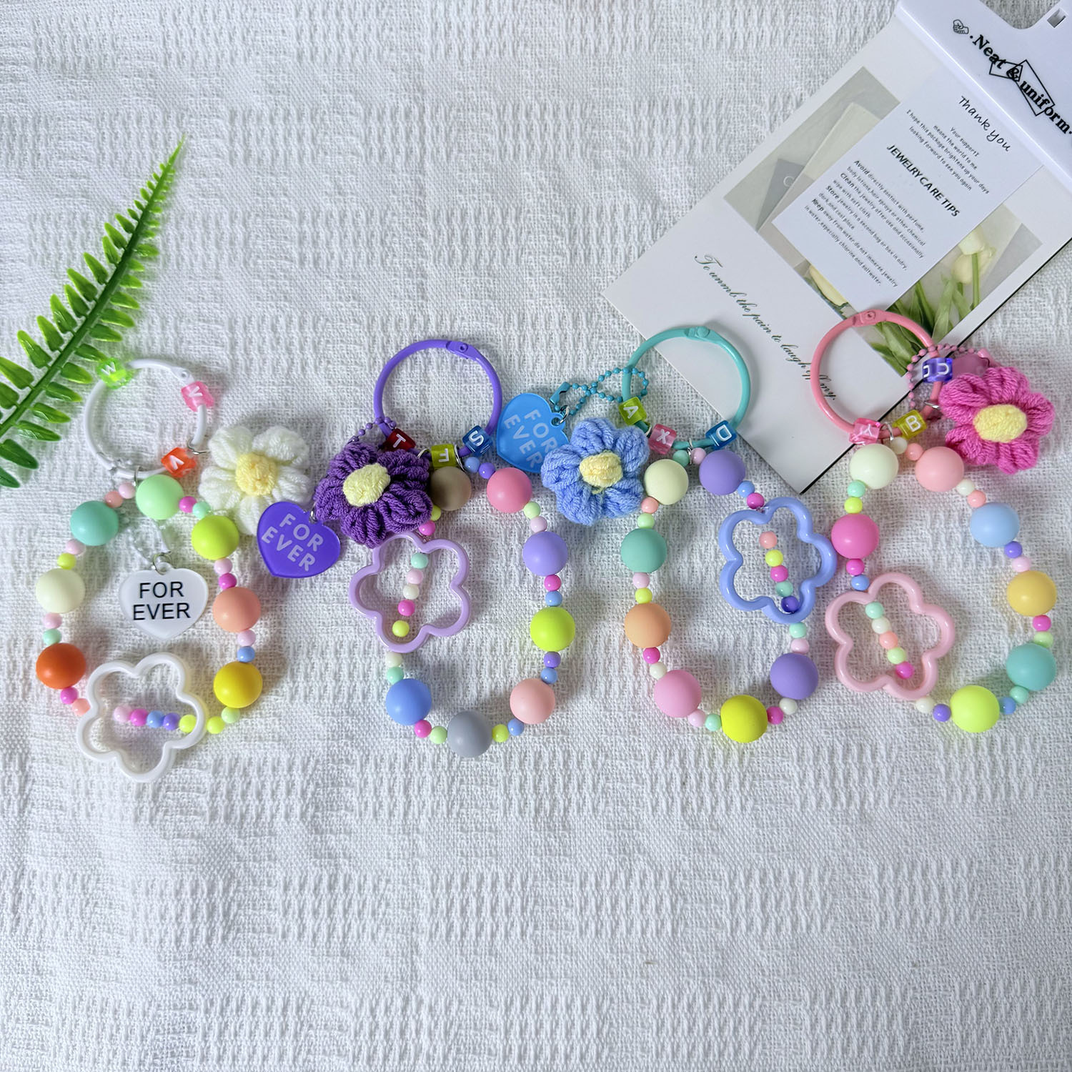 Ins 새로운 양모 다섯 꽃잎 꽃 키 체인 펜던트 구슬 귀여운 컬러 액세서리 가방 장식 어린이 도파민스토어 가기