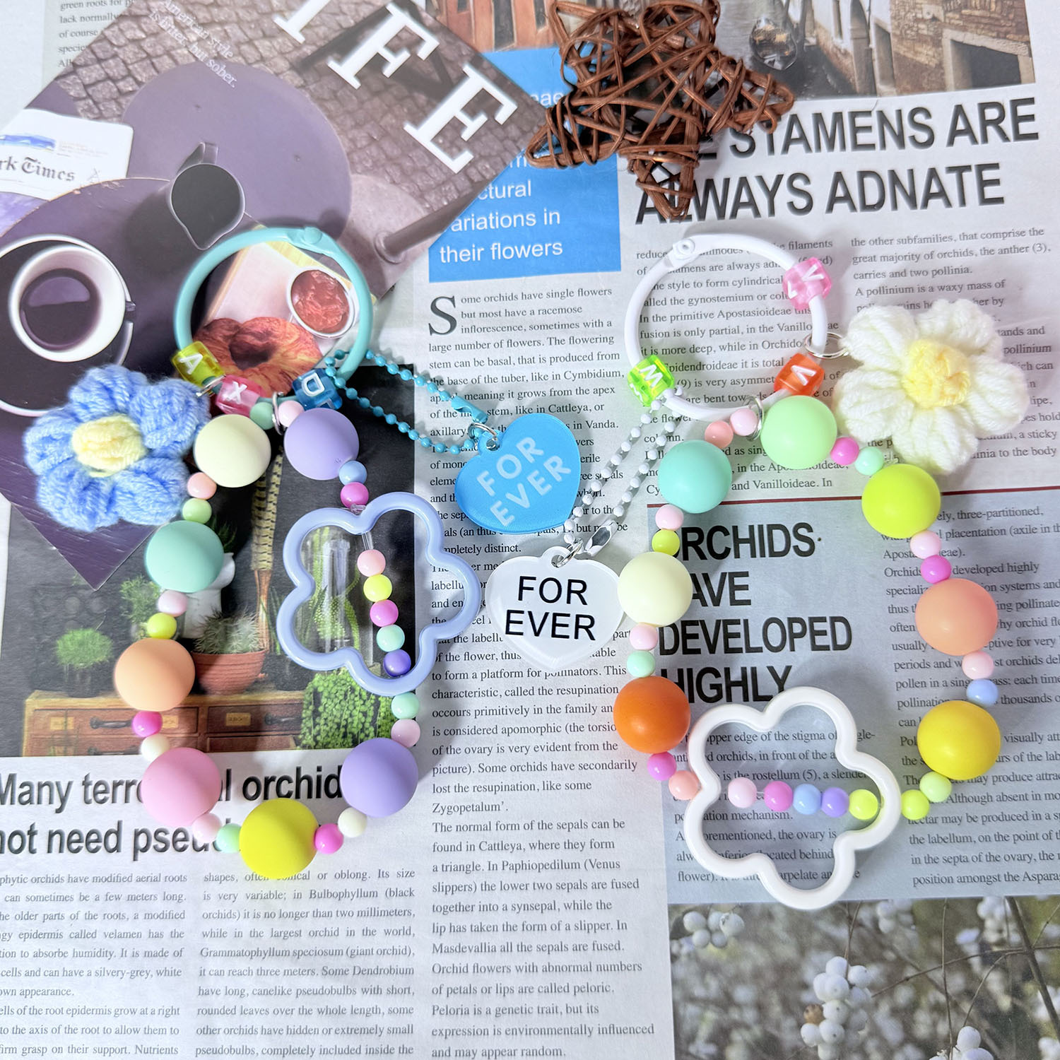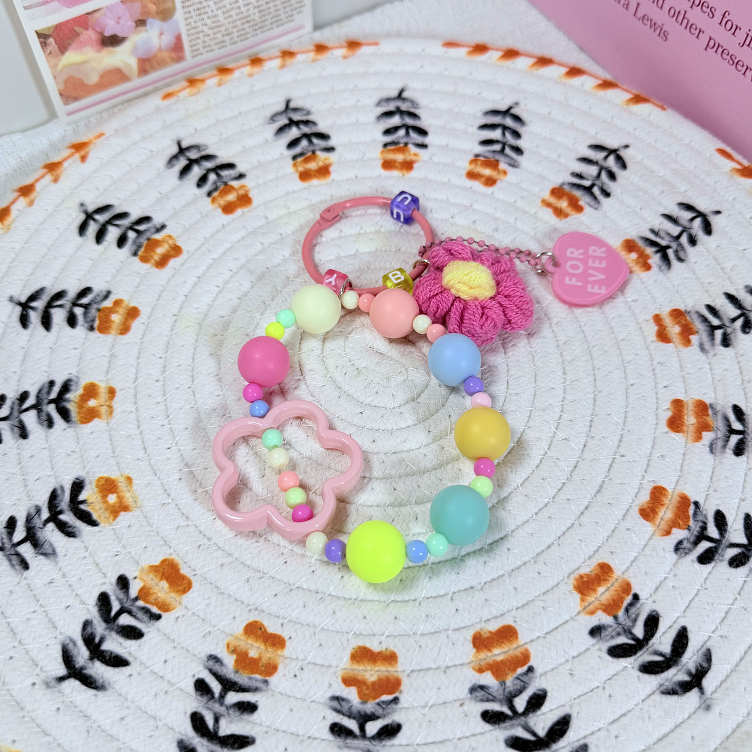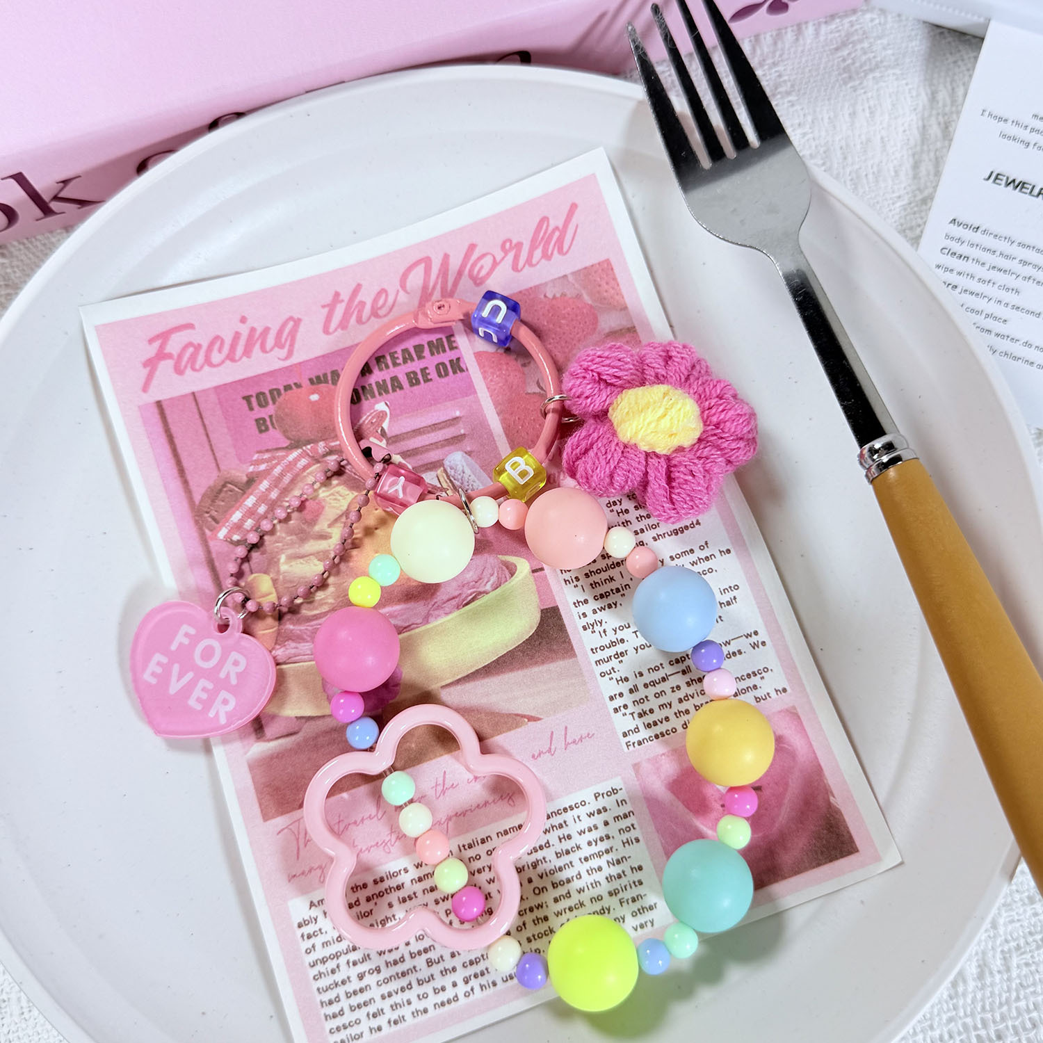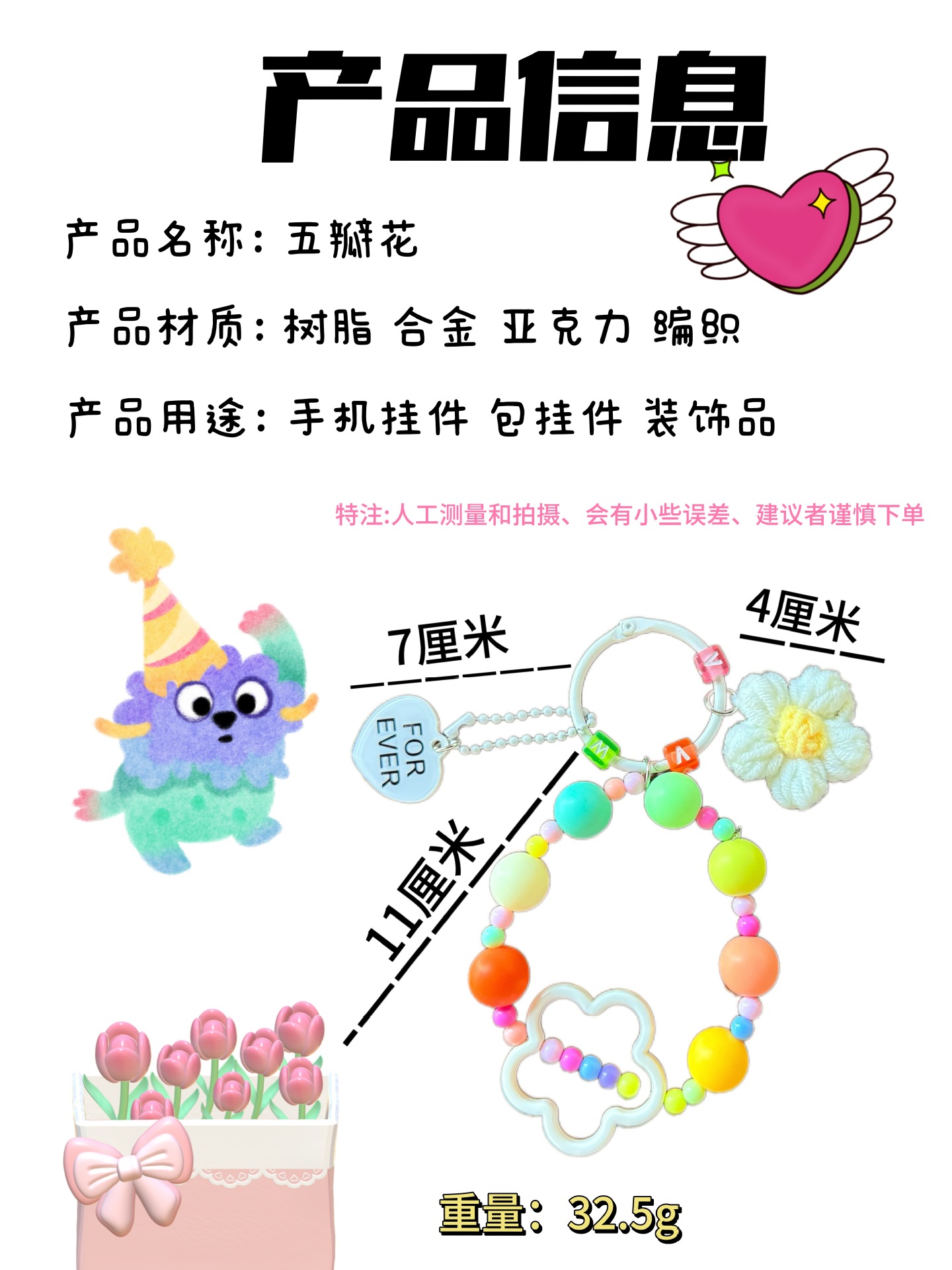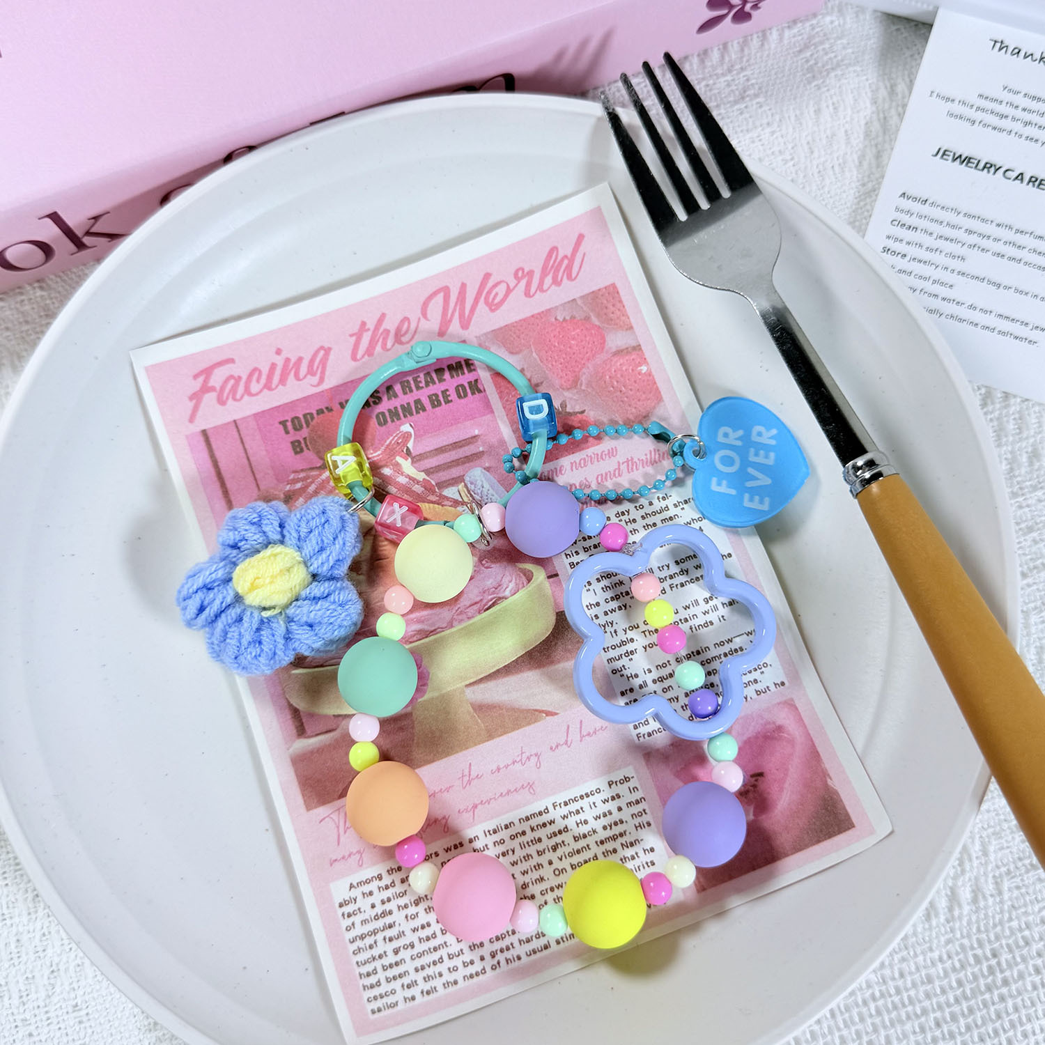 Ins 새로운 양모 다섯 꽃잎 꽃 키 체인 펜던트 구슬 귀여운 컬러 액세서리 가방 장식 어린이 도파민스토어 가기