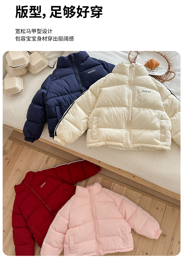 중대형 아동용 2025 겨울 빵 면 재킷, 남녀 동일 스타일 재킷, Douyin 핫 스타일 두꺼운 스탠드 칼라 면 재킷, 크로스보더스토어 가기