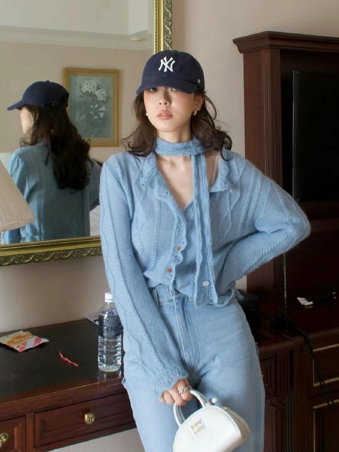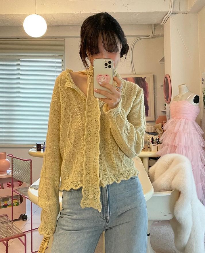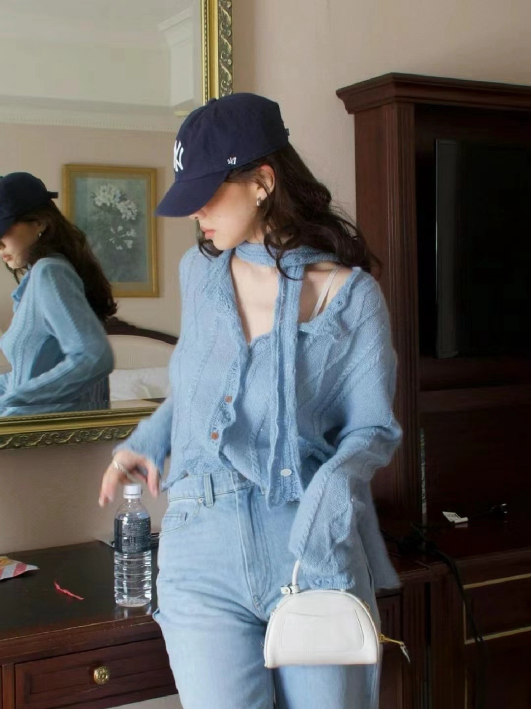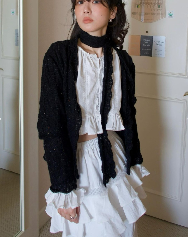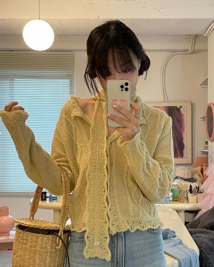 스팟상품! 2025 초가을 신제품 모헤어 스팽글 중공 얇은 한국 니트 카디건 재킷 여성용스토어 가기