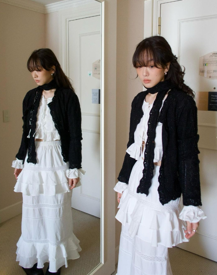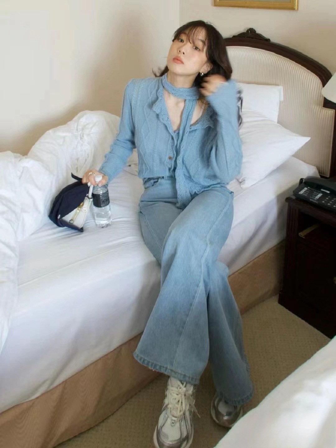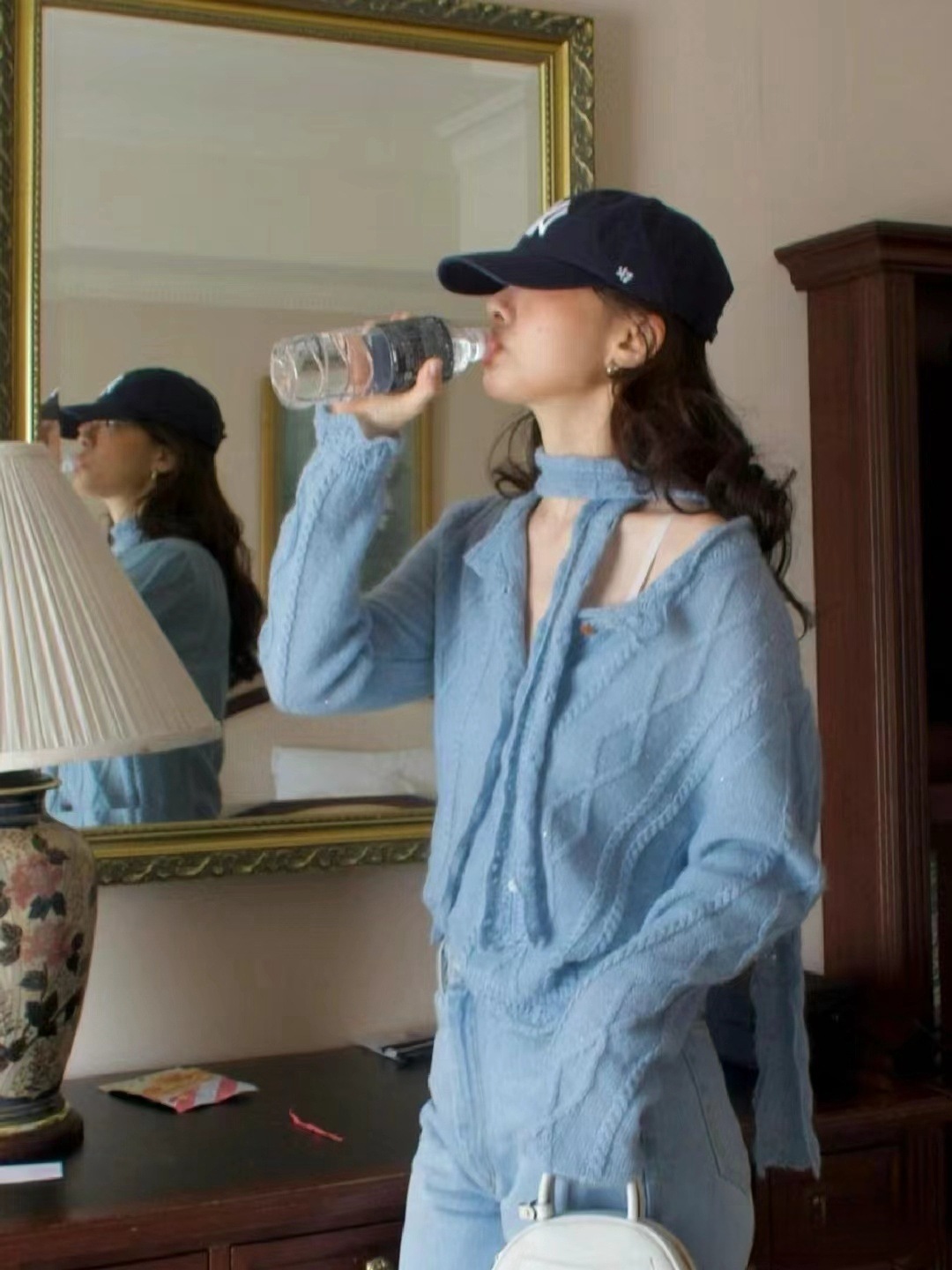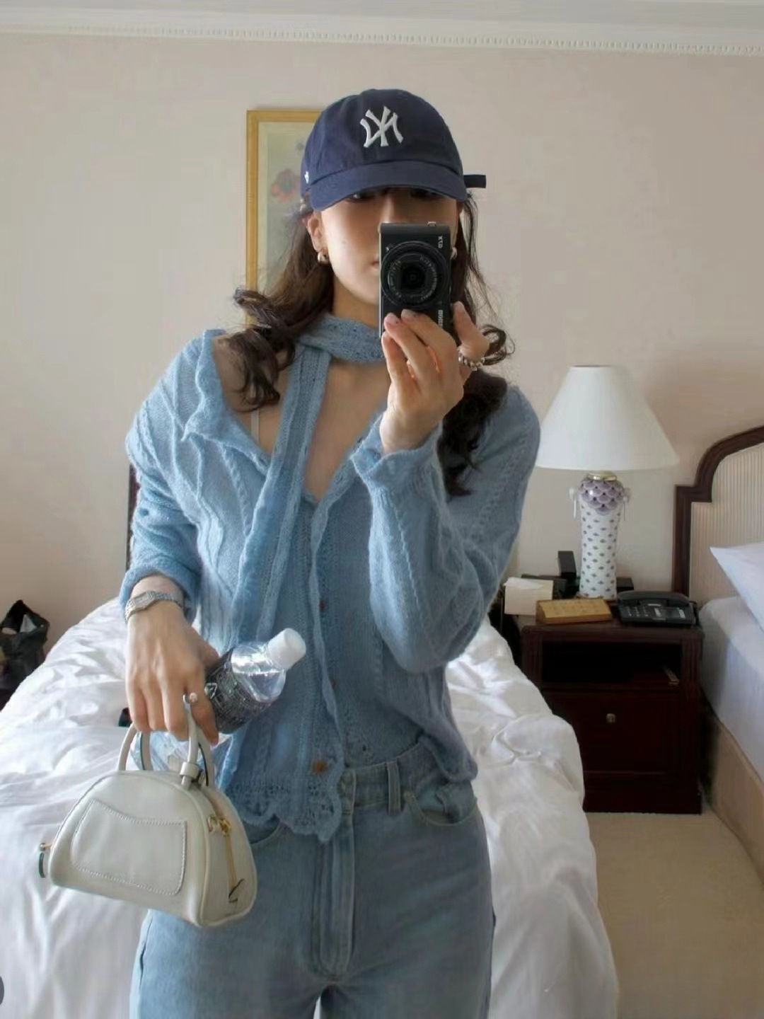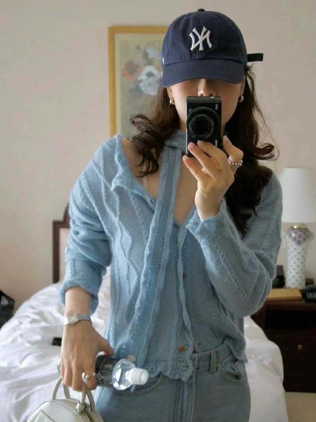 스팟상품! 2025 초가을 신제품 모헤어 스팽글 중공 얇은 한국 니트 카디건 재킷 여성용스토어 가기