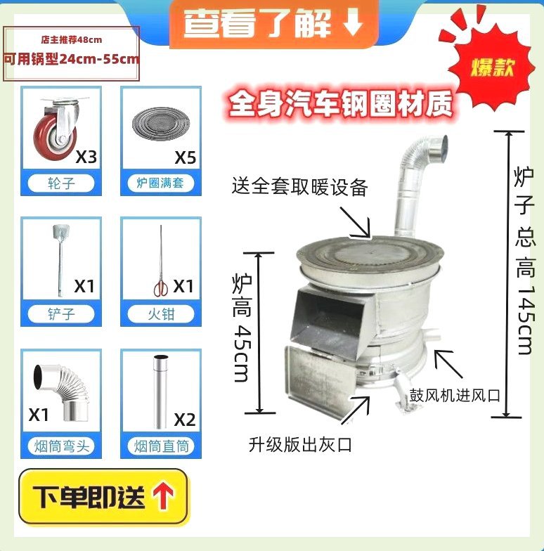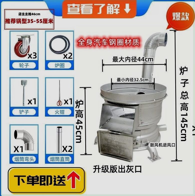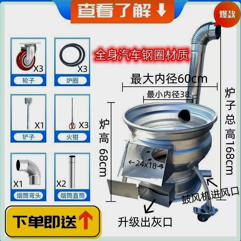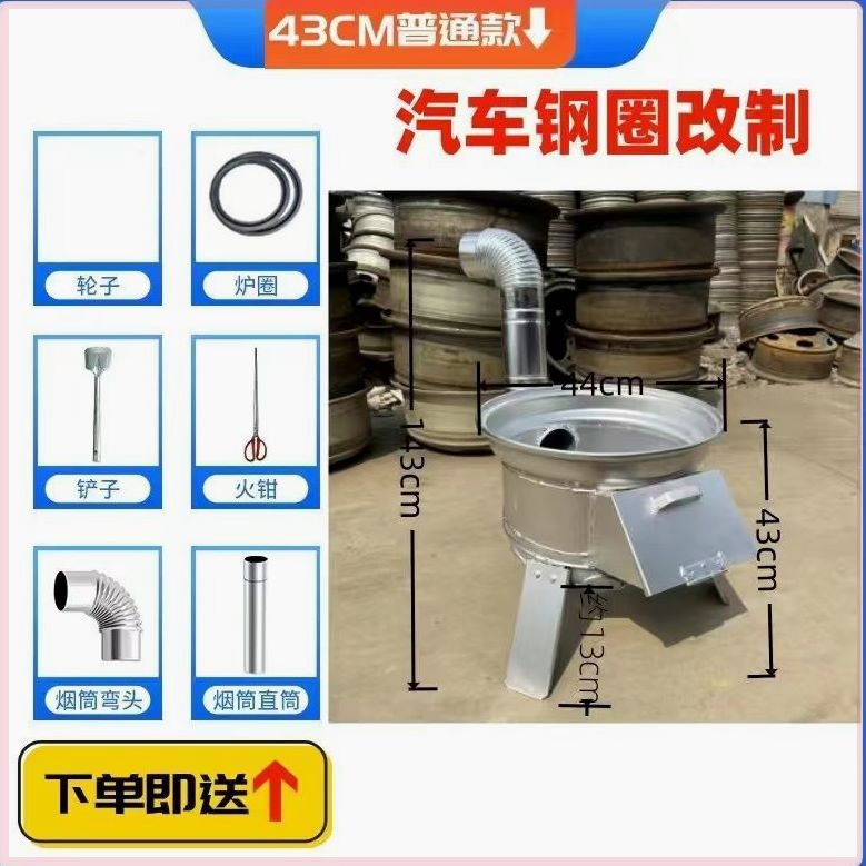 자동차 휠 허브로 개조된 장작 난로, 새로운 장작 및 석탄 휴대용 사용자, 이동식 농촌 가정용 장작 난로 2개스토어 가기