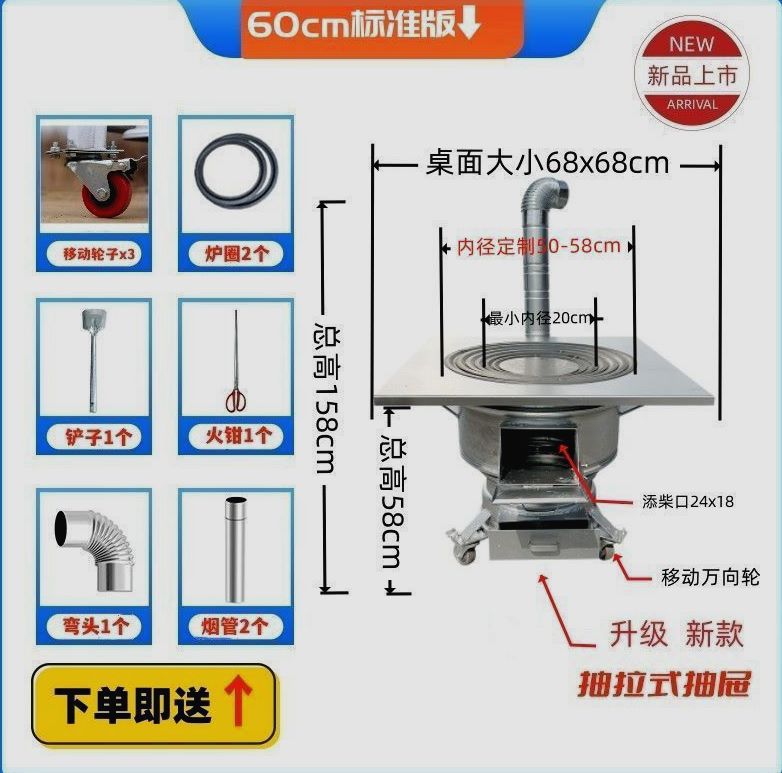 • 전체 원이 있는 장작 및 석탄 이중 목적 데스크탑 버전 60cm 이중 휠 허브