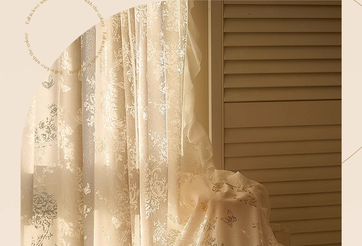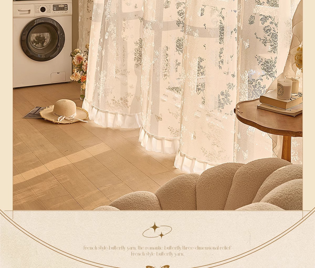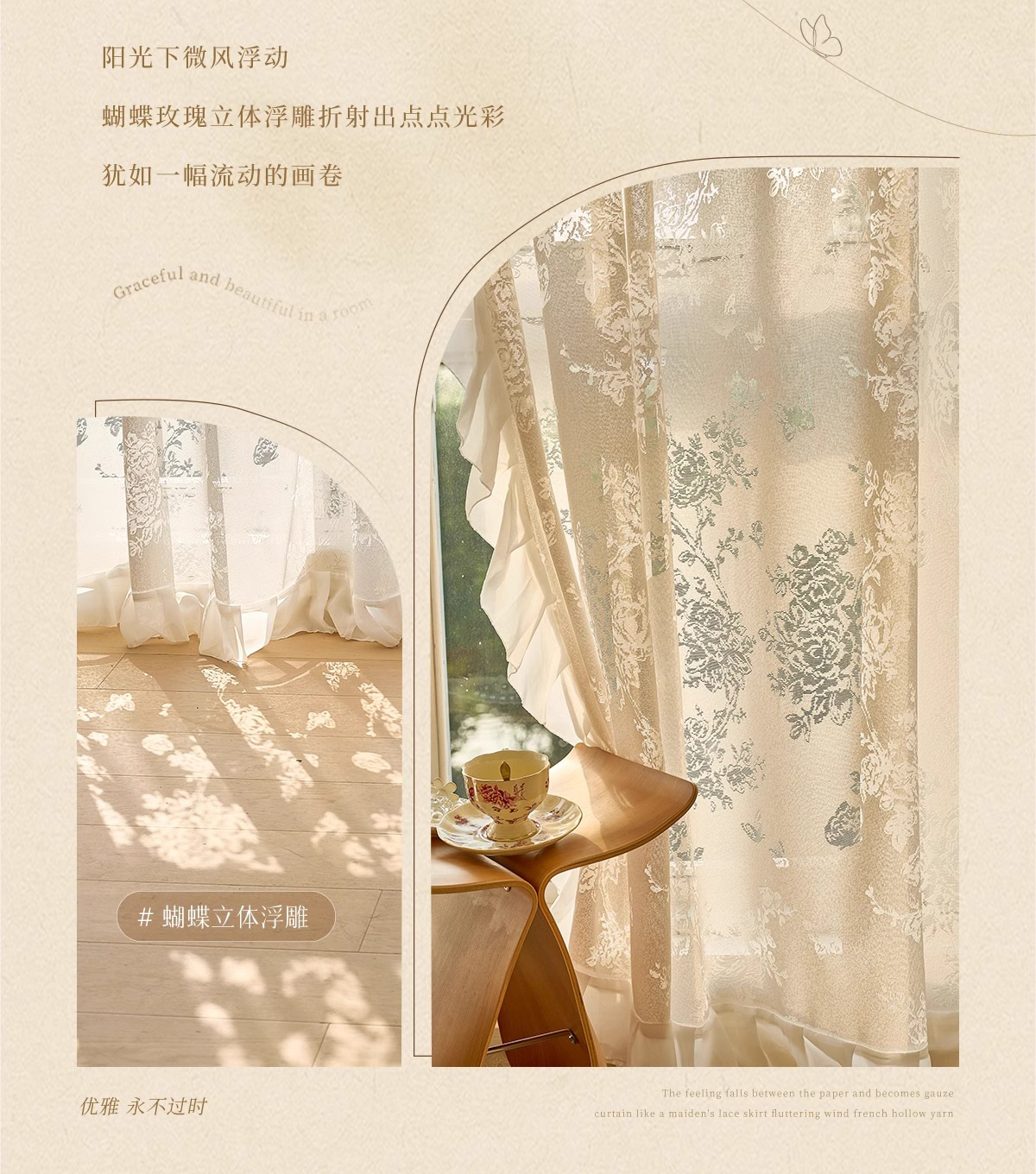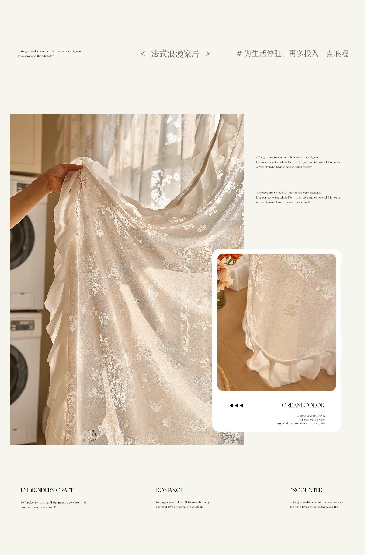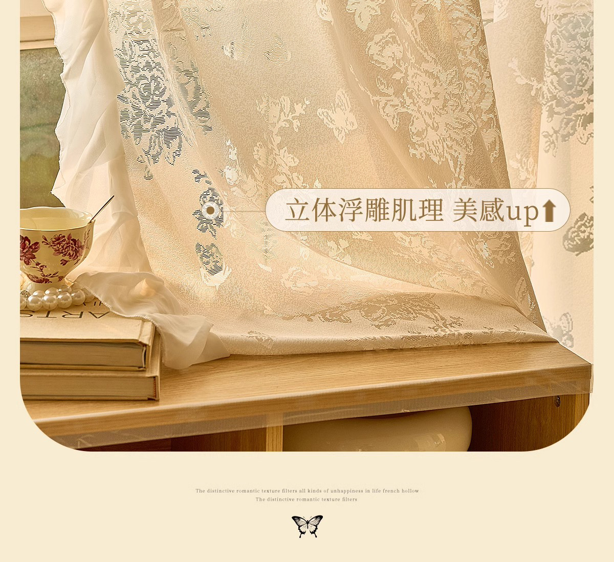 프렌치 스타일 거실 더블 레이어 거즈 커튼 크림 스타일 발코니 침실 중공 자수 나비 거즈 레이스 창 스크린 커튼 파티션 커튼