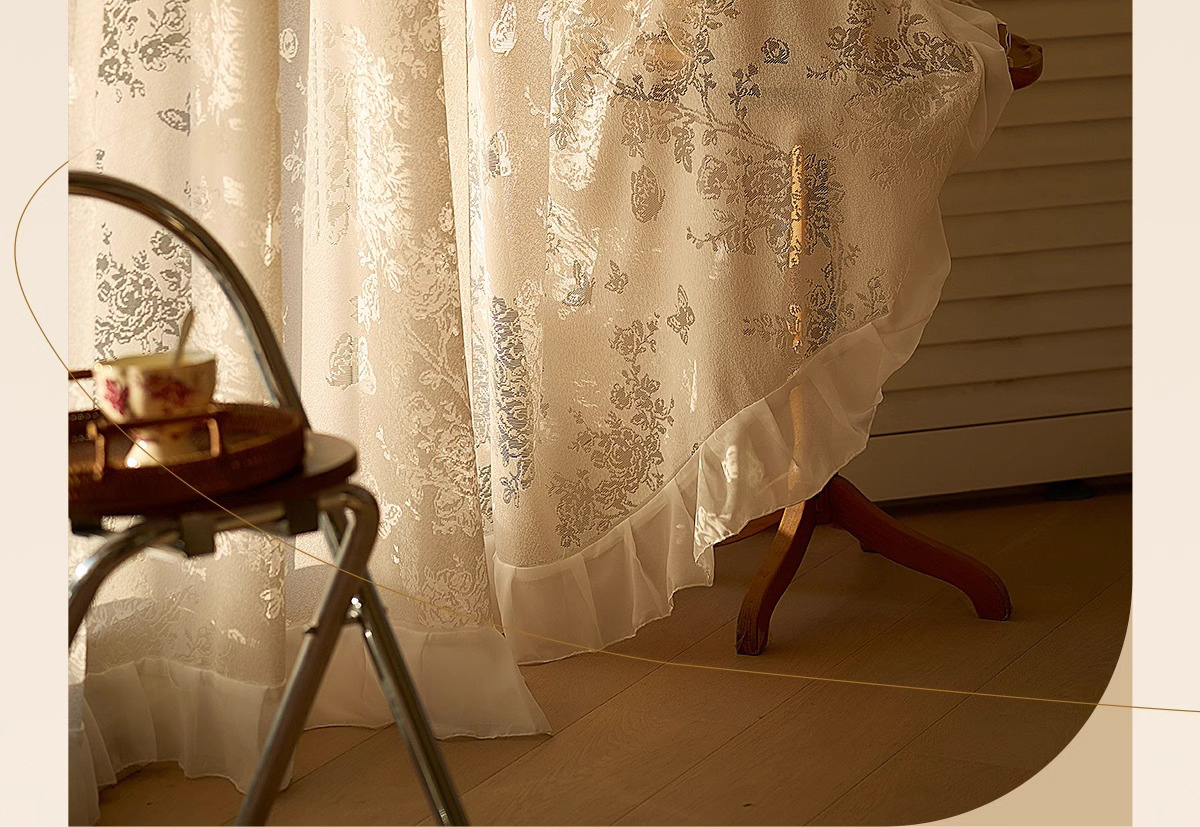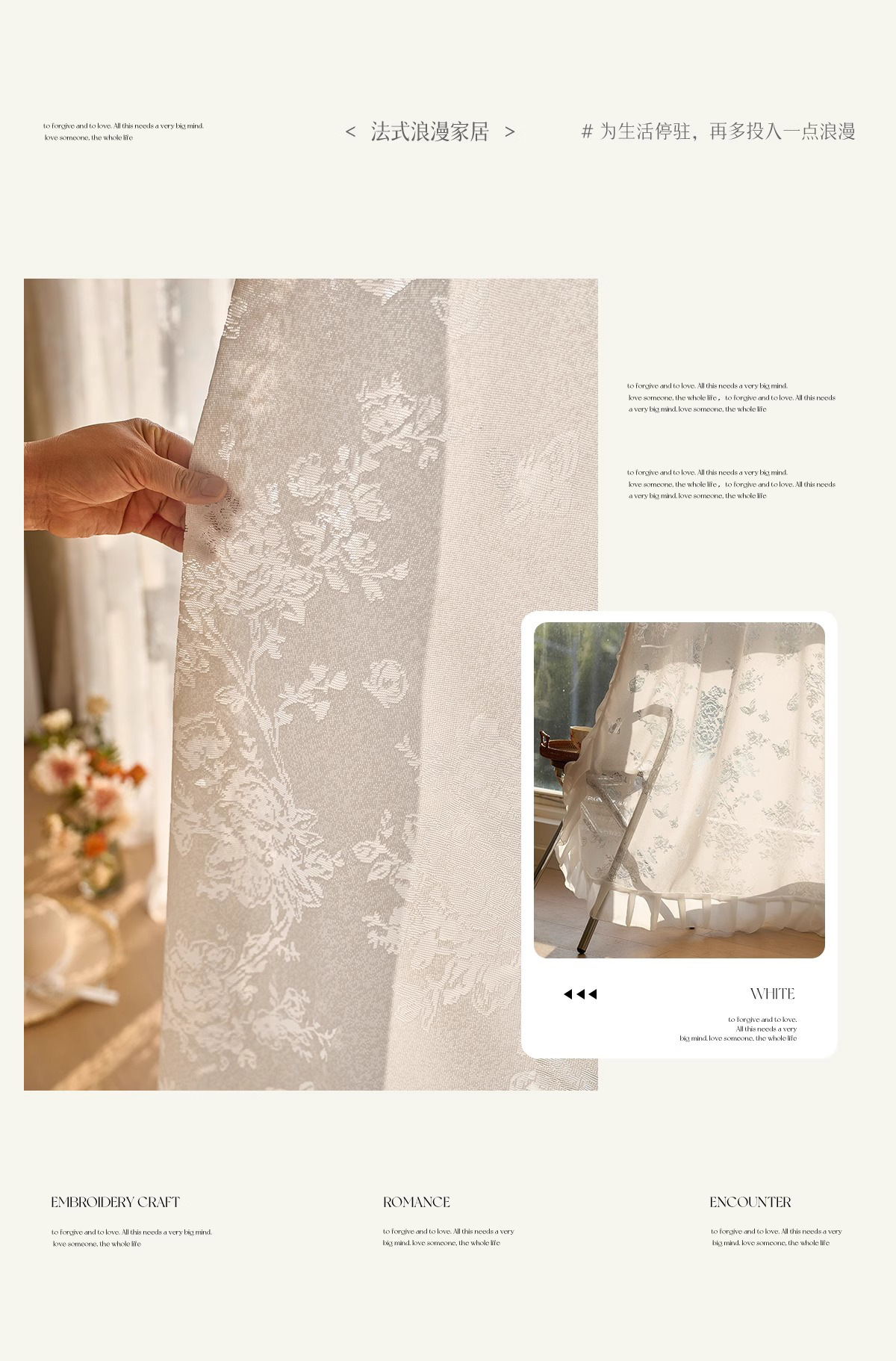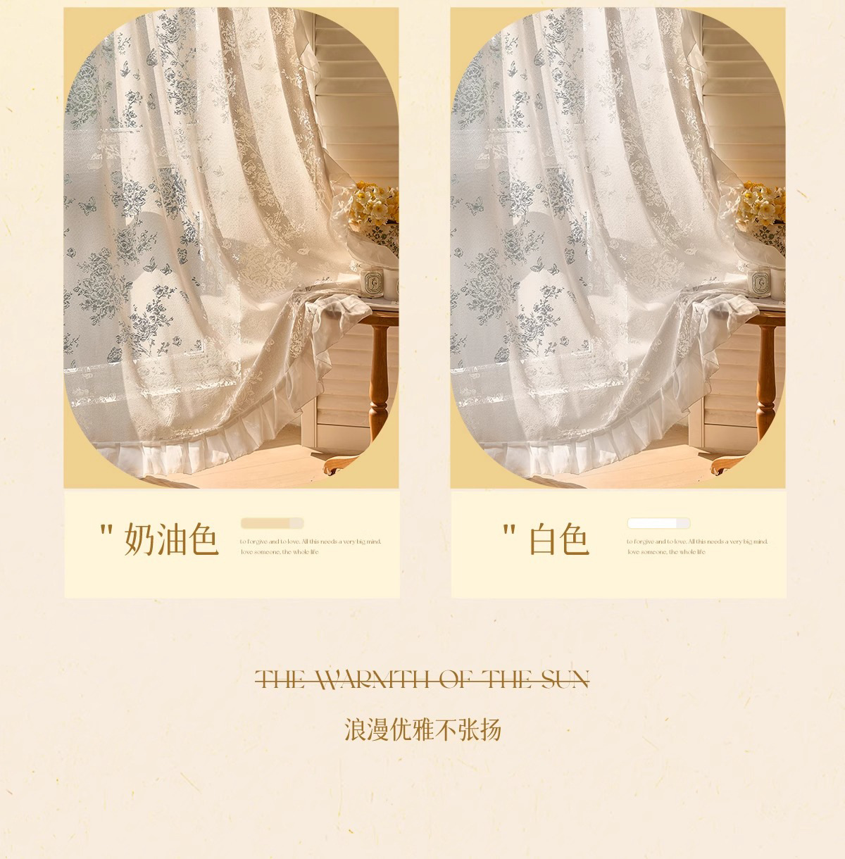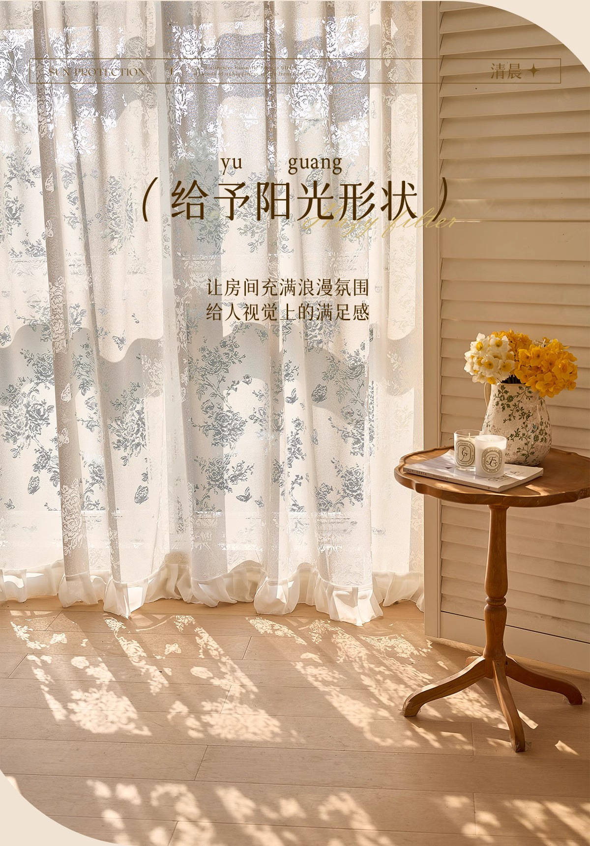 프렌치 스타일 거실 더블 레이어 거즈 커튼 크림 스타일 발코니 침실 중공 자수 나비 거즈 레이스 창 스크린 커튼 파티션 커튼