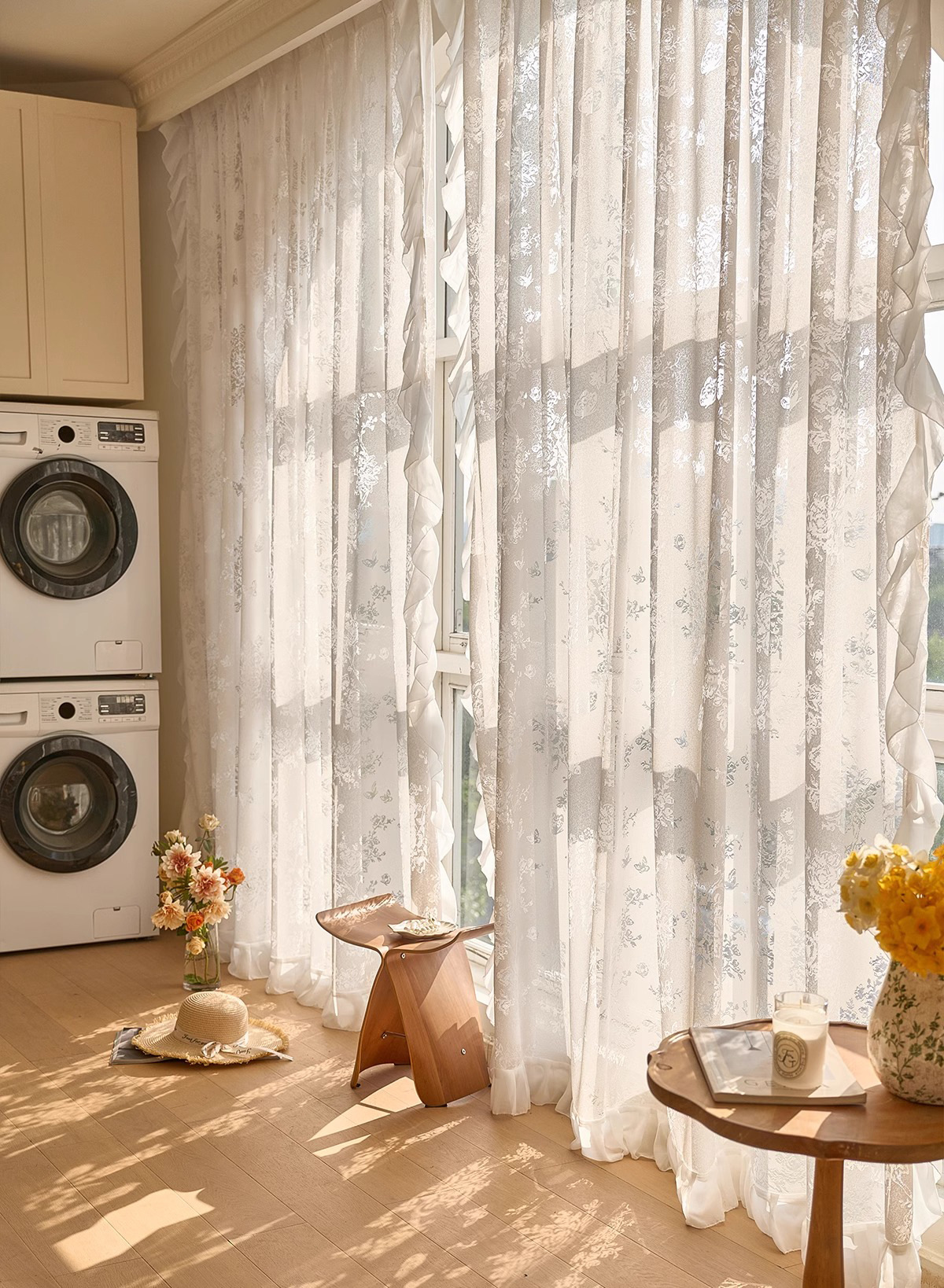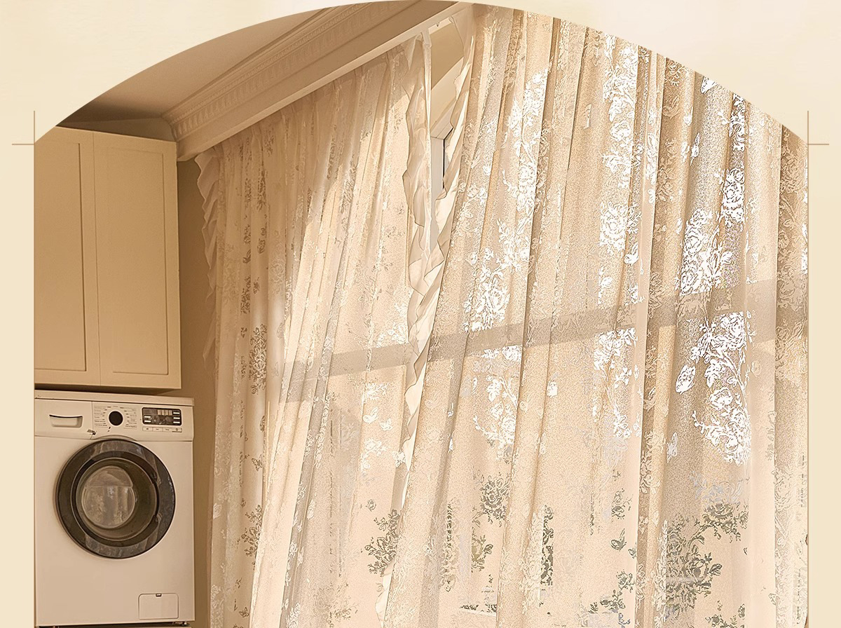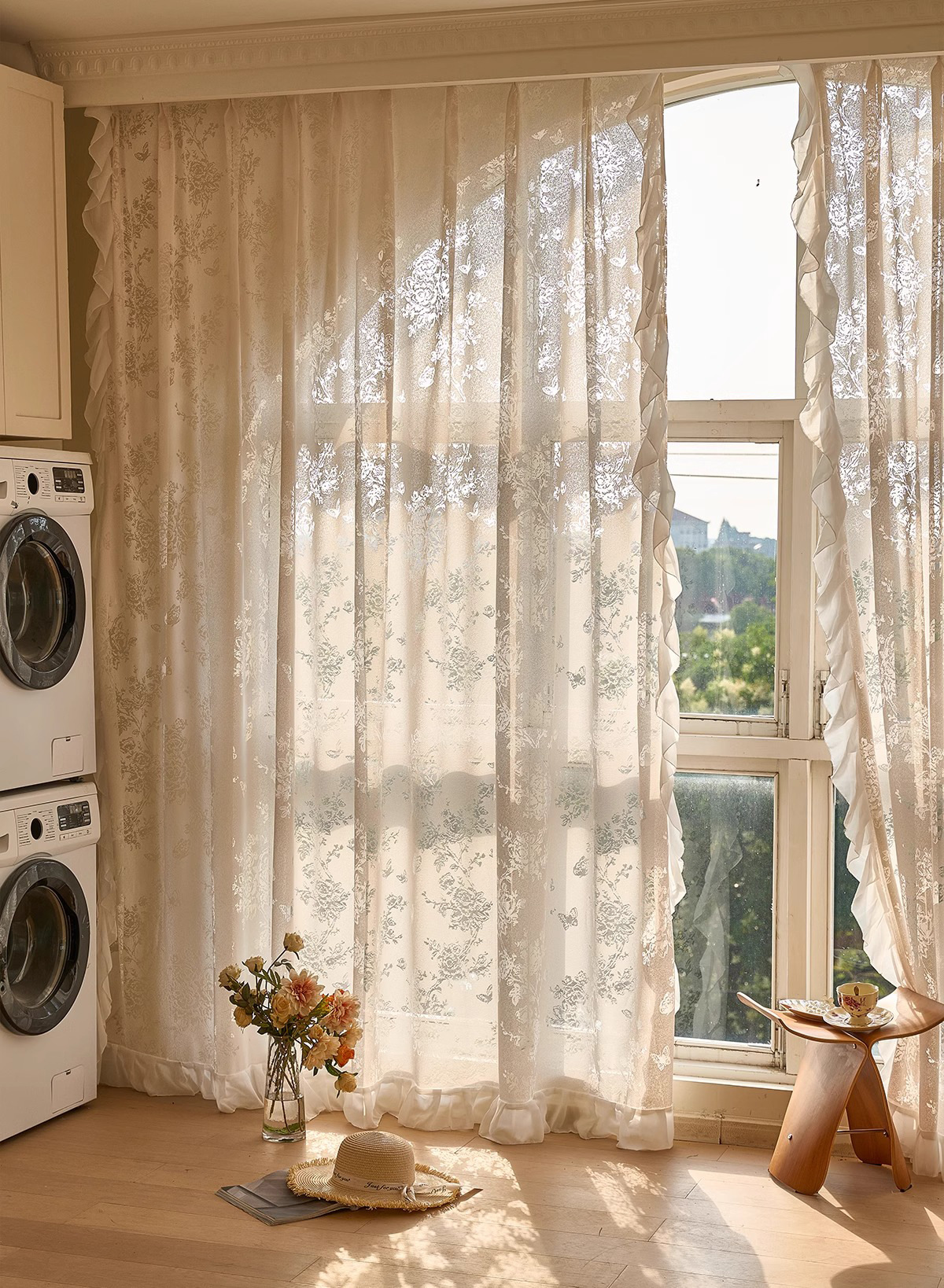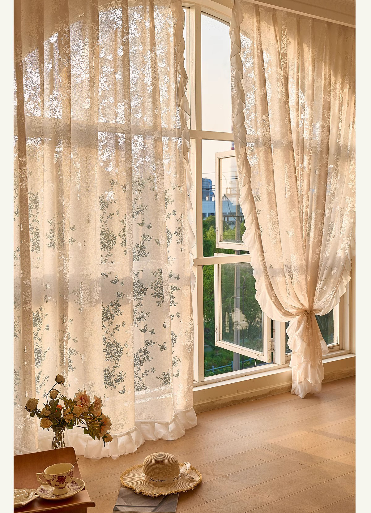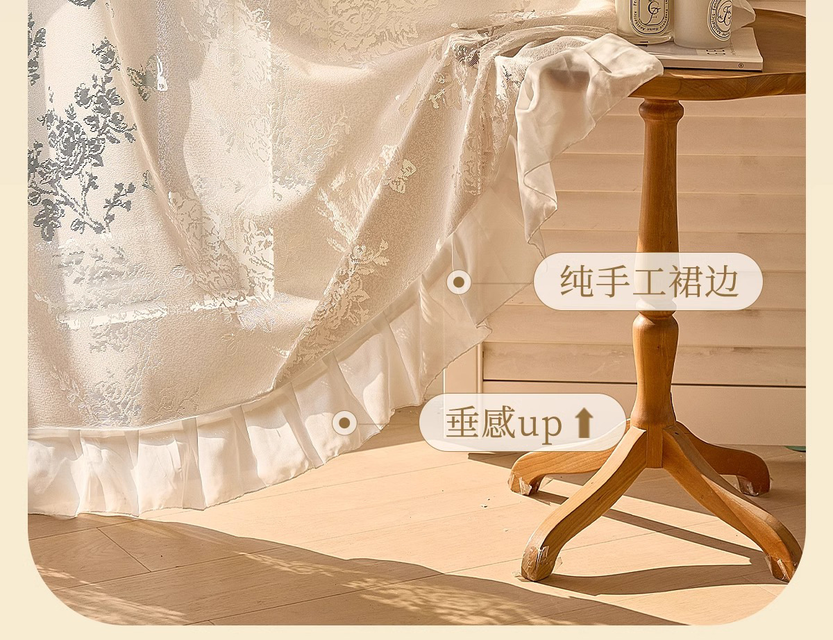프렌치 스타일 거실 더블 레이어 거즈 커튼 크림 스타일 발코니 침실 중공 자수 나비 거즈 레이스 창 스크린 커튼 파티션 커튼