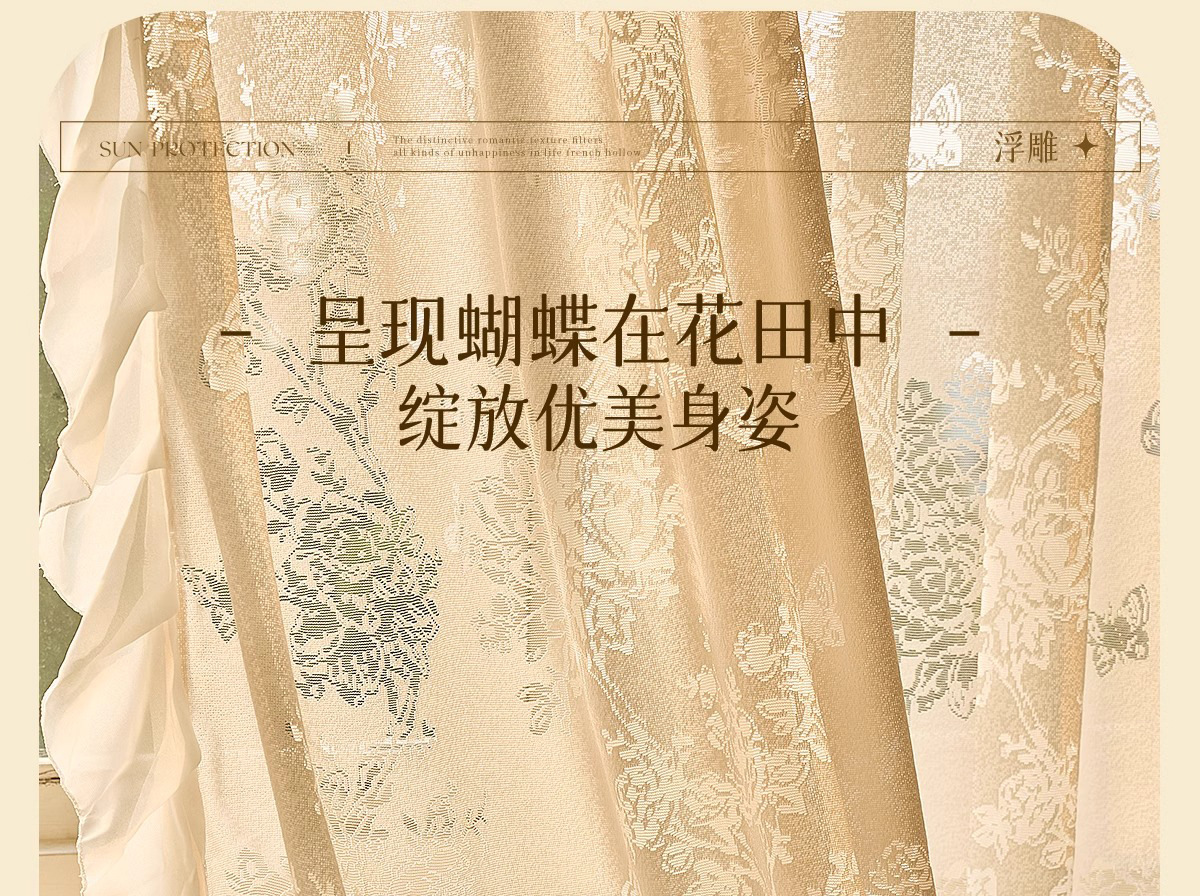 프렌치 스타일 거실 더블 레이어 거즈 커튼 크림 스타일 발코니 침실 중공 자수 나비 거즈 레이스 창 스크린 커튼 파티션 커튼스토어 가기