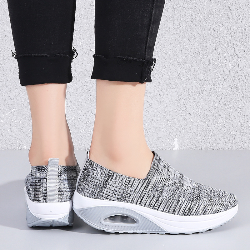 슬립온 새로운 여성 신발 두꺼운 바닥 에어 쿠션 게으른 캐주얼 스포츠 편안한 신발 통기성 플라이 짠 부드러운 바닥 여성 신발