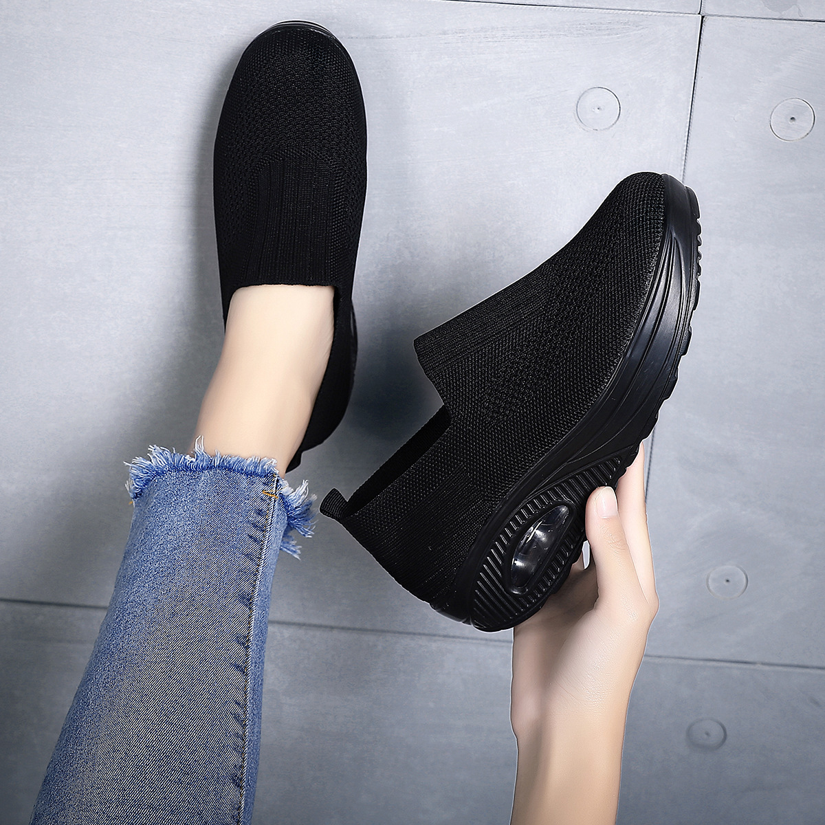 一脚蹬摇摇新款女鞋厚底气垫懒人休闲运动舒适鞋透气飞织软底女鞋