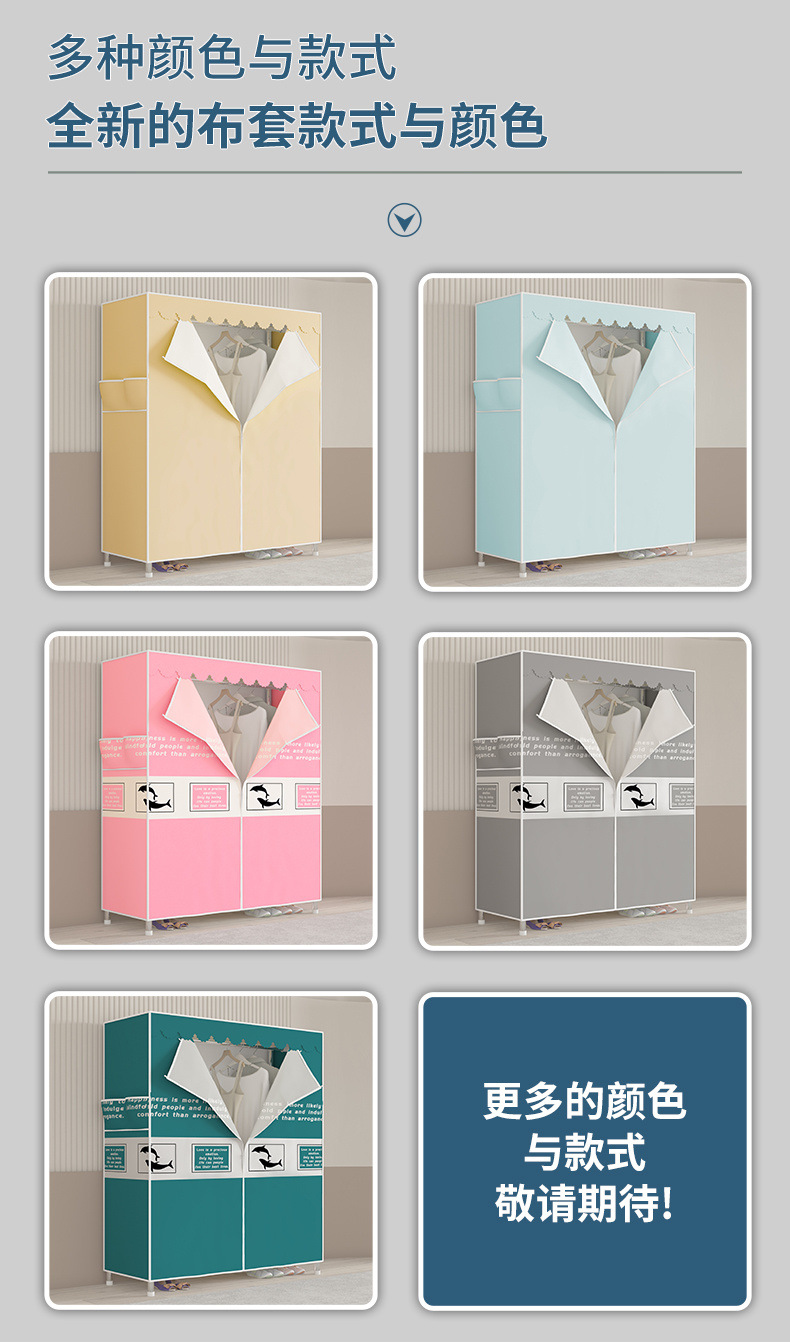 간단한 옷장 임대 침실 가정용 두꺼운 강한 내구성 강철 파이프 두꺼운 강화 이중층 저장 천 옷장
