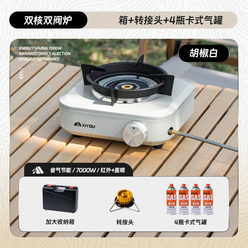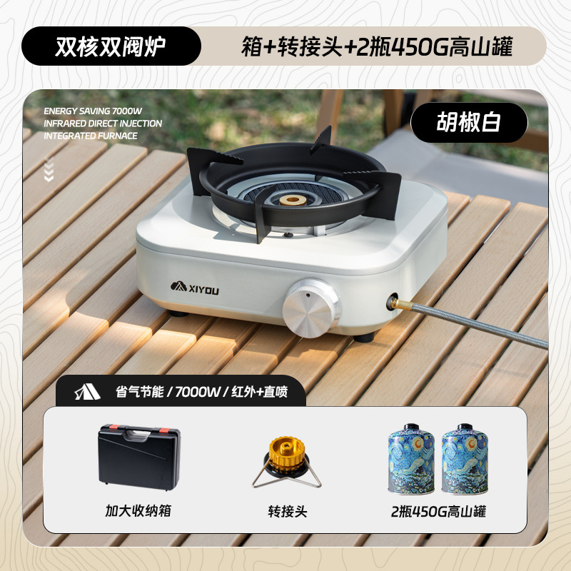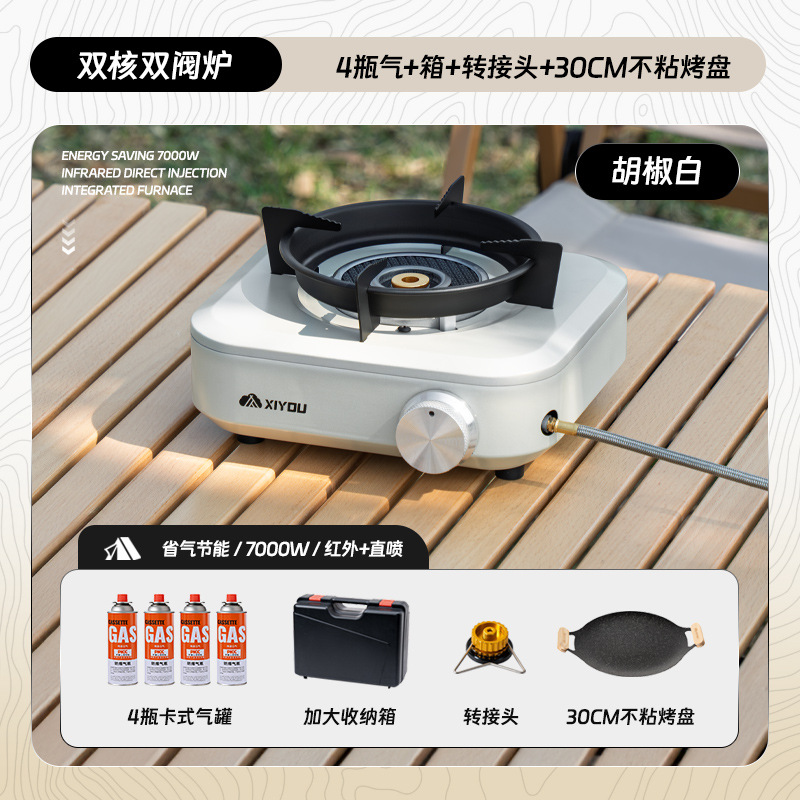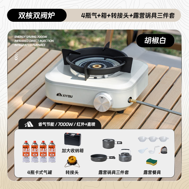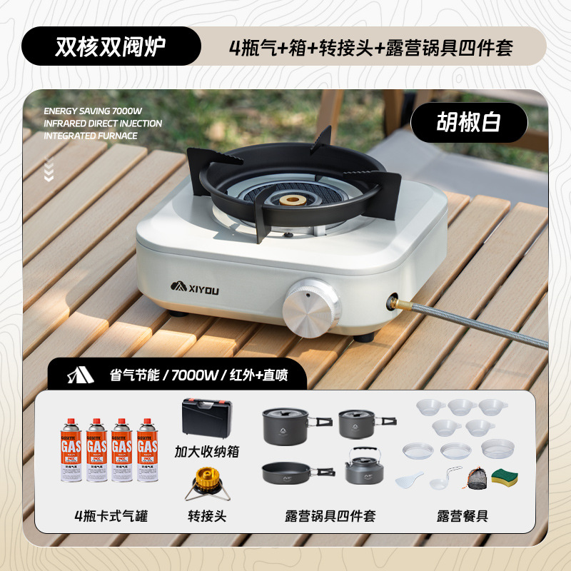• 듀얼코어 더블밸브 스토브 [페퍼화이트] + 냄비4종세트 + 가스4개