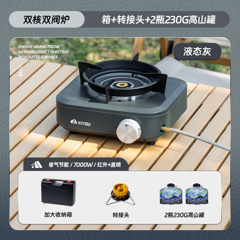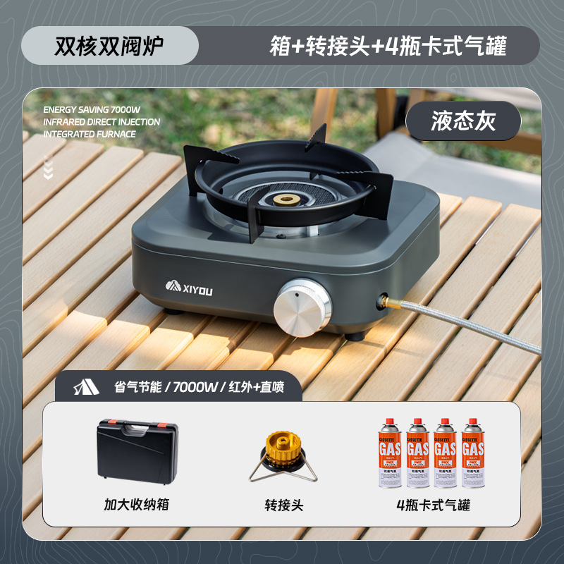 • 듀얼 코어 더블 밸브 퍼니스 [액체 회색] + 카세트 가스 탱크 4개