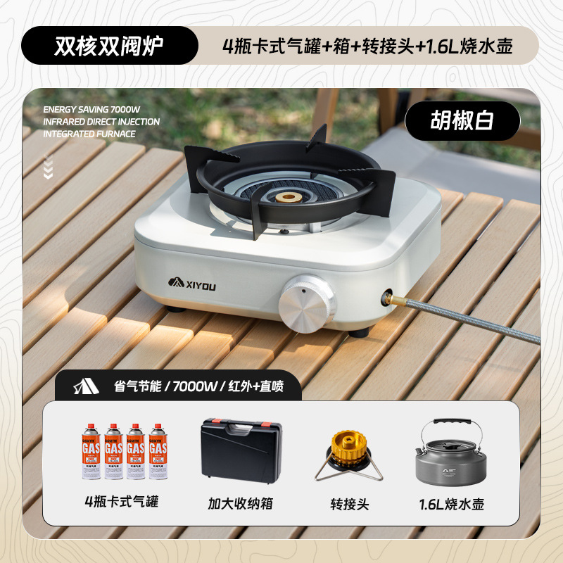• 듀얼코어 더블밸브 스토브 [페퍼화이트] + 1.6L 주전자 + 가스 4개
