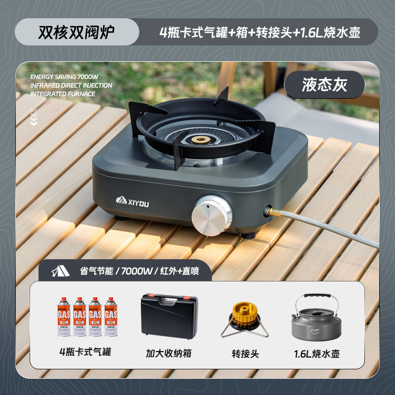 • 듀얼코어 더블밸브 스토브 [리퀴드 그레이] + 1.6L 주전자 + 가스 4개