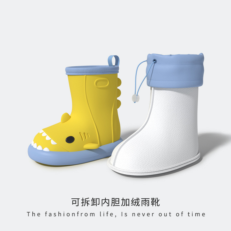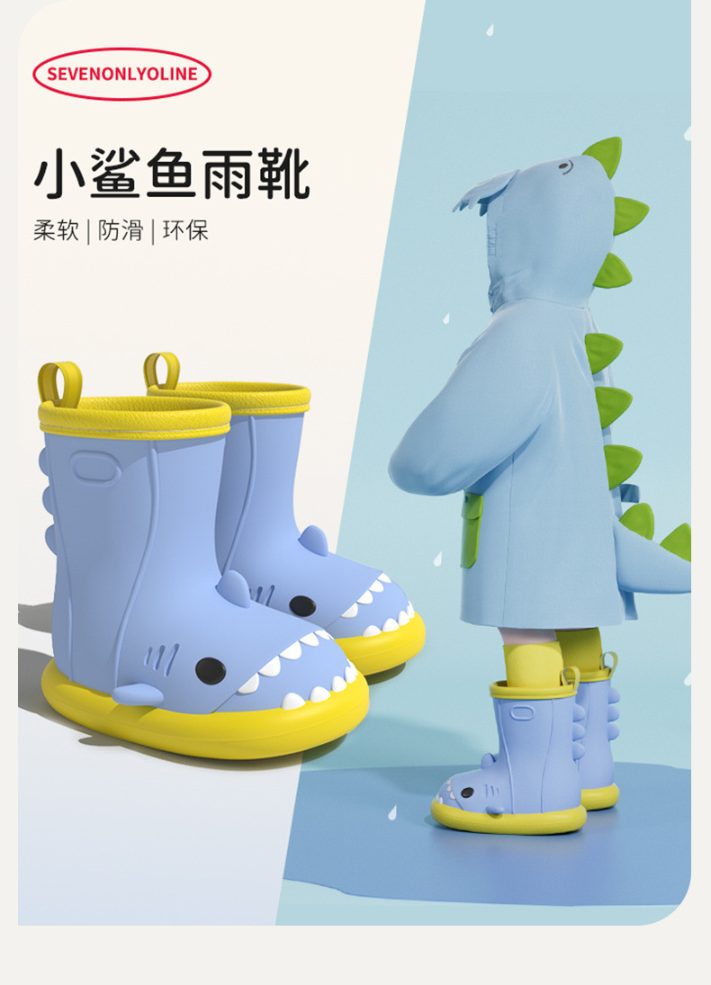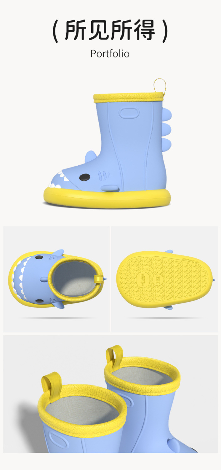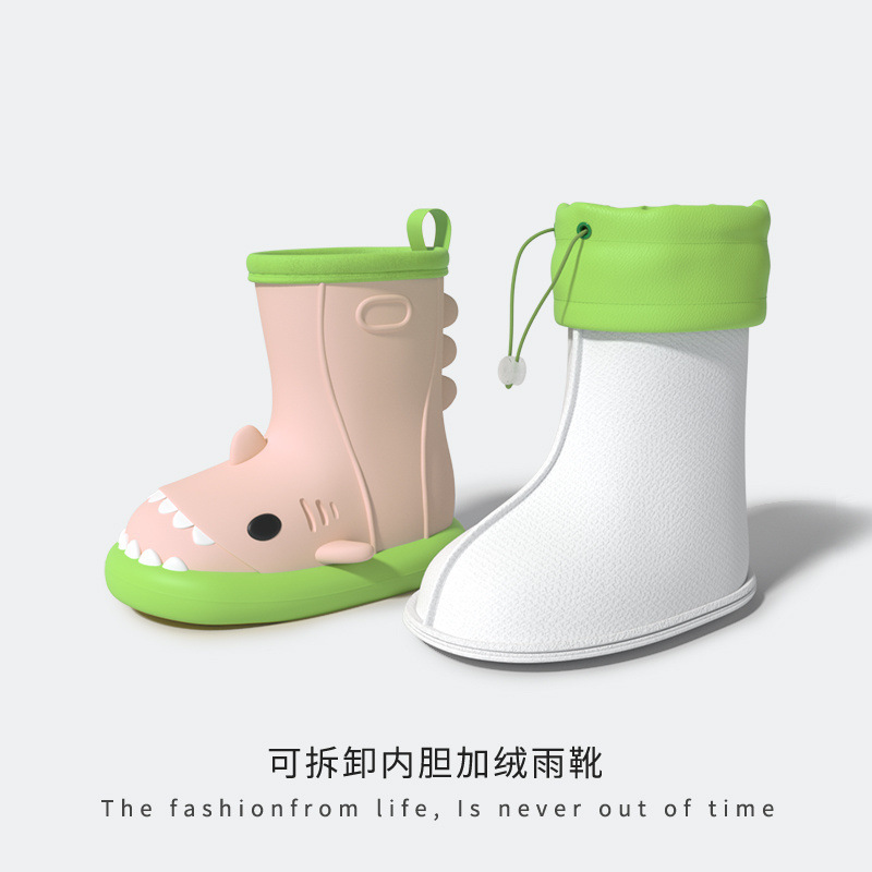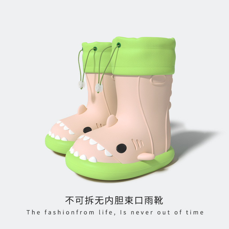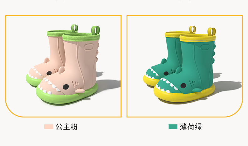작은 공주 어린이 장화 및 비옷 세트 소녀 미끄럼 방지 귀여운 상어 아기 장화 소녀 유치원 물 신발스토어 가기