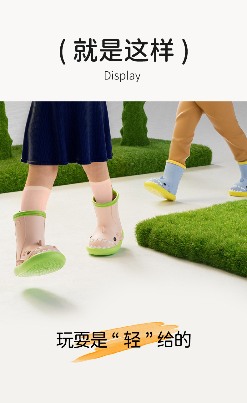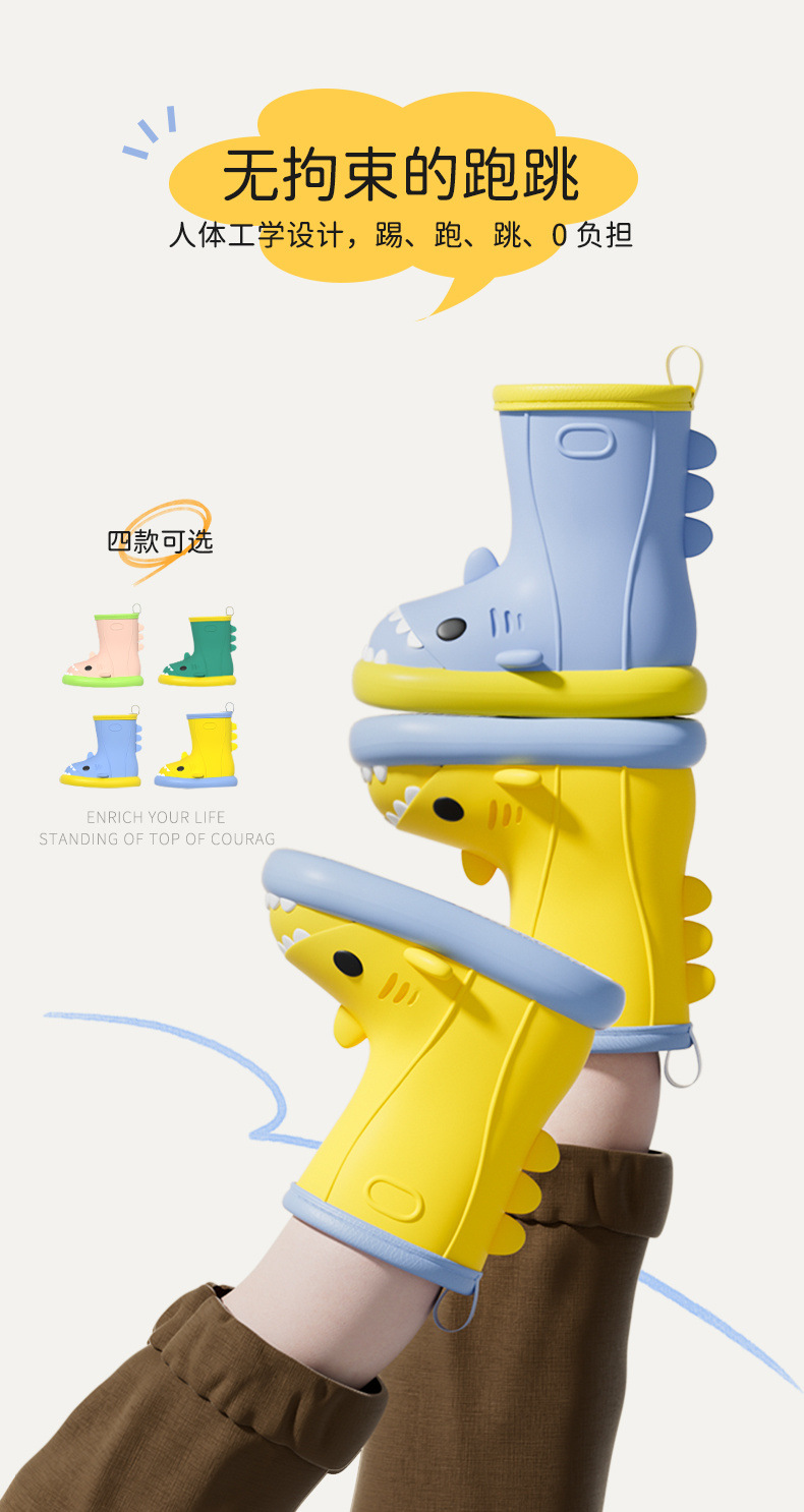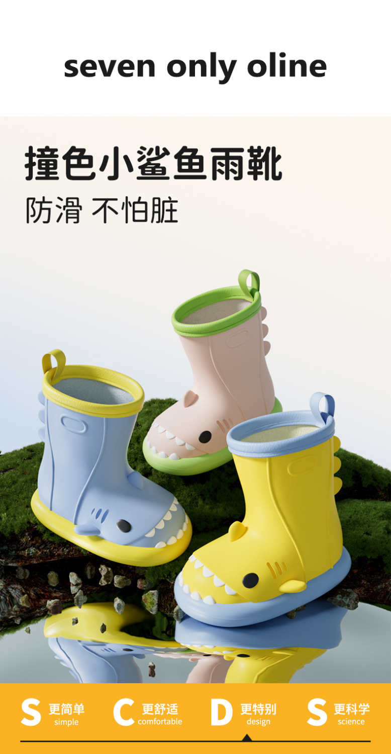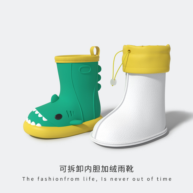 작은 공주 어린이 장화 및 비옷 세트 소녀 미끄럼 방지 귀여운 상어 아기 장화 소녀 유치원 물 신발스토어 가기