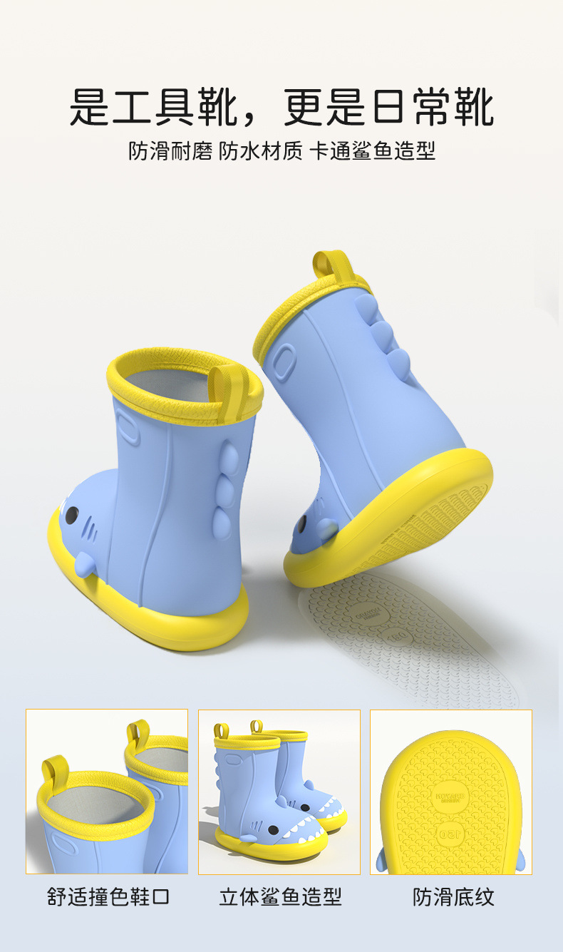 작은 공주 어린이 장화 및 비옷 세트 소녀 미끄럼 방지 귀여운 상어 아기 장화 소녀 유치원 물 신발