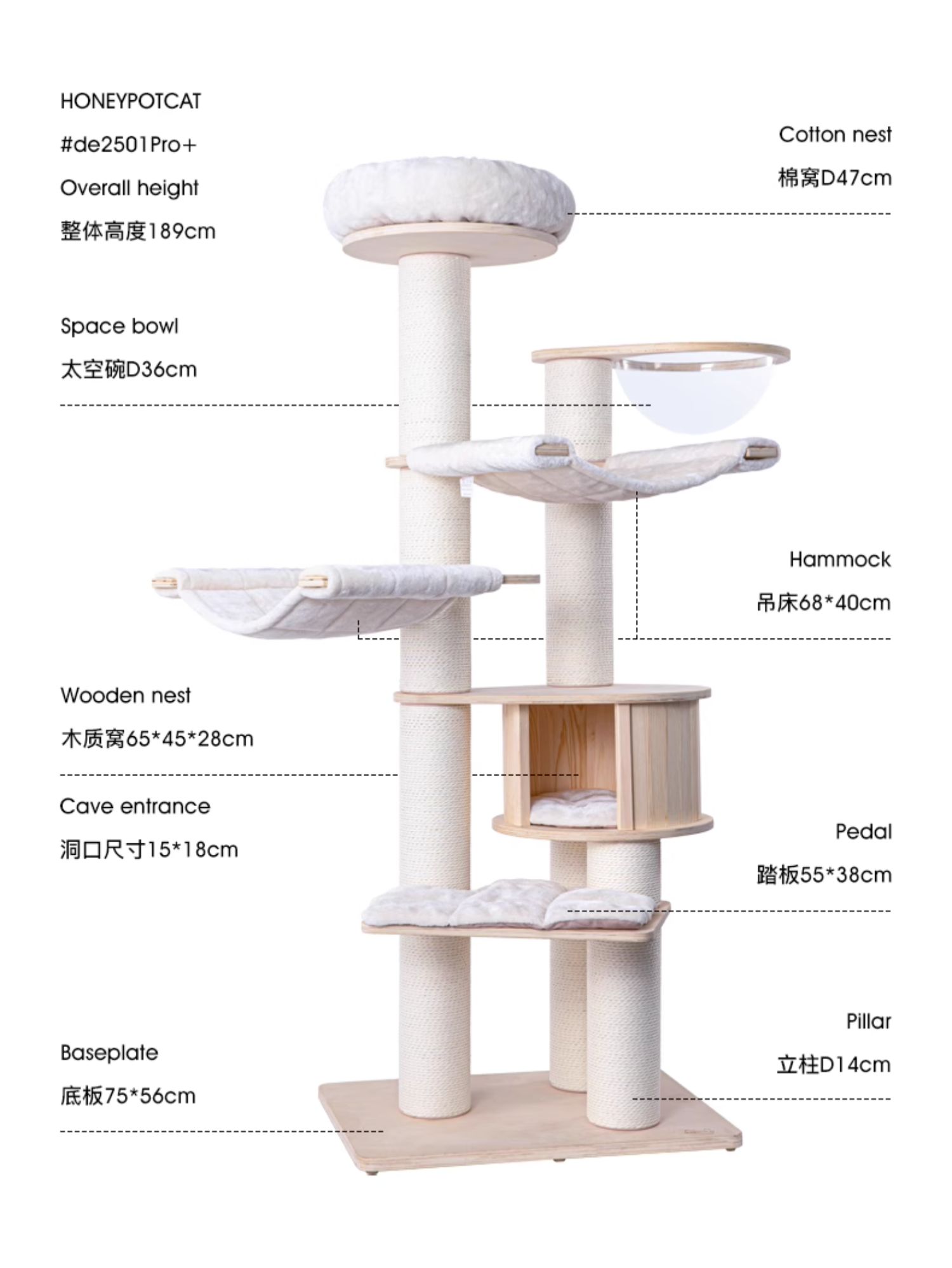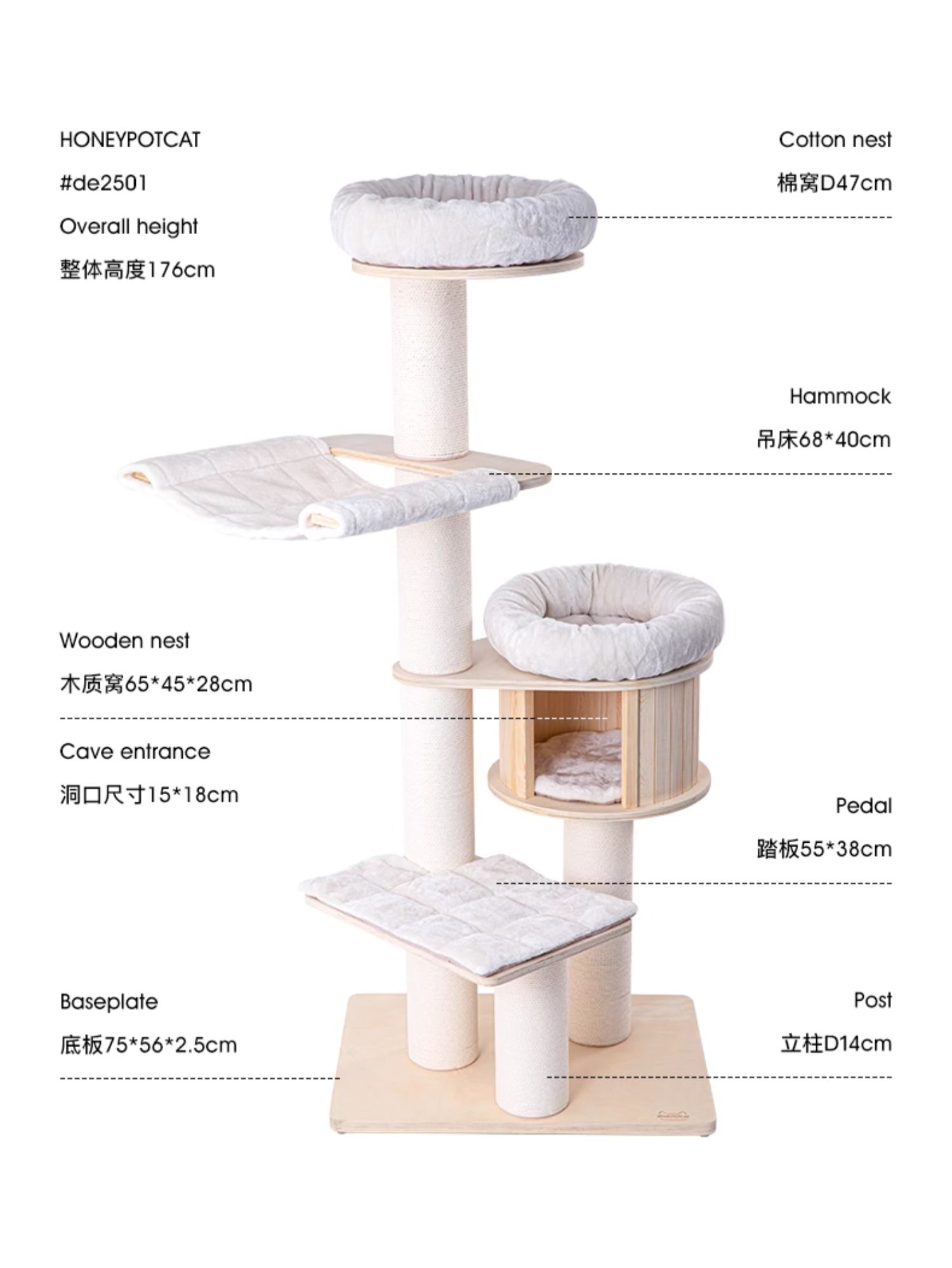 고급스러운 새로운 클라이밍 프레임 고양이 둥지와 고양이 나무 일체형 다층 단단한 자작나무 대형 고양이 프레임 목재 de2501pro스토어 가기