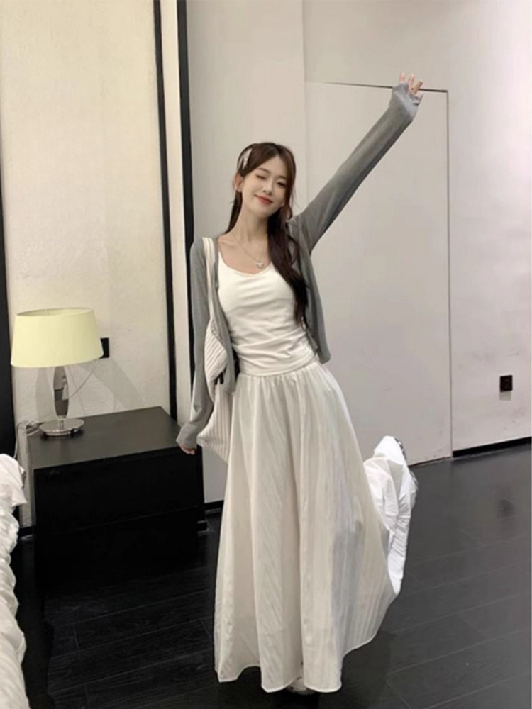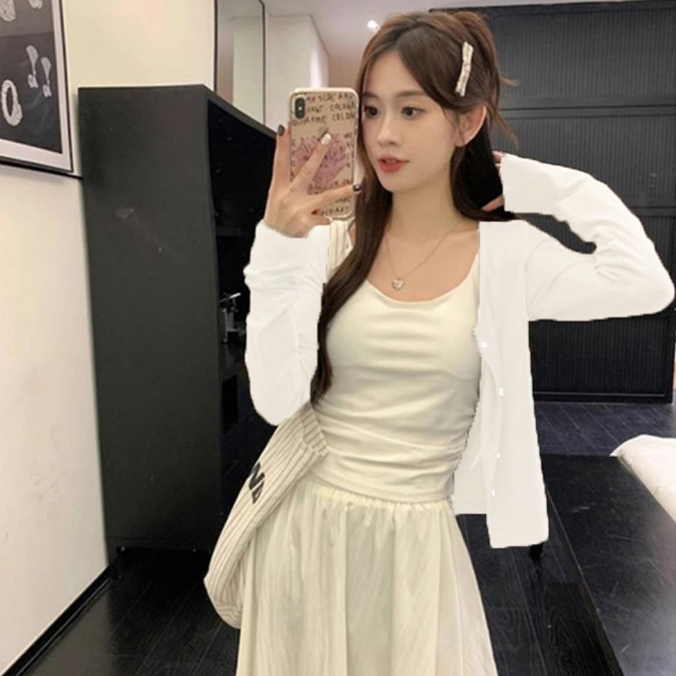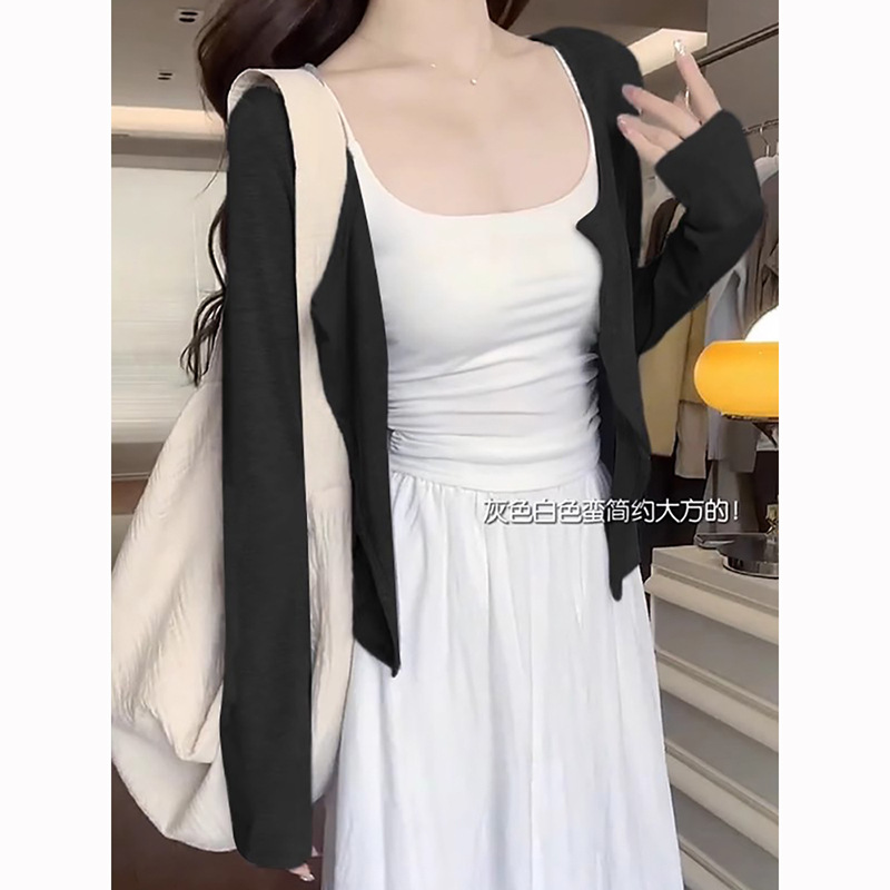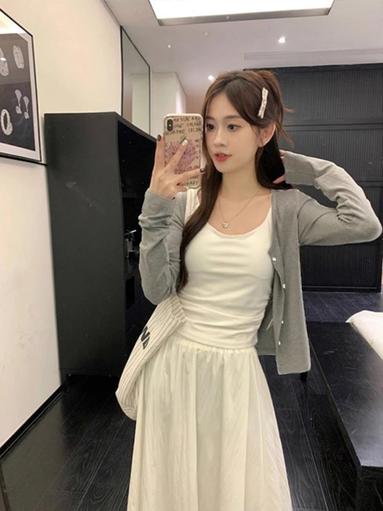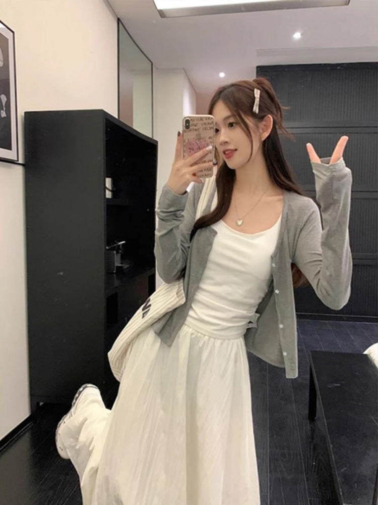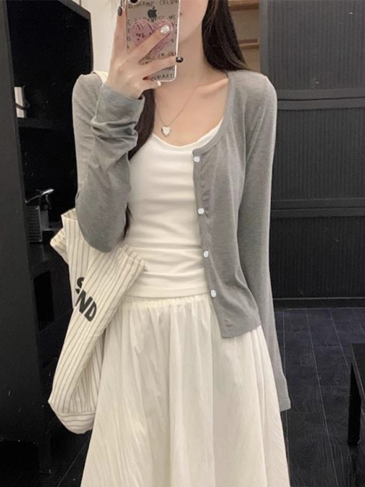 심플하고 활용도가 높은 그레이 슬림핏 재킷 니트 가디건 긴팔 여성 2025 초가을 레이지 아우터 탑