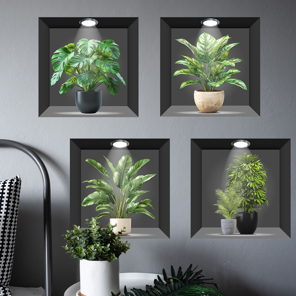 Yiyao DD33112 신선한 여러 조합 녹색 화분 벽 스티커 거실 통로 분위기 장식 자체 접착 스티커