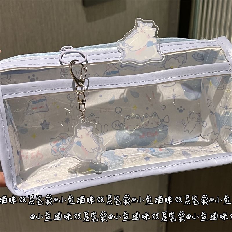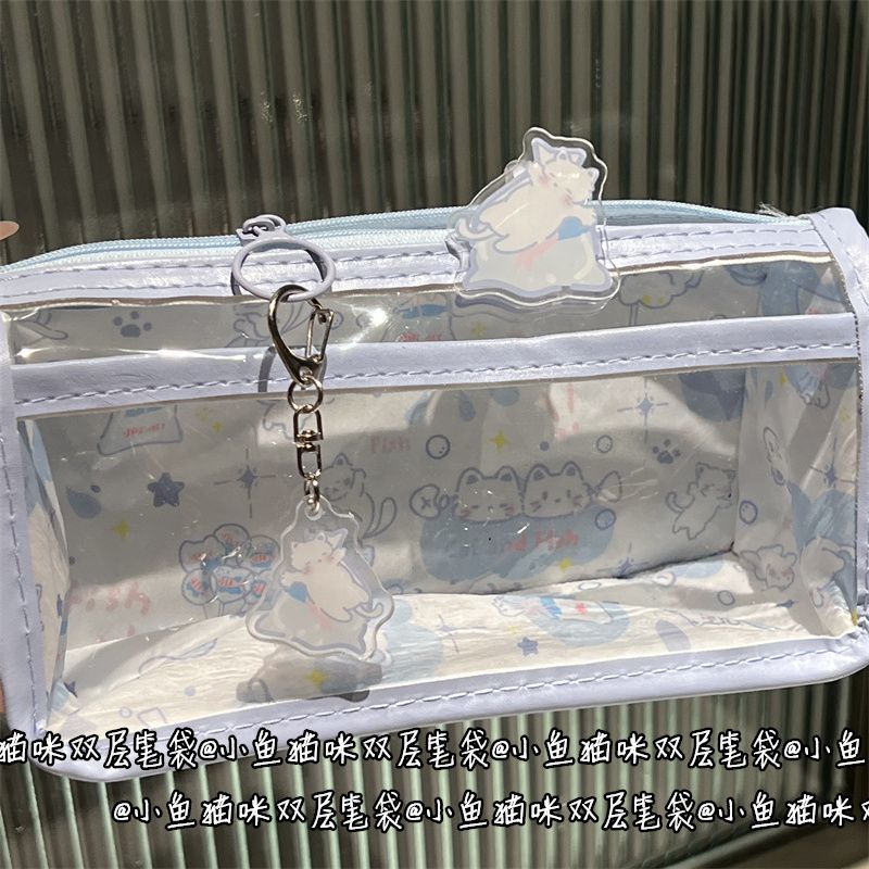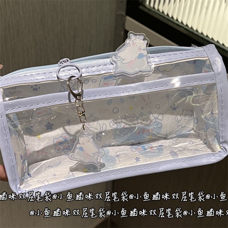 Xiaoyu Cat 더블 레이어 연필 가방 ins 스타일 고가치 귀여운 학생 투명 휴대용 삼각형 문구 보관 가방스토어 가기
