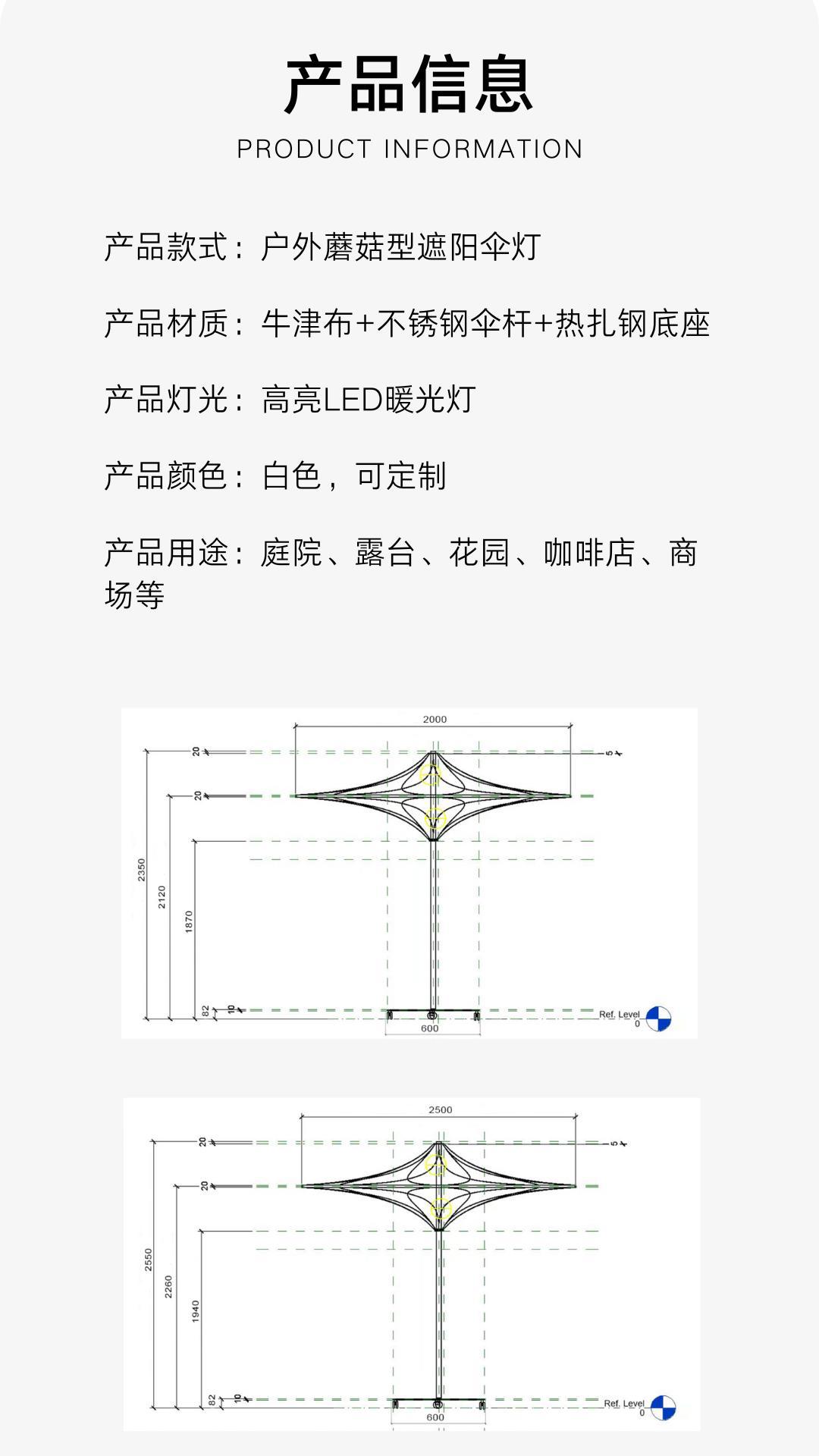 고급 야외 파라솔, 빌라 안뜰 파라솔, 램프, 버섯 모양의 램프, 파라솔, 중간 기둥 파라솔