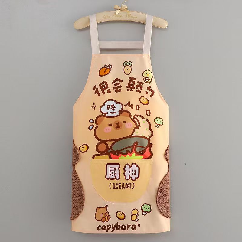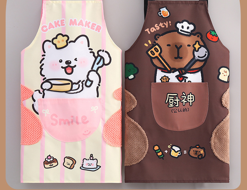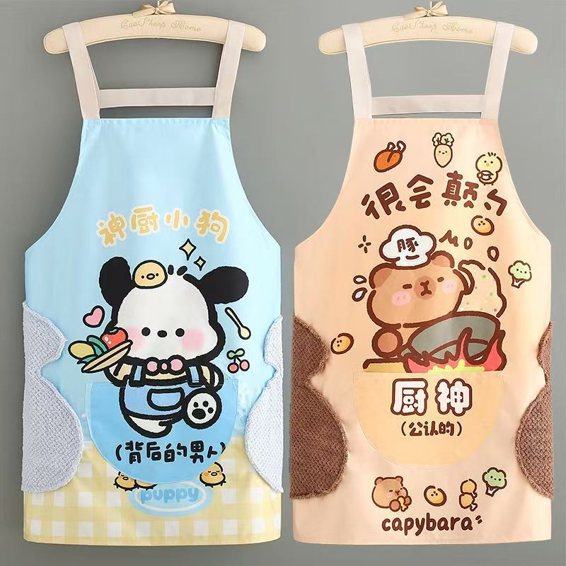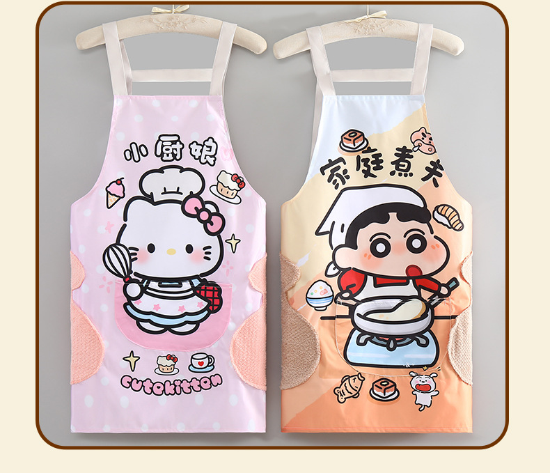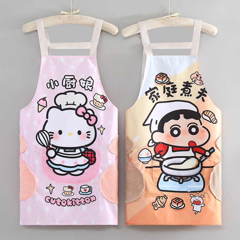 성인을위한 새로운 슈퍼 귀여운 방수 앞치마 만화 귀여운 가정용 민소매 주방 요리 손 닦기 앞치마 오일 방지 작업스토어 가기