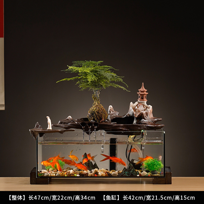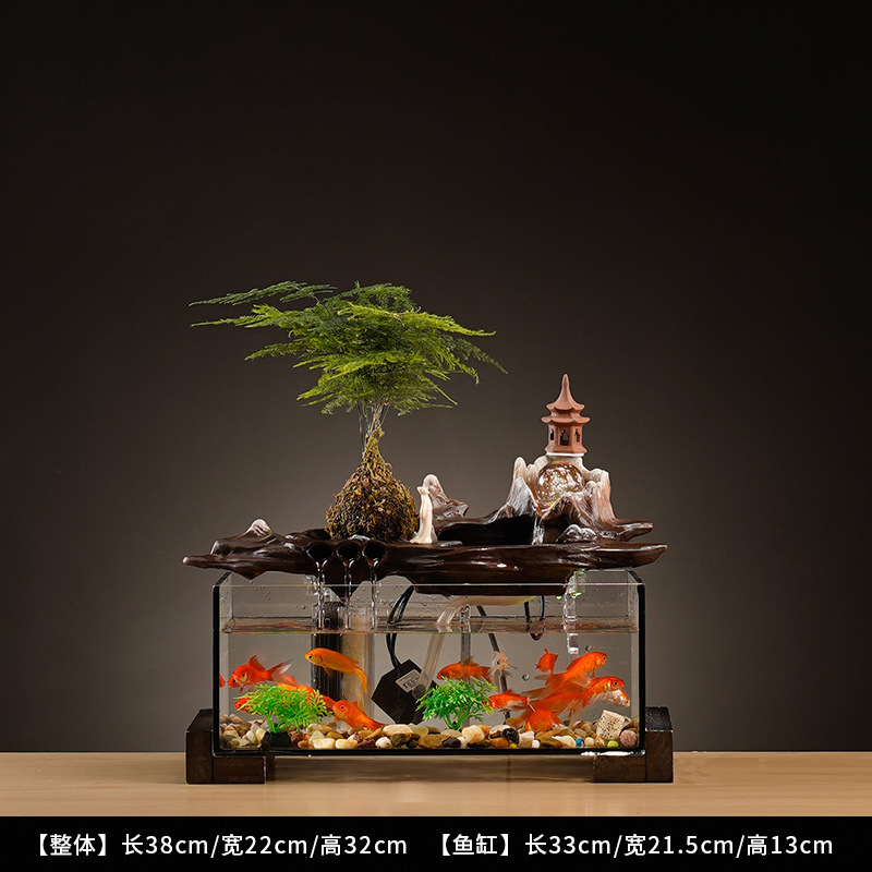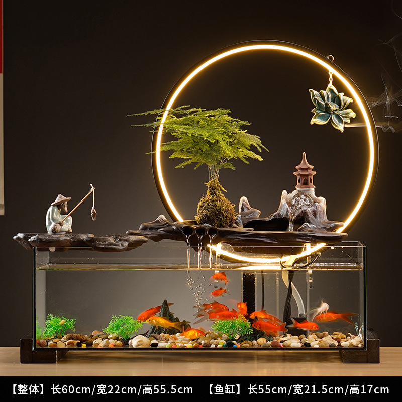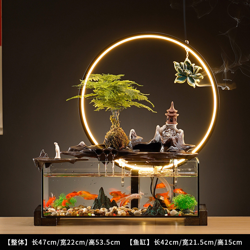 招财流水玻璃鱼缸家居客厅电视柜装饰品循环水办公室摆件乔迁礼品
