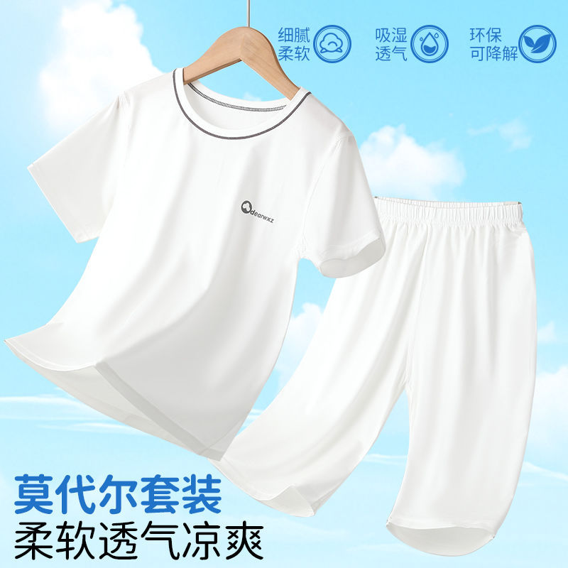 아동용 반팔 모달 잠옷, 여름용 얇은 여아 가정복 세트, A급 남아용 중대형 아동용 에어컨 의류스토어 가기