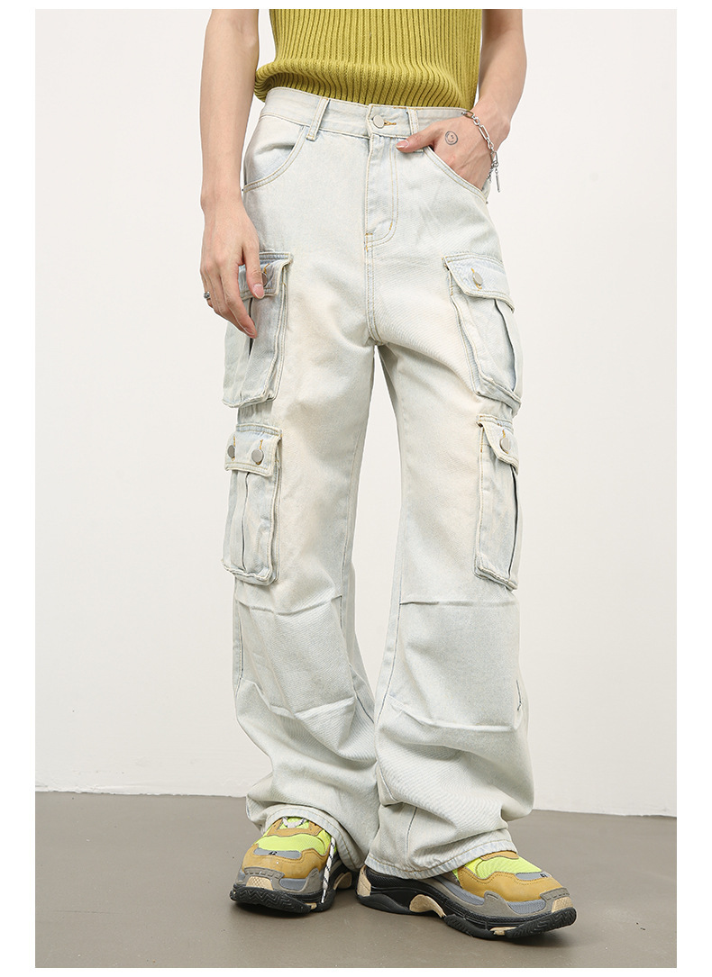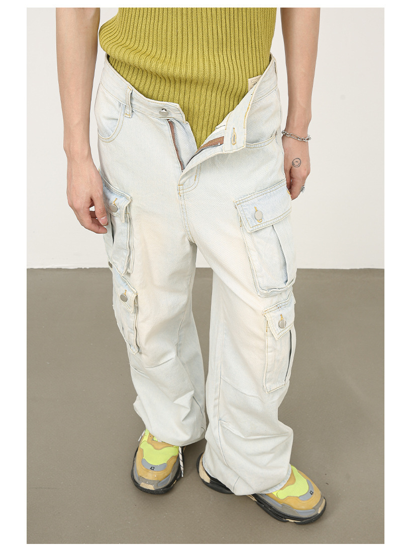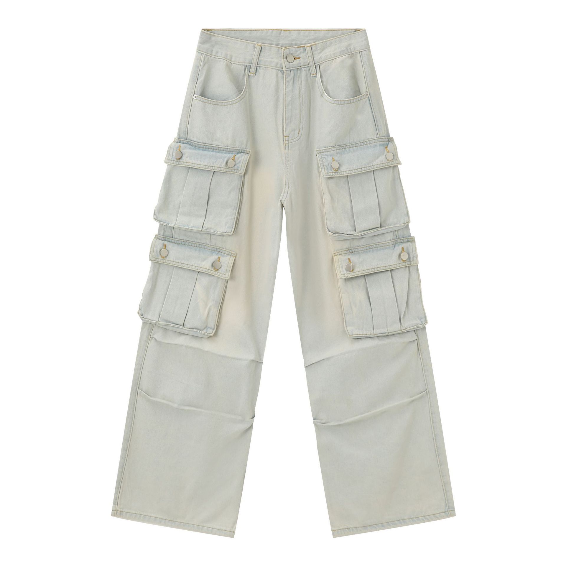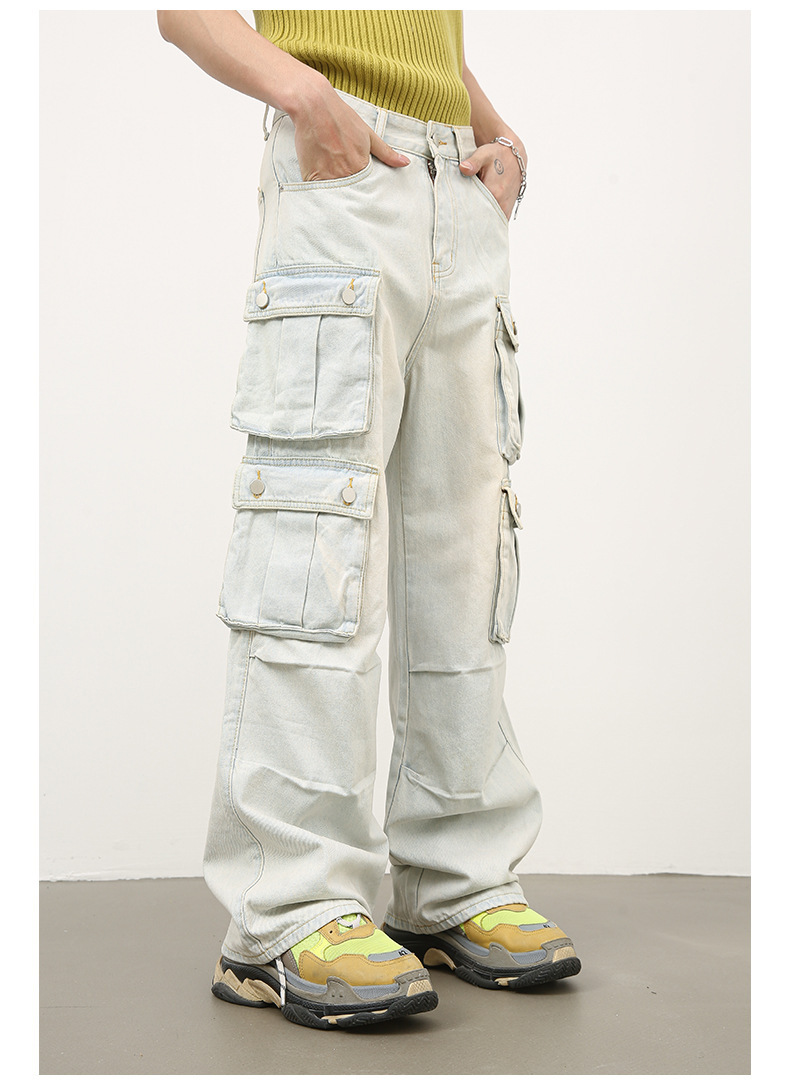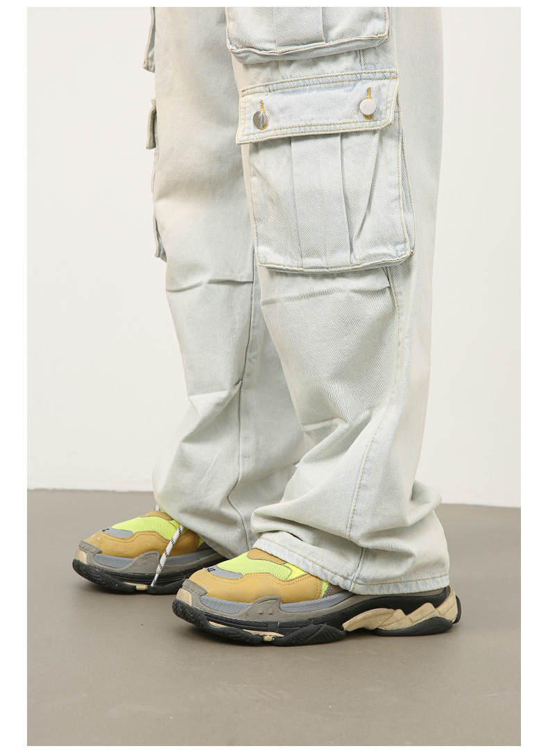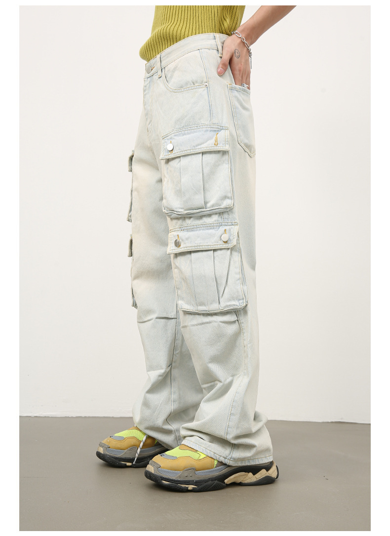 니르벤 데님 | 아메리칸 스타일 멀티 포켓 청바지 남성용 레트로 루즈 스트레이트 오버올 와이드 레그 캐주얼 바지스토어 가기