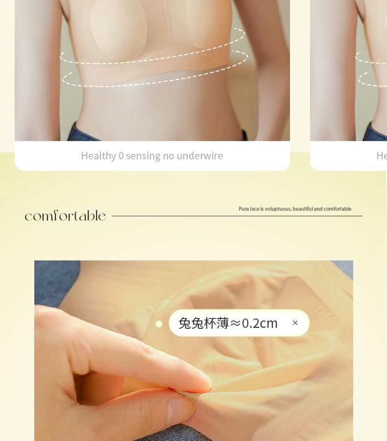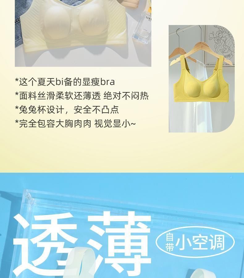 여성용 토끼 귀 속옷, 초박형, 흔적 없음, 큰 가슴을 지원하고 작아 보이고 통기성이 있고 푸시업, 와이어 없음, 여성용 여름용 얇은 브라스토어 가기