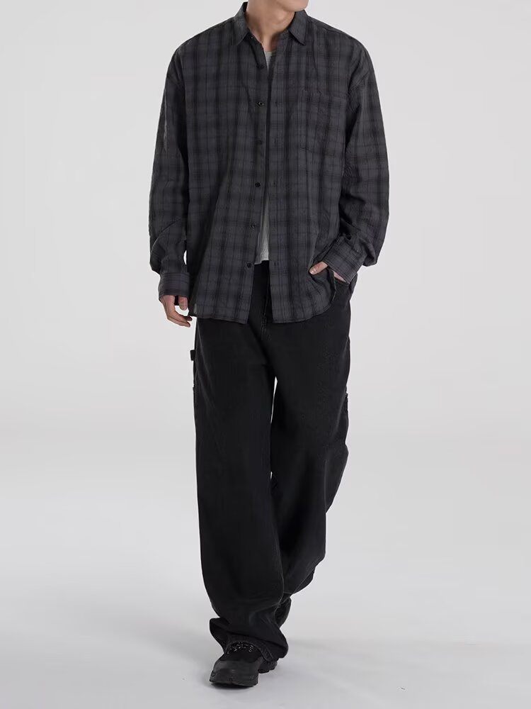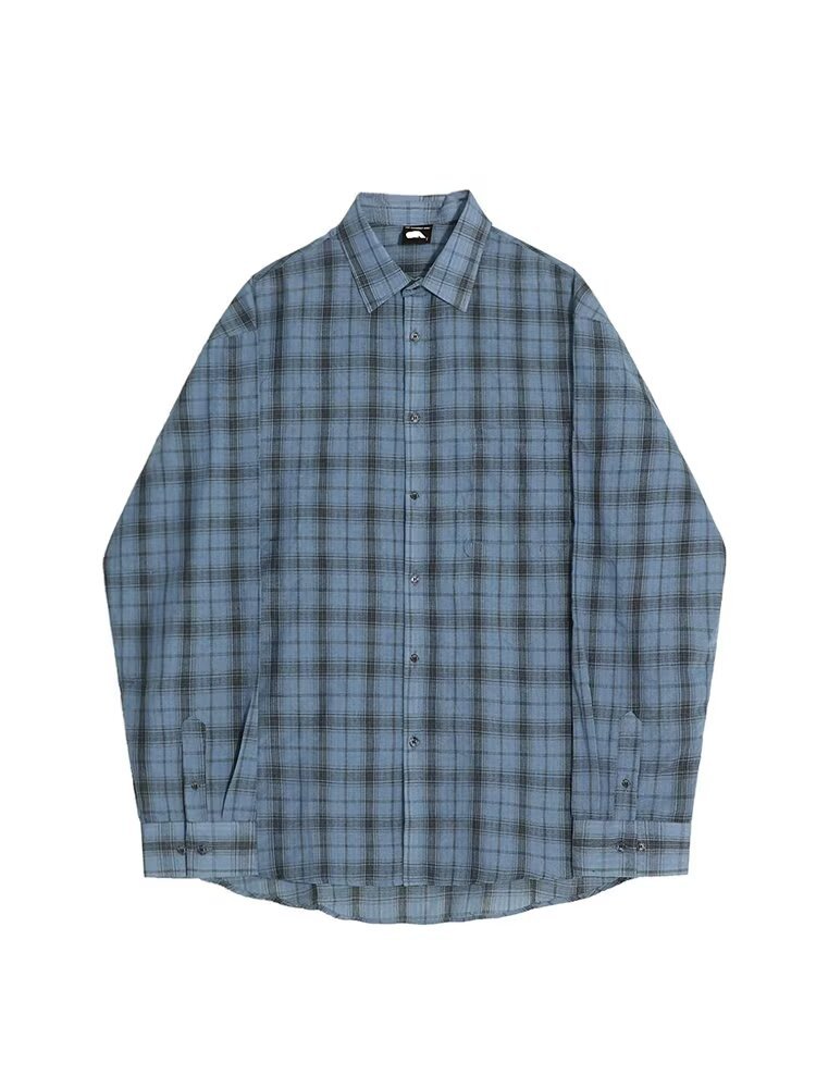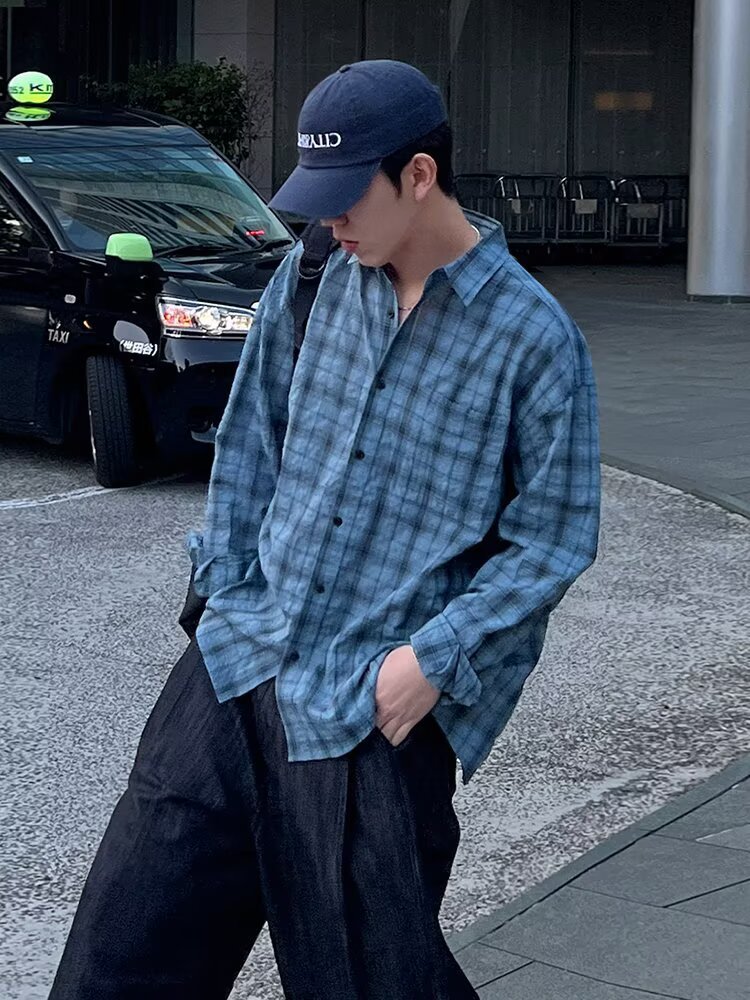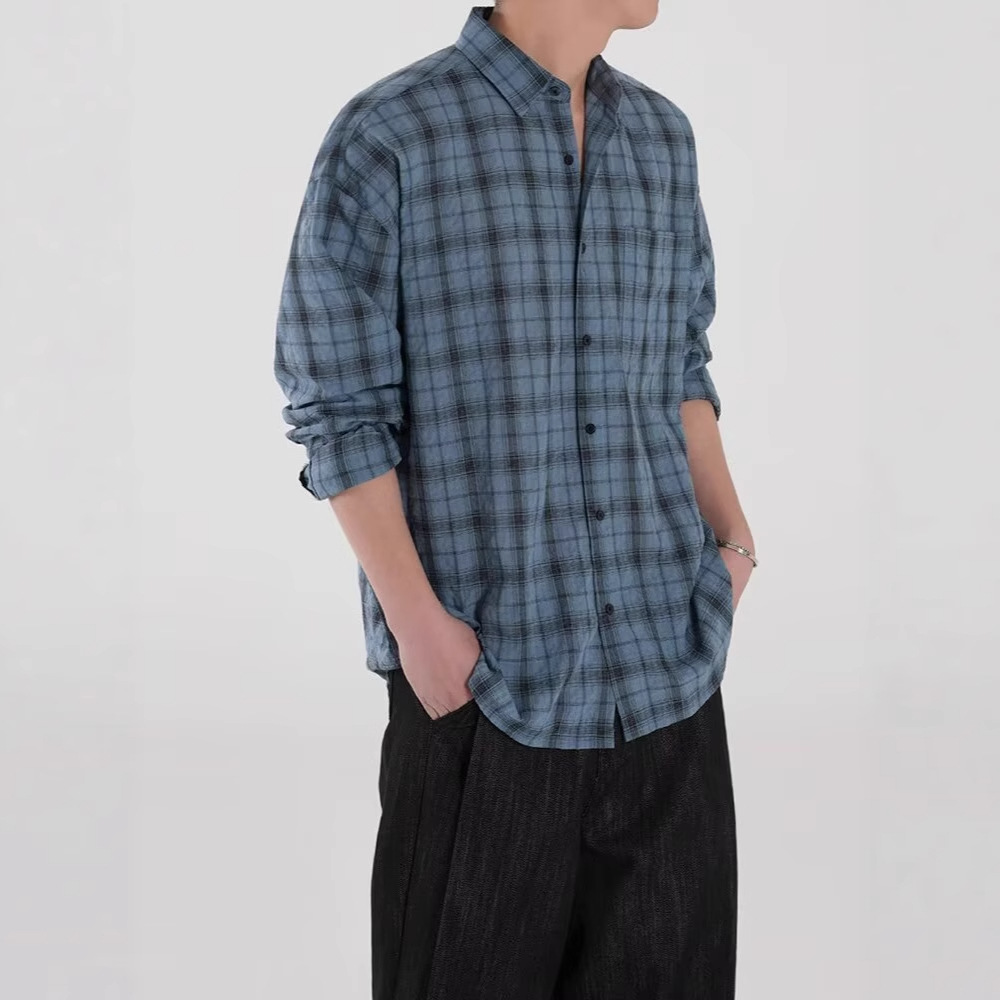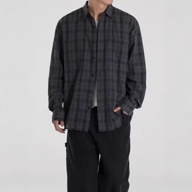 아메리칸 레트로 체크 무늬 자외선 차단 셔츠 남성용 긴팔 여름 얼음 실크 속건성 얇은 게으른 스타일 셔츠 재킷스토어 가기