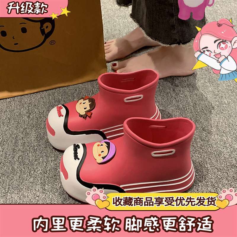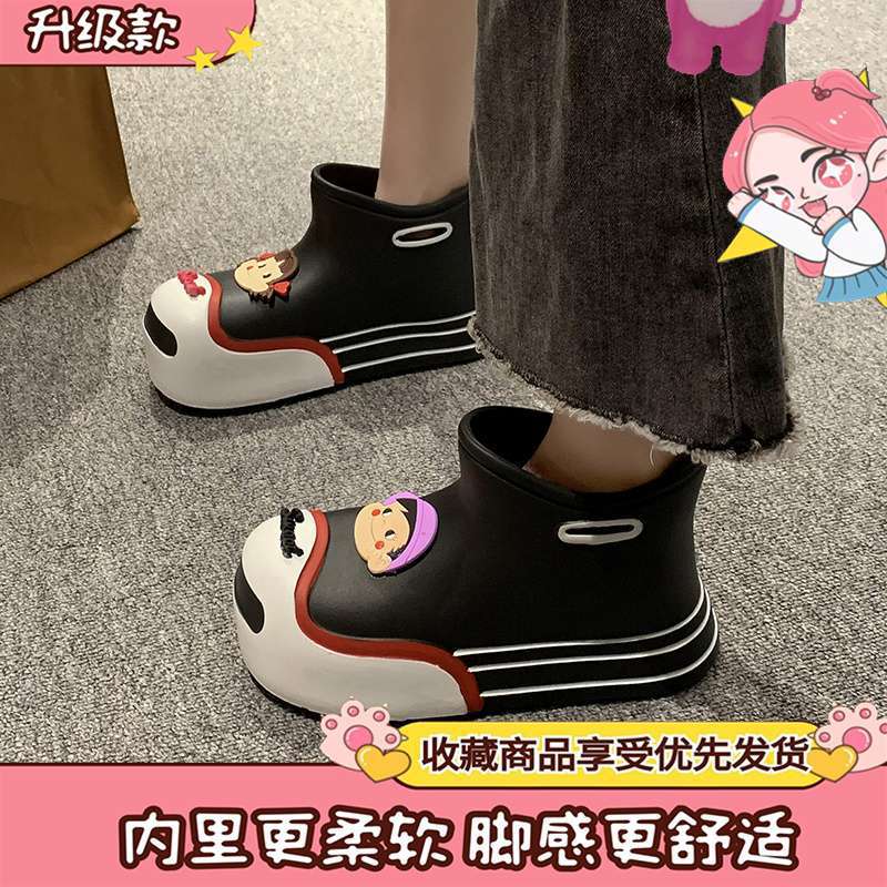 여성을위한 미끄럼 방지 방수 짧은 장화 2025 가을 새로운 두꺼운 밑창 오픈 스마일 귀여운 틈새 디자인 고무 신발