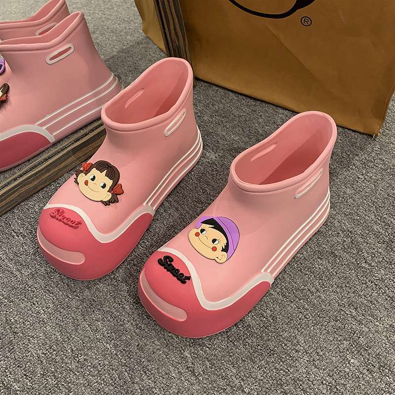 여성을위한 미끄럼 방지 방수 짧은 장화 2025 가을 새로운 두꺼운 밑창 오픈 스마일 귀여운 틈새 디자인 고무 신발스토어 가기