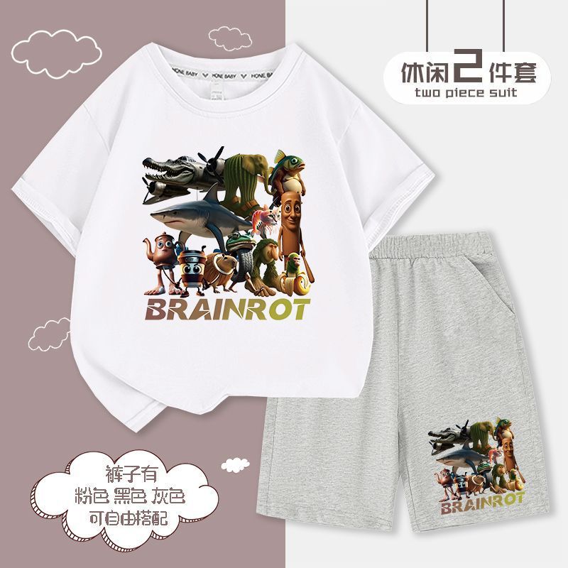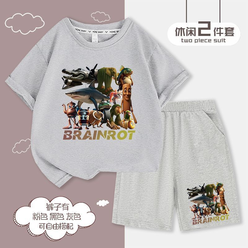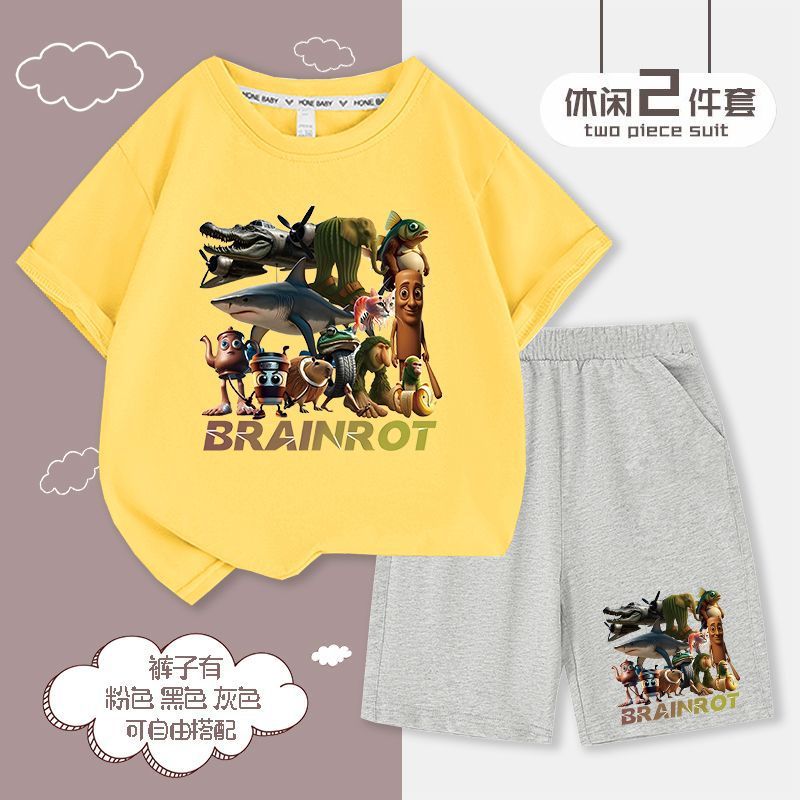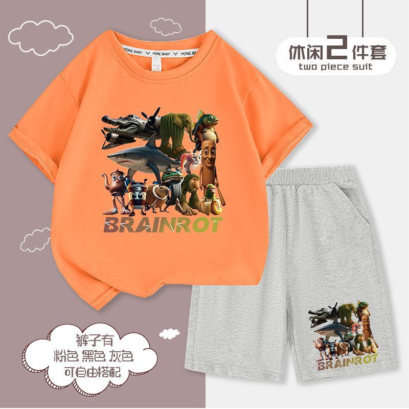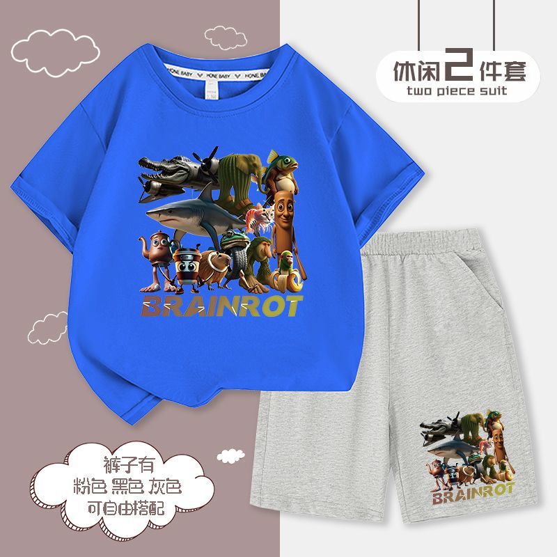 여름 새 소년 순면 Tongtongge 나무 막대 미국 산과 바다 티셔츠 어린이 반팔 반바지 정장 멋진