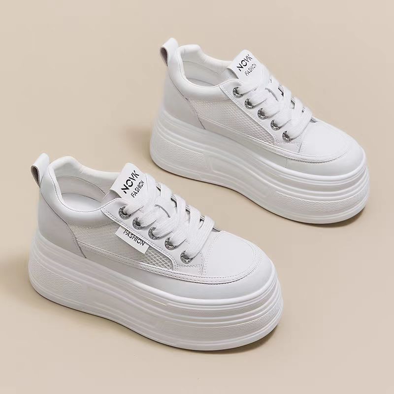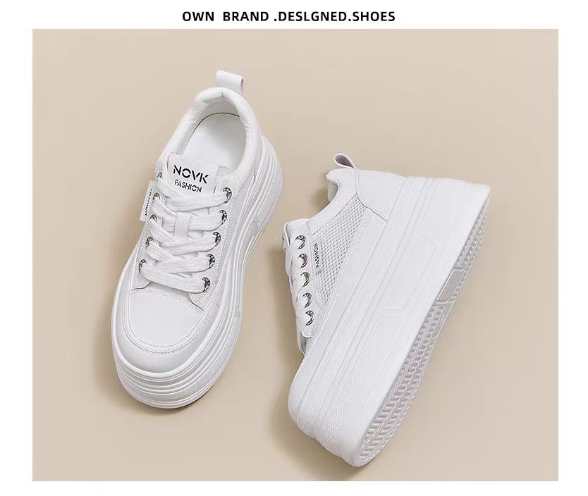 여성용 내부 높이 8cm 하이탑 화이트 슈즈 2025 여름 신작 작은 두꺼운 밑창 경량 다용도 인 캐주얼 슈즈스토어 가기
