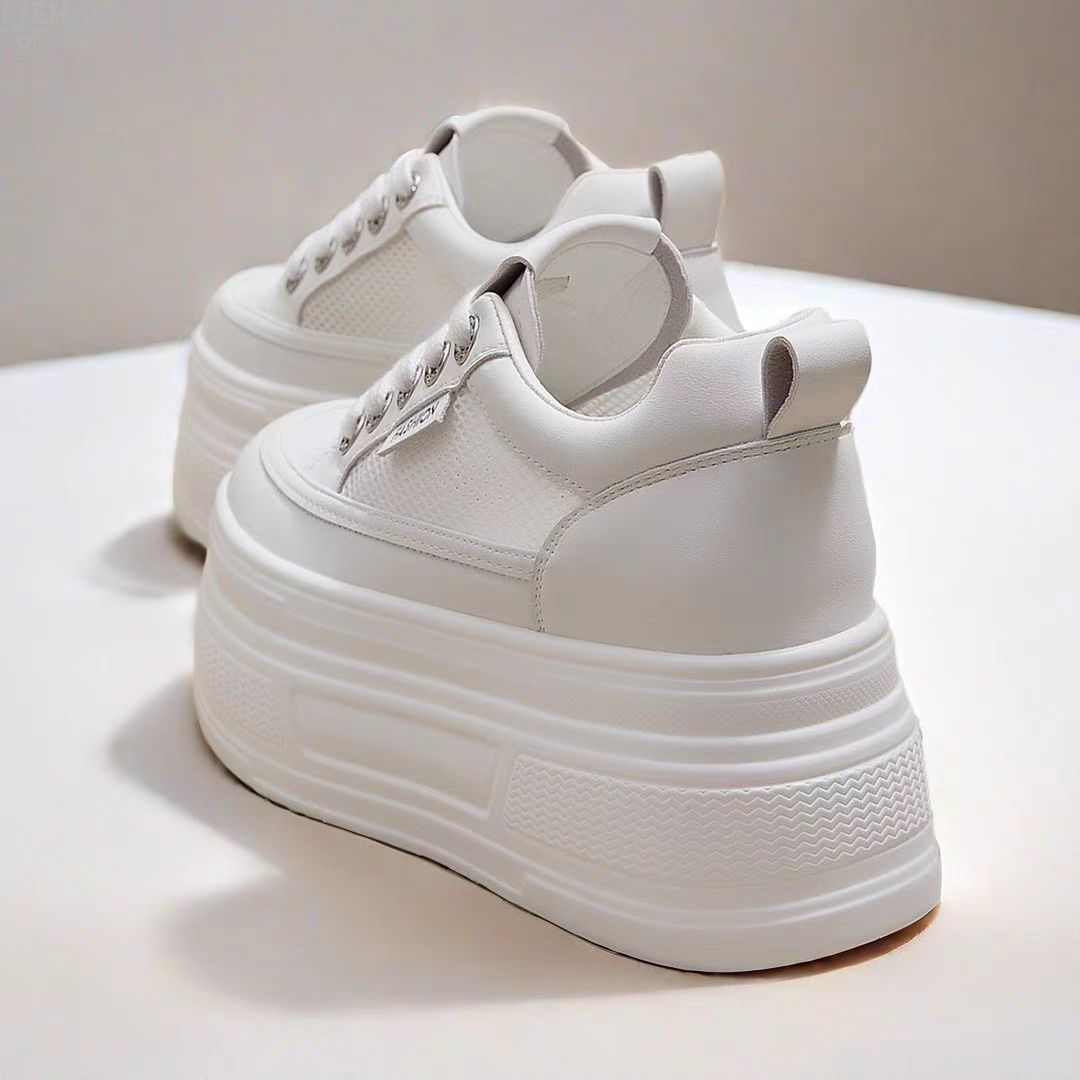 여성용 내부 높이 8cm 하이탑 화이트 슈즈 2025 여름 신작 작은 두꺼운 밑창 경량 다용도 인 캐주얼 슈즈