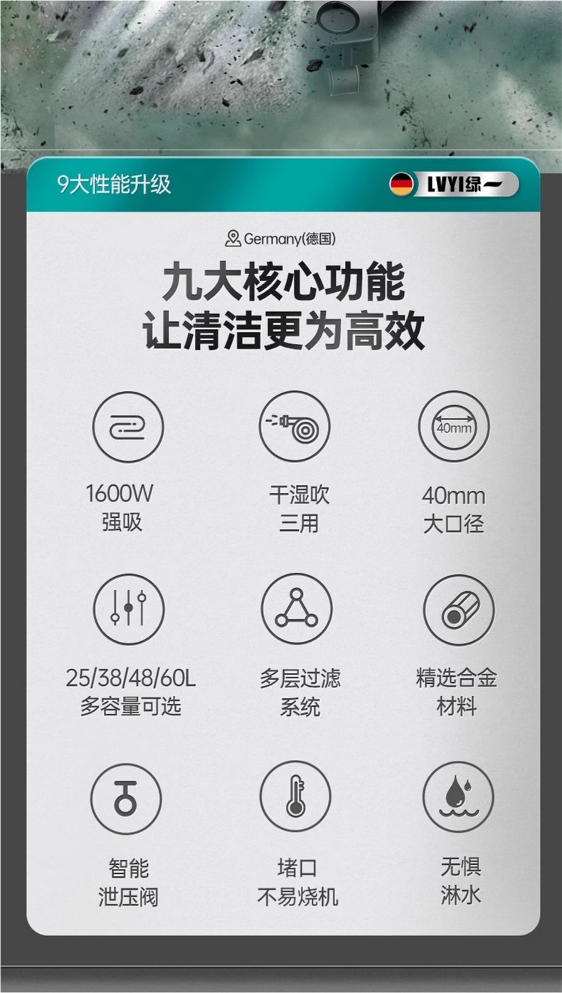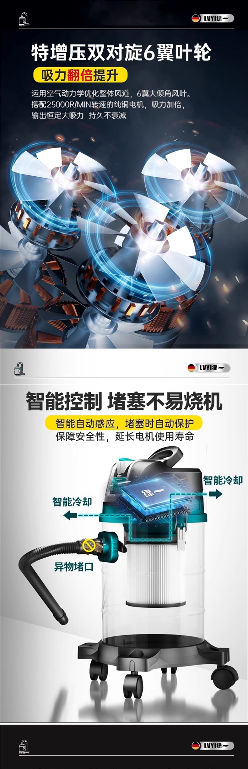 • 9500W-70L [2천만 PA + 폭풍 흡입] 푸시 및 흡입 듀얼 모터 + 상업/산업 + 대규모 장소