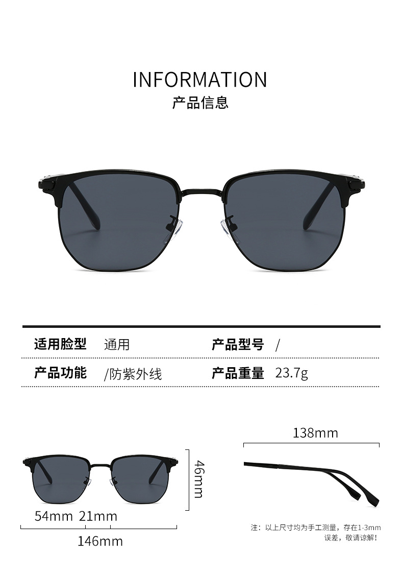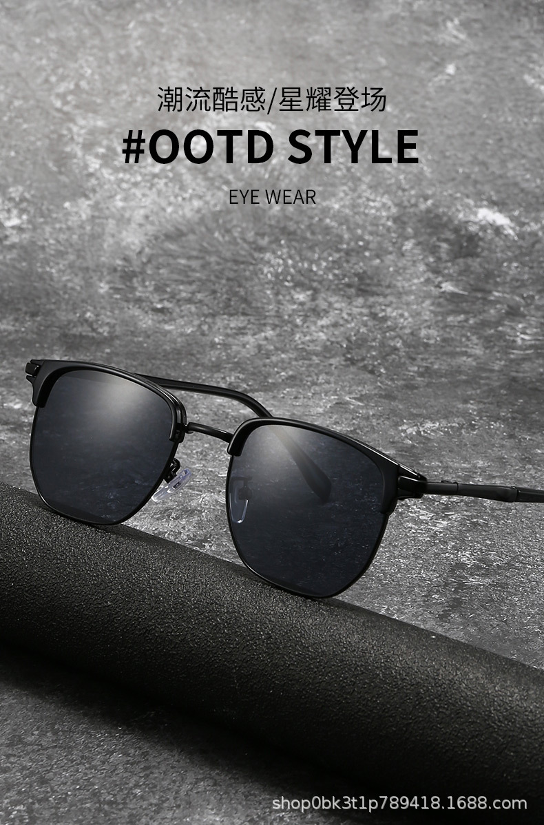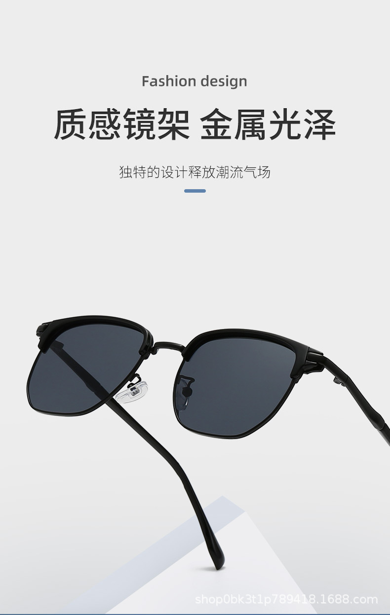 남성용 복고풍 패션 하프 프레임 선글라스, 고급 트렌디 힙합 메탈 유럽 및 미국 크로스보더 선글라스, 여성용 우아한 안경스토어 가기