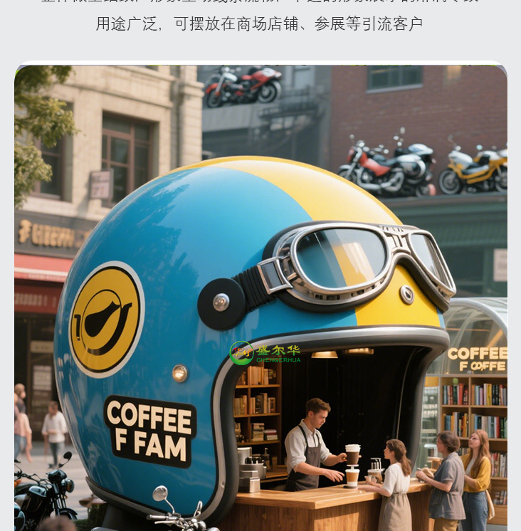 유리 섬유 크리 에이 티브 헬멧 커피 하우스 인터넷 연예인 밀크 티 샵 맞춤형 체크인 판매 부스 명소 디스플레이 조각 맞춤형스토어 가기
