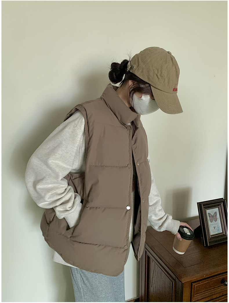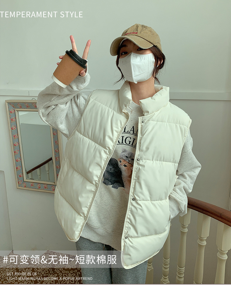 조끼 여성 짧은 2025 봄, 가을 새로운 패션 학생 겉옷 조끼 한국 스타일 느슨한 면화 재킷 다운 면화