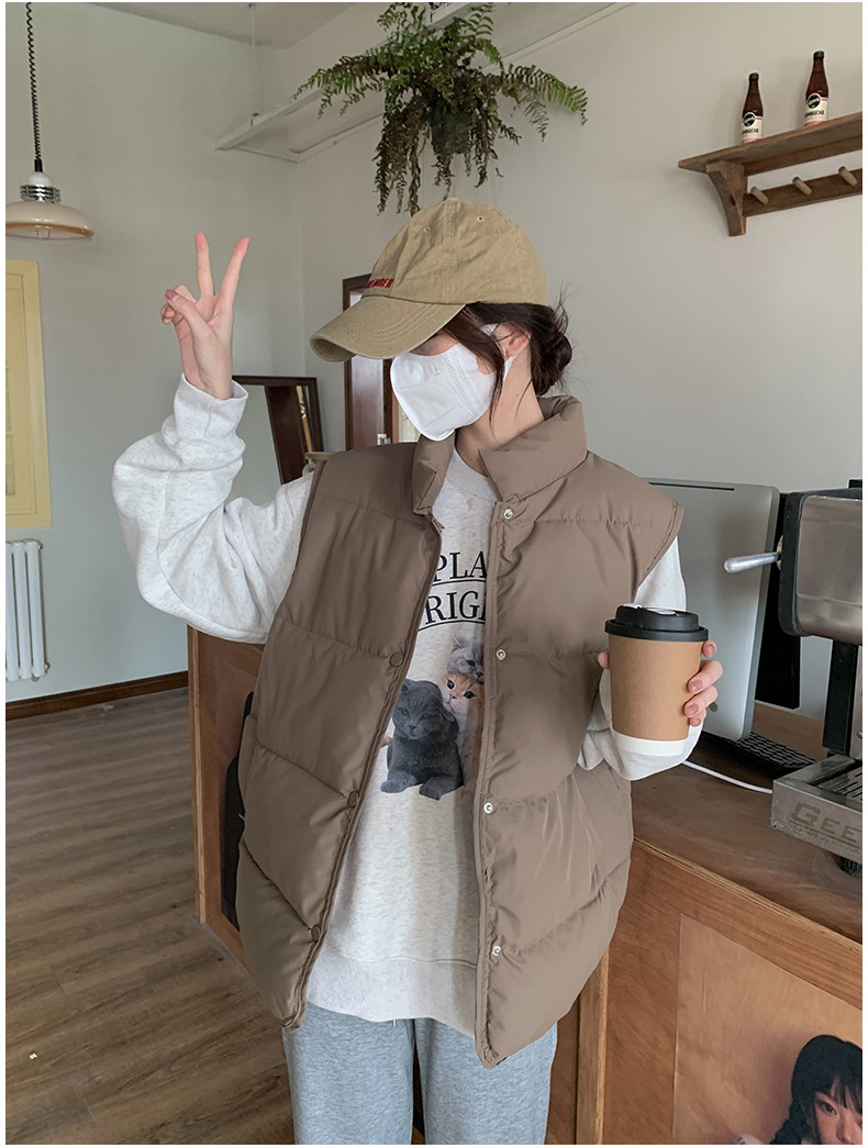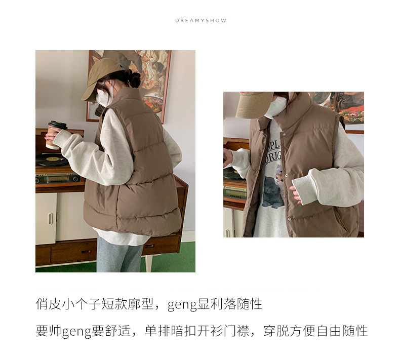 조끼 여성 짧은 2025 봄, 가을 새로운 패션 학생 겉옷 조끼 한국 스타일 느슨한 면화 재킷 다운 면화스토어 가기