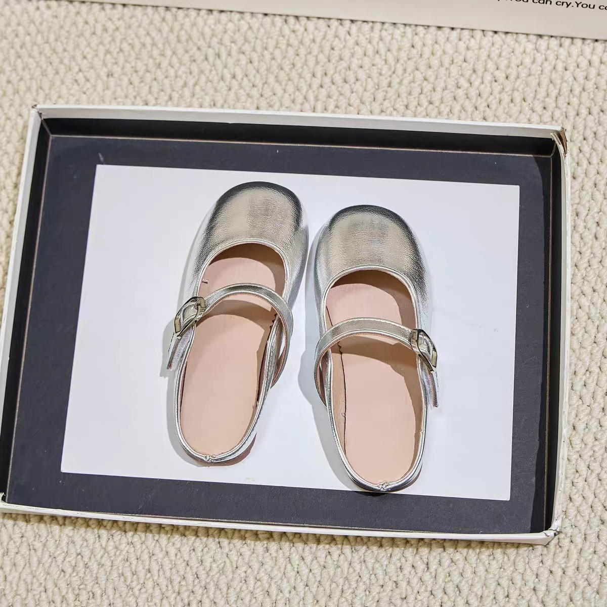 여자 가죽 신발 슬리퍼 2025 새로운 봄 스타일 메리 어린이 신발 공주 나들이 슬리퍼 여자 아기