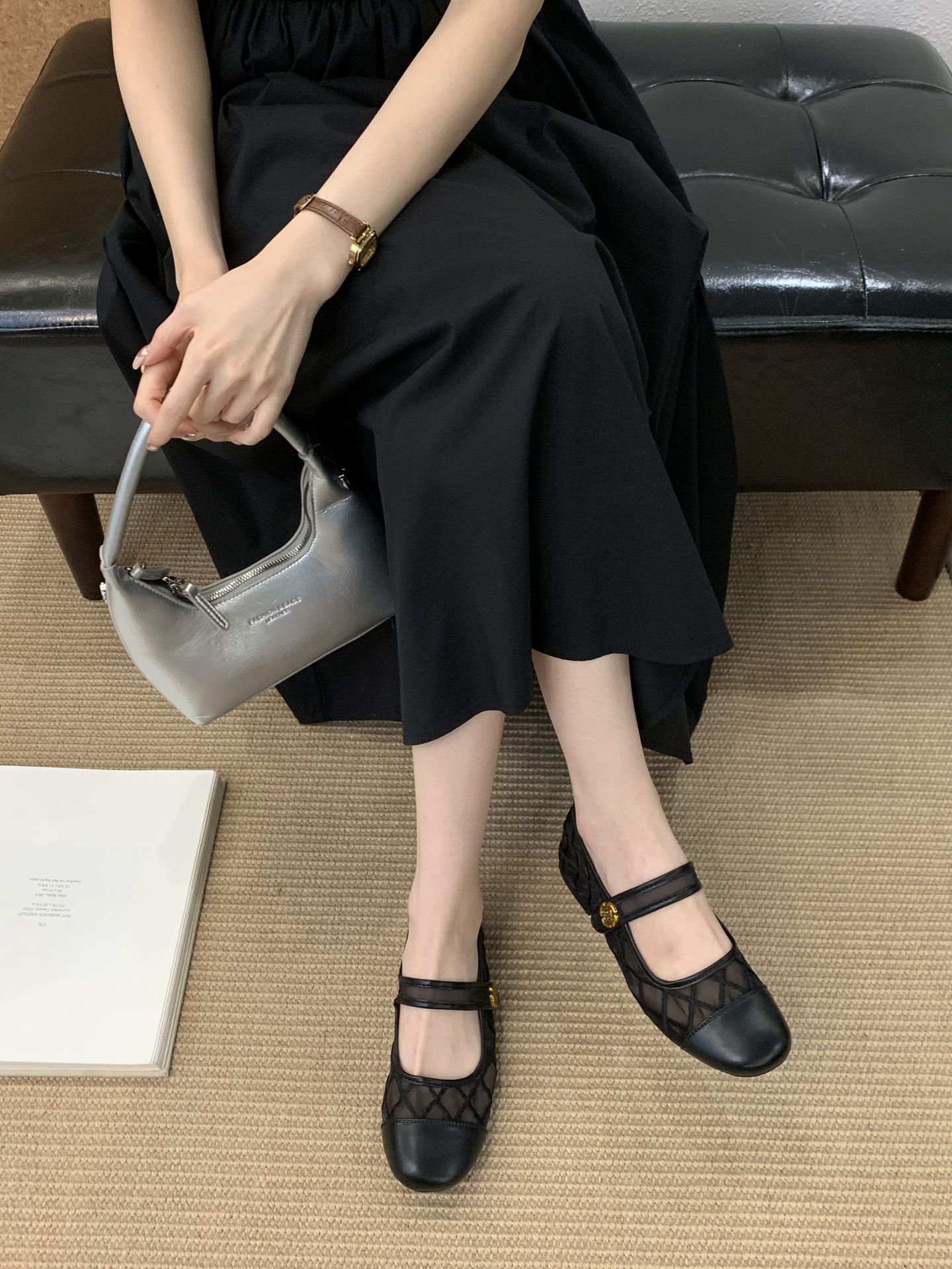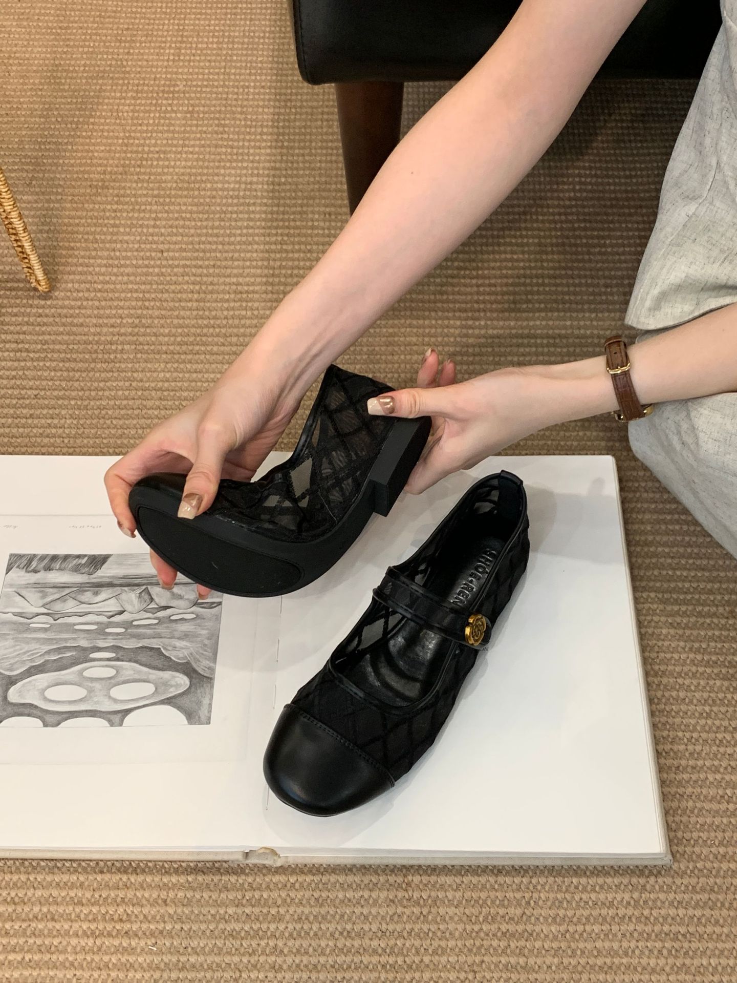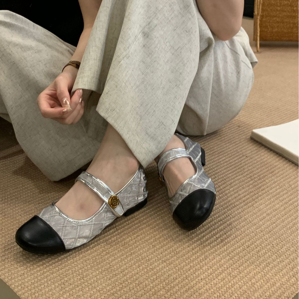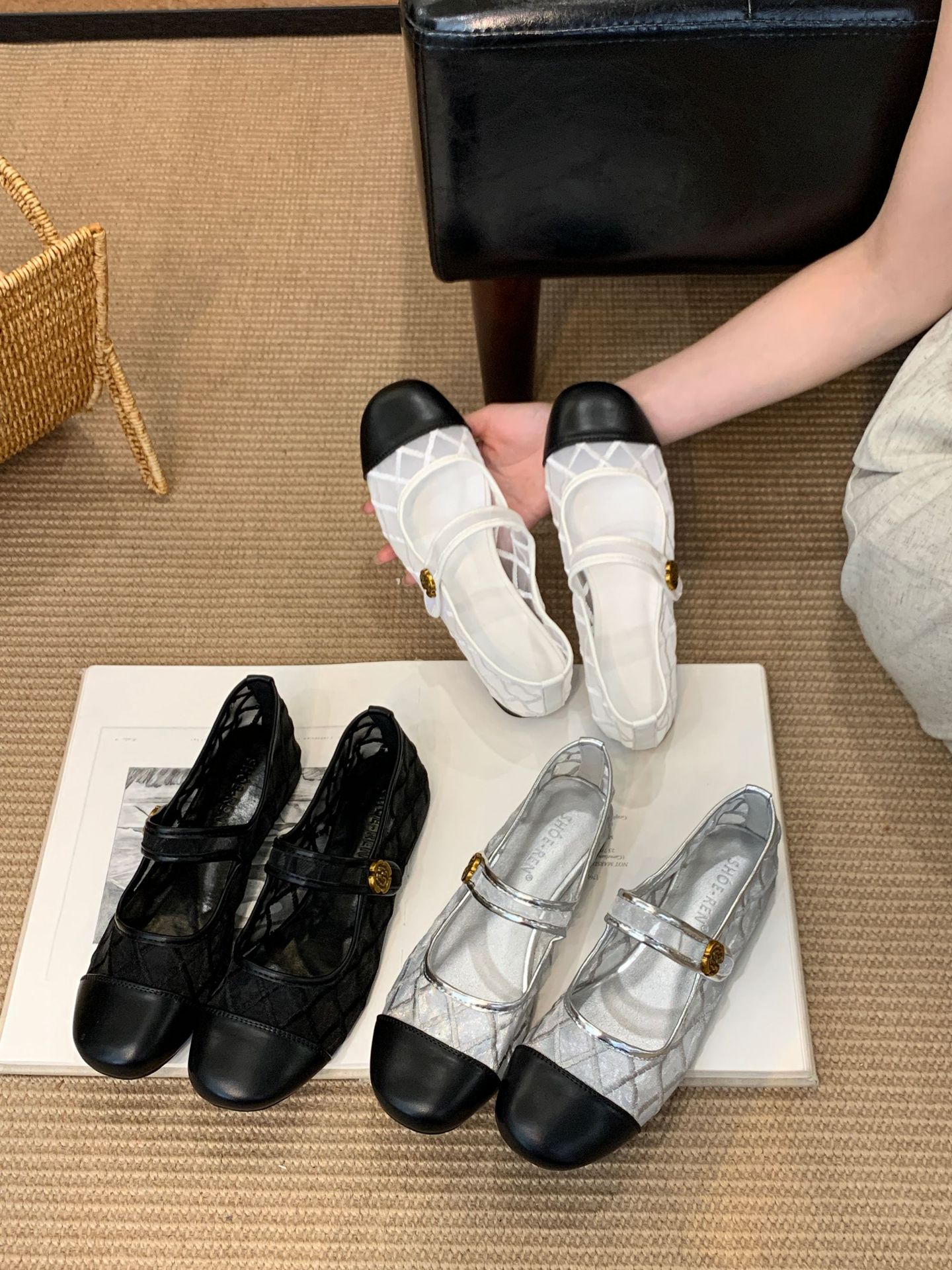 고급 품질 2025 새로운 스타일 작은 향기로운 마름모꼴 메쉬 전자 자수 금속 버클 플랫 슈즈 메리 제인 신발스토어 가기